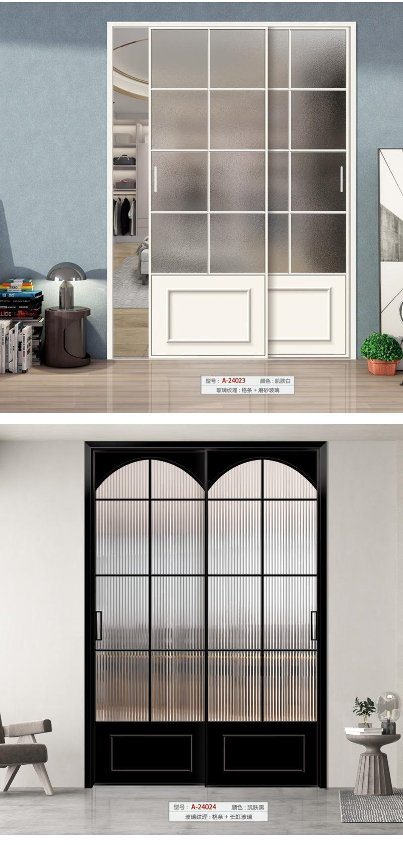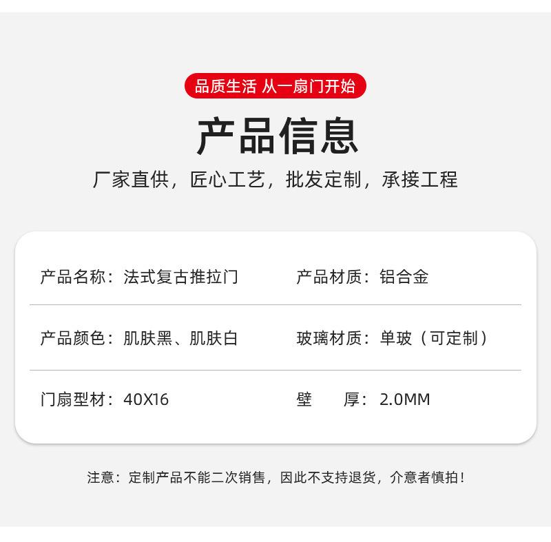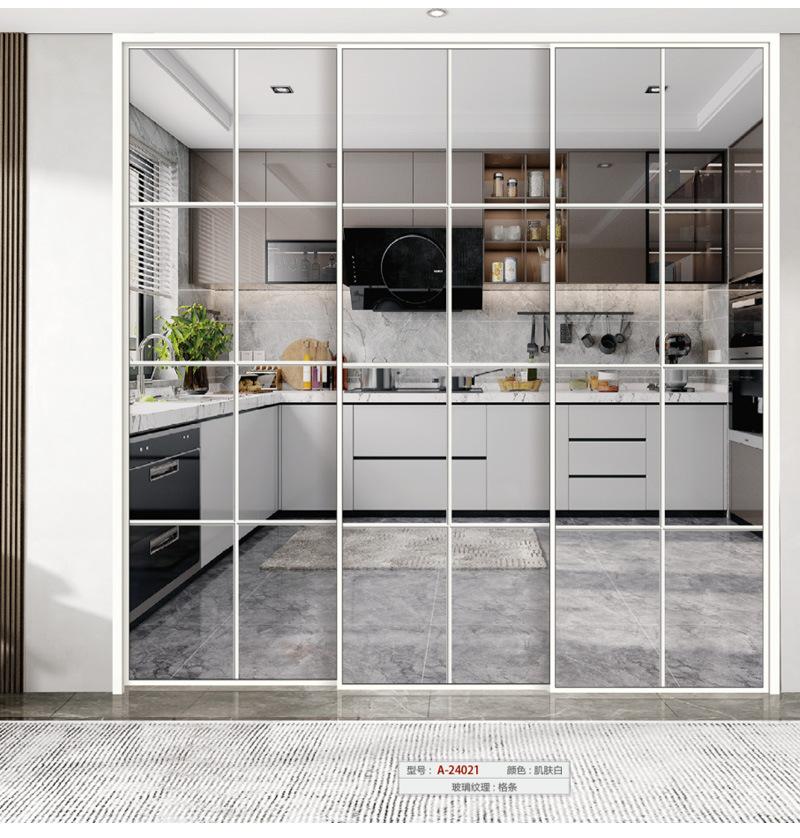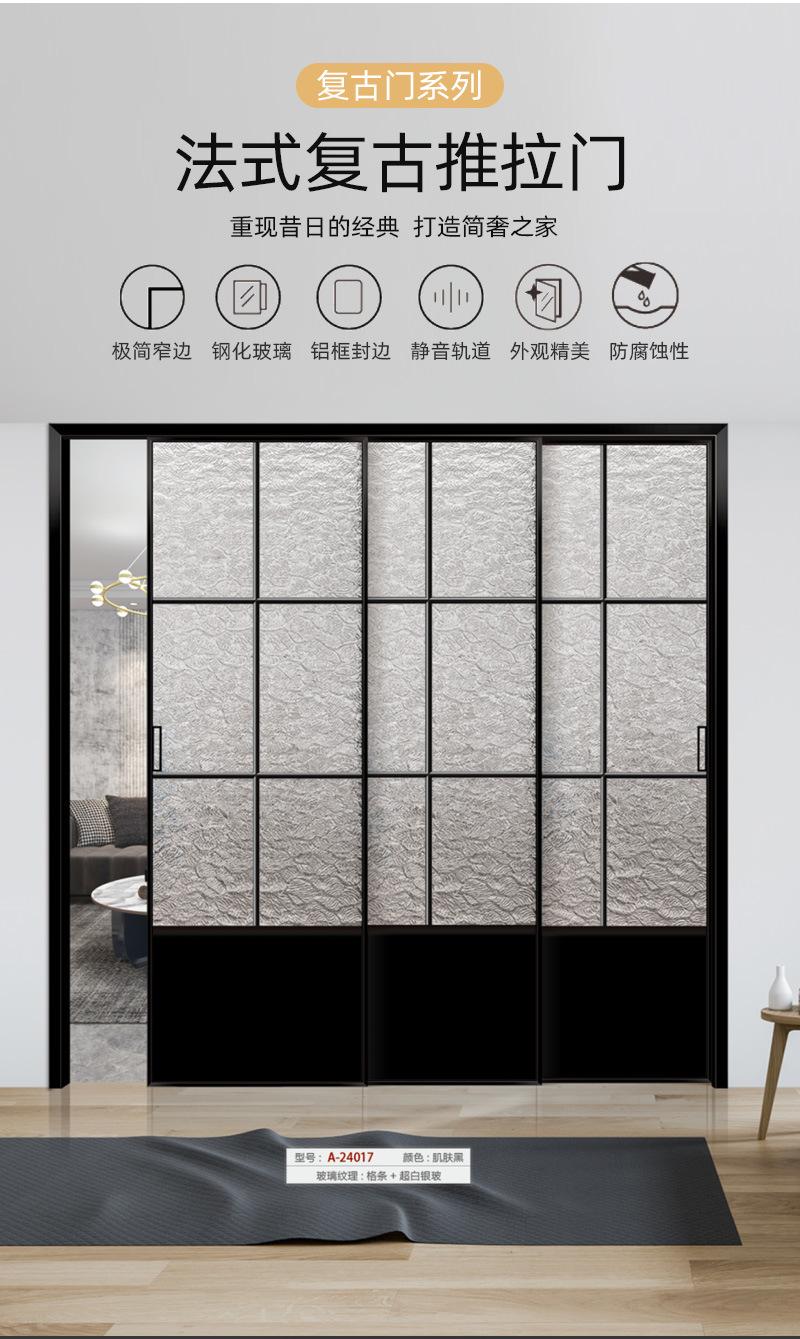 Puerta corredera retro francesa para cocina, sala de estar, balcón, partición, puerta corredera, puerta de vidrio, puerta corredera de aleación de aluminio de triple enlace