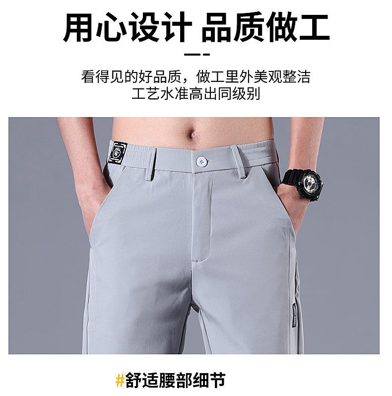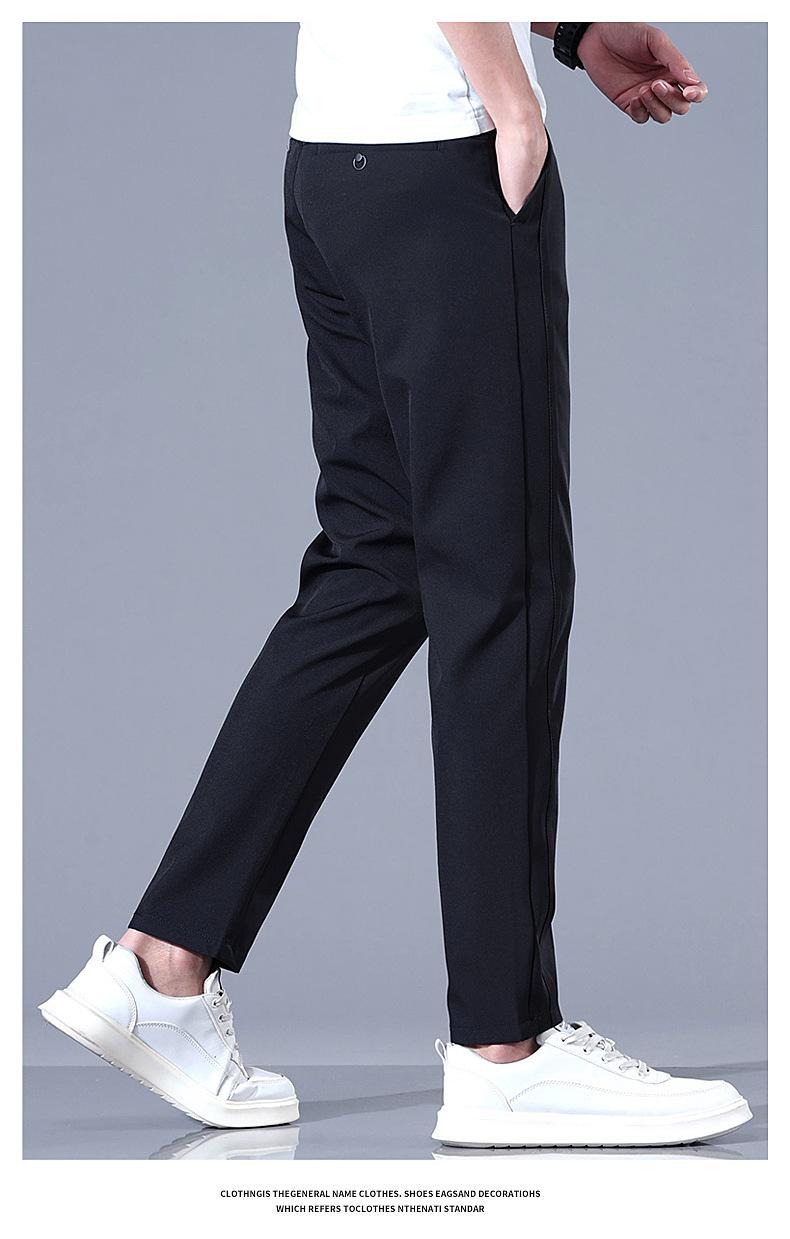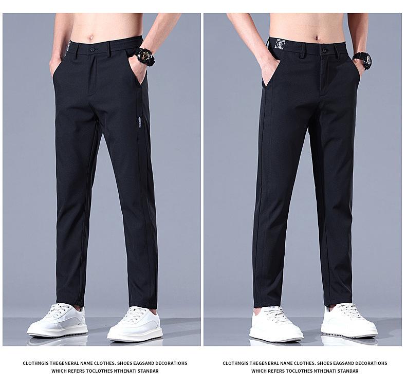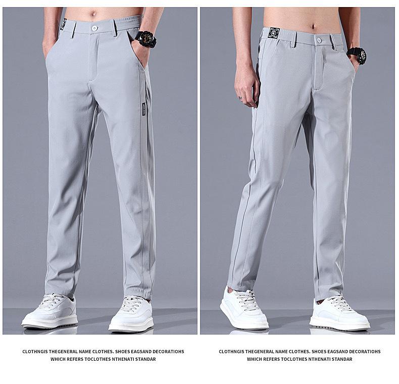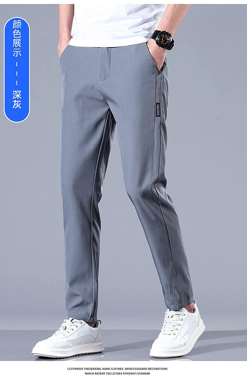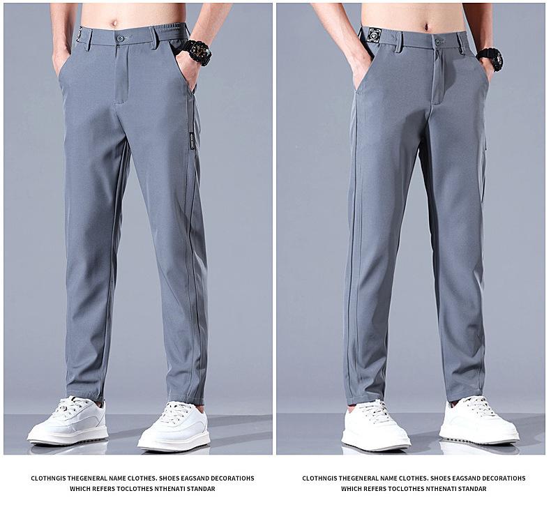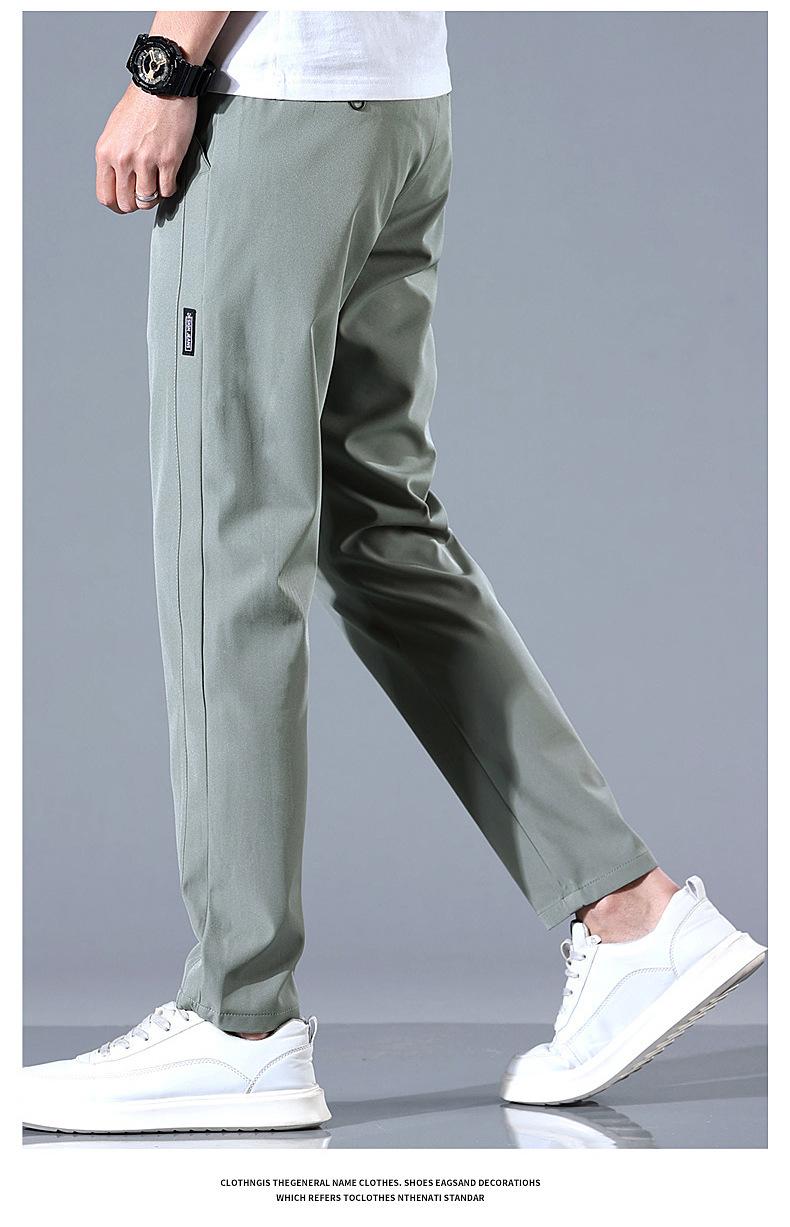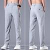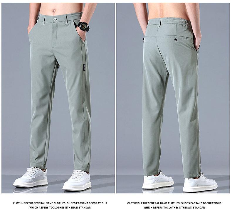 Pantalones casuales de cintura elástica para hombre de seda de hielo, pantalones holgados rectos coreanos ajustados a la moda para hombre, verano, delgados, nuevo estilo
