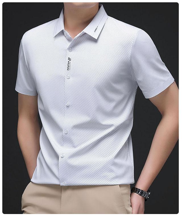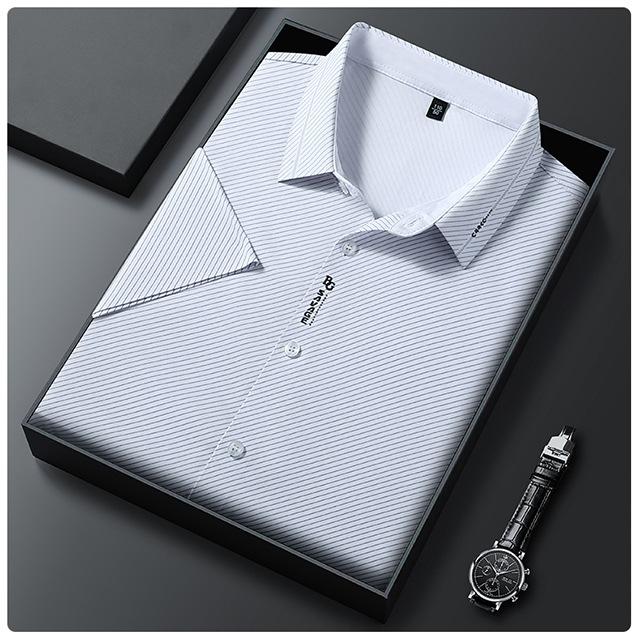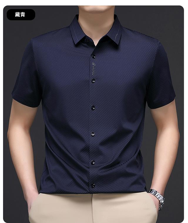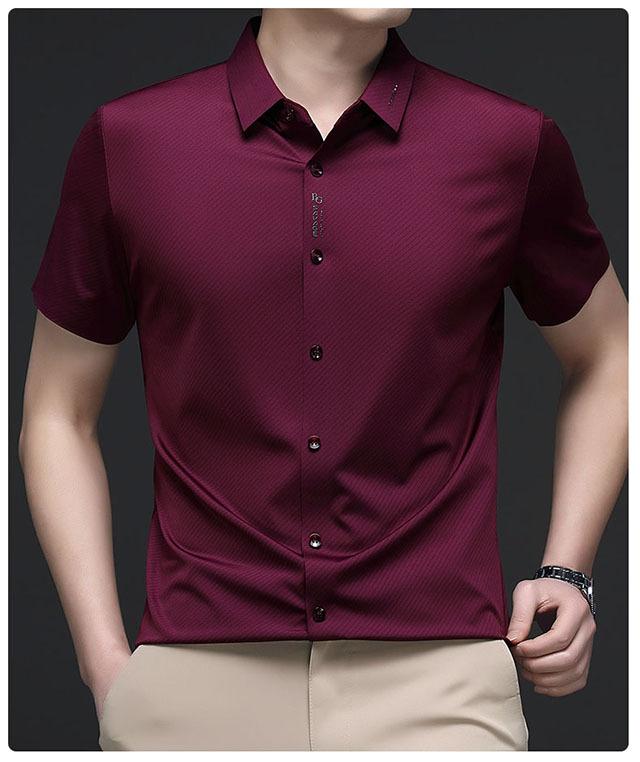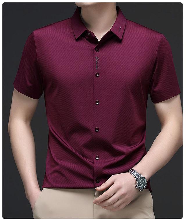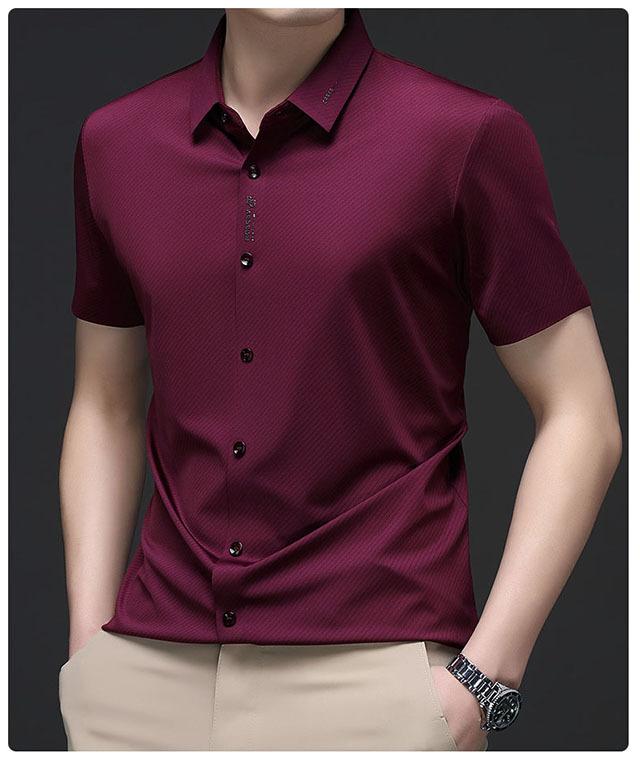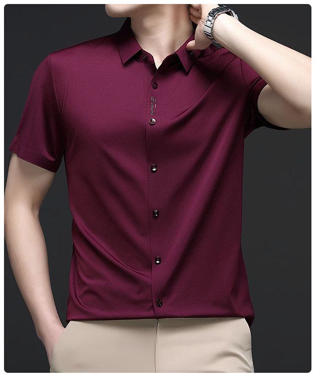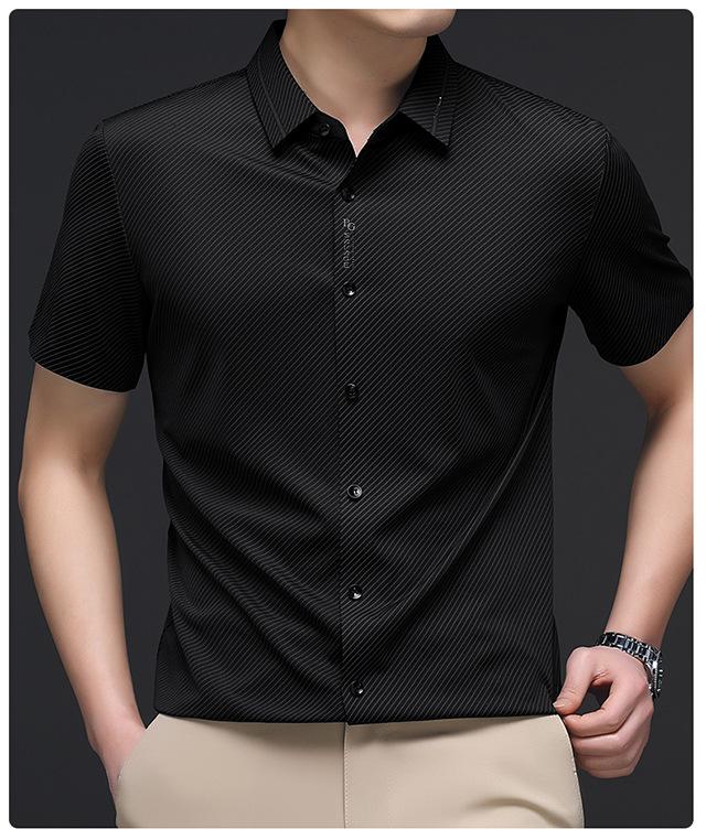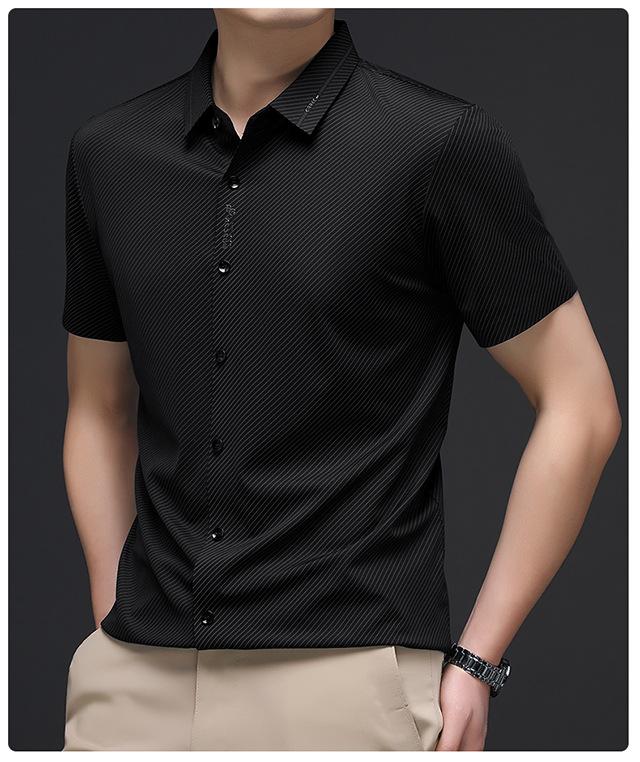 Camisa de manga corta estampada sin costuras, moderna y sencilla, de manga corta, para hombre, verano 2025, nueva camisa de seda para hombre