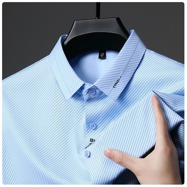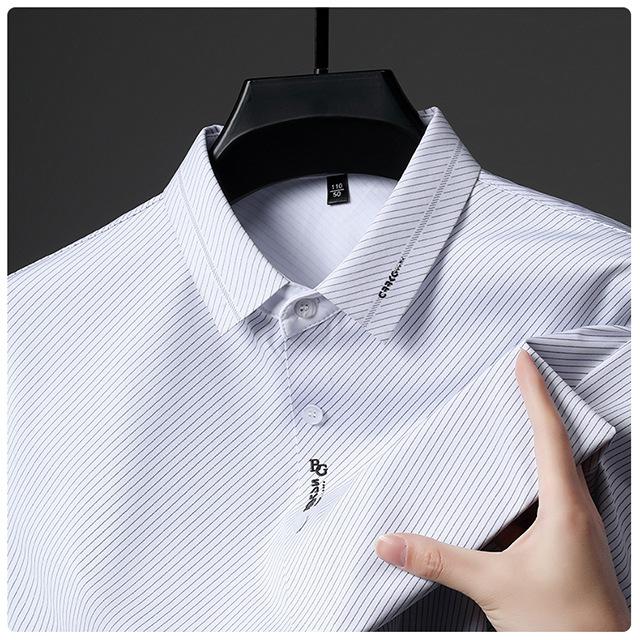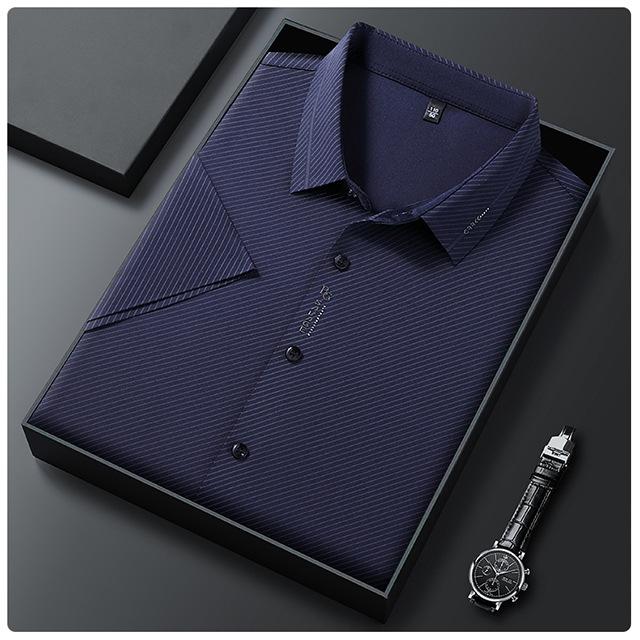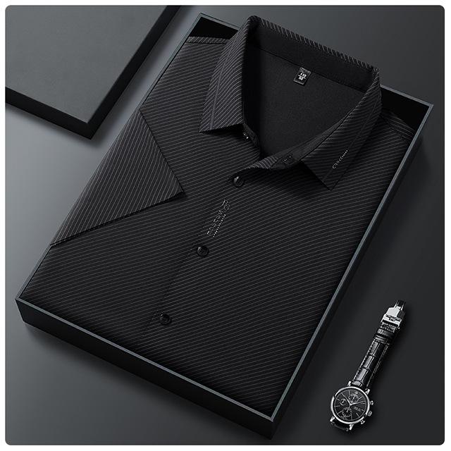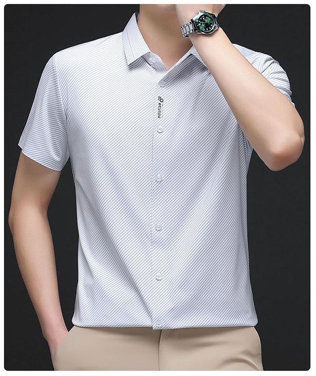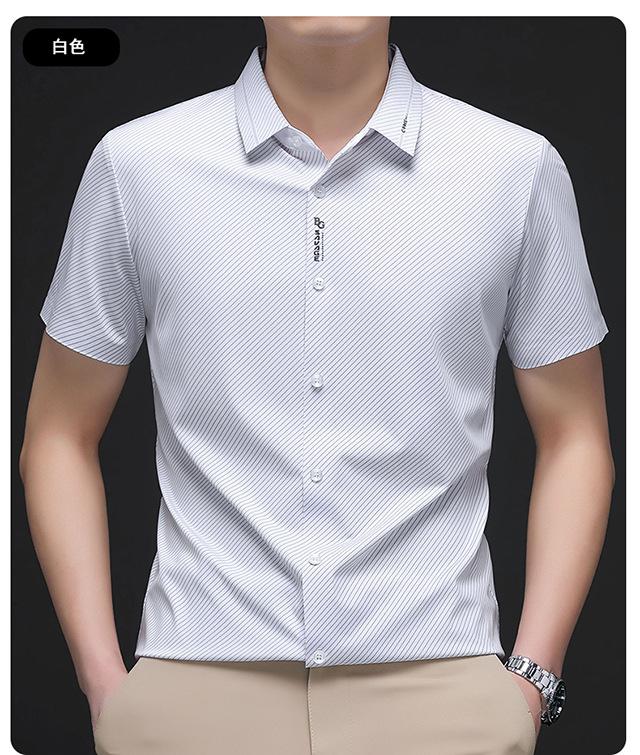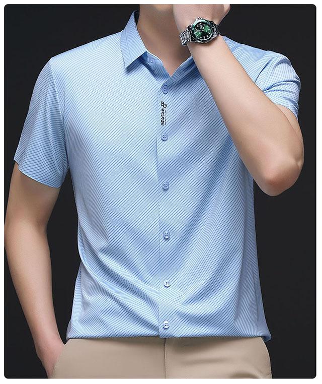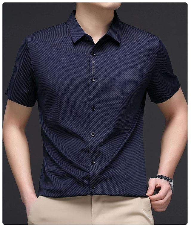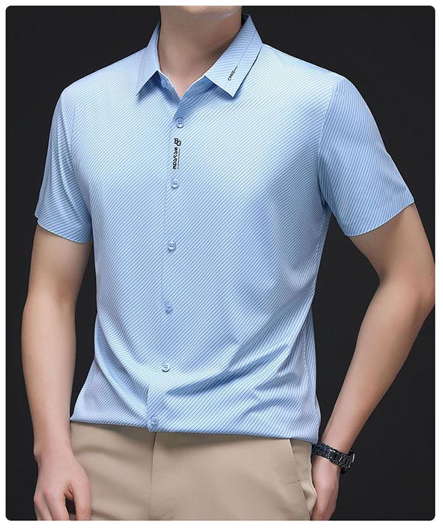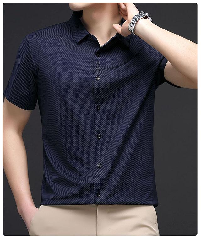 Camisa de manga corta estampada sin costuras, moderna y sencilla, de manga corta, para hombre, verano 2025, nueva camisa de seda para hombre