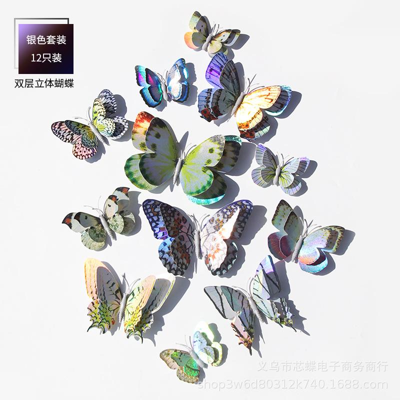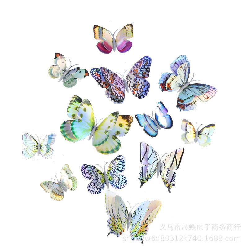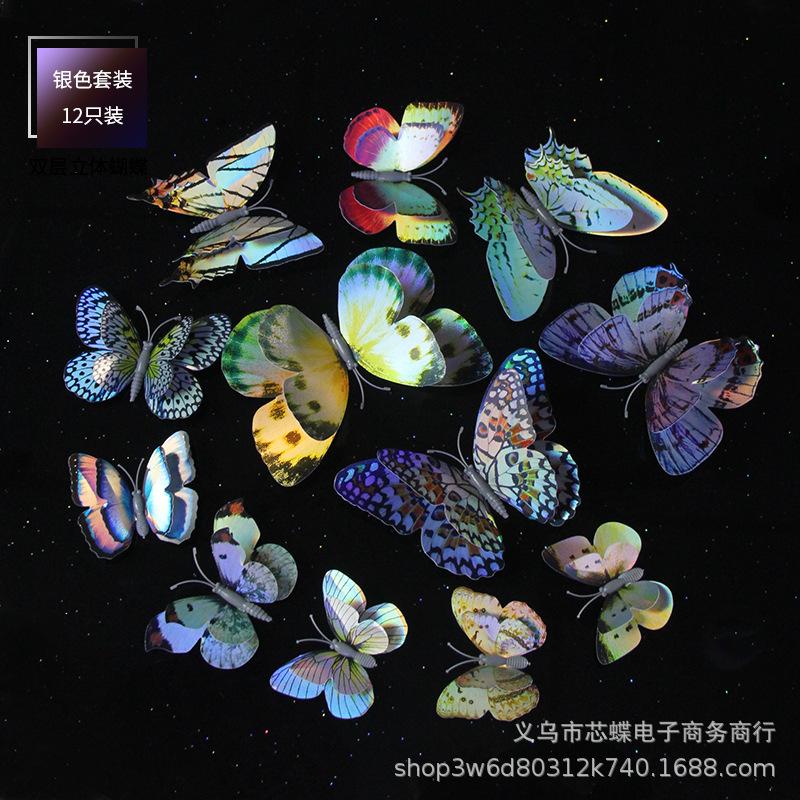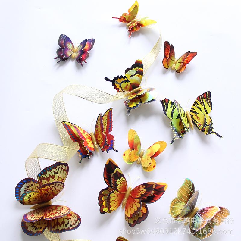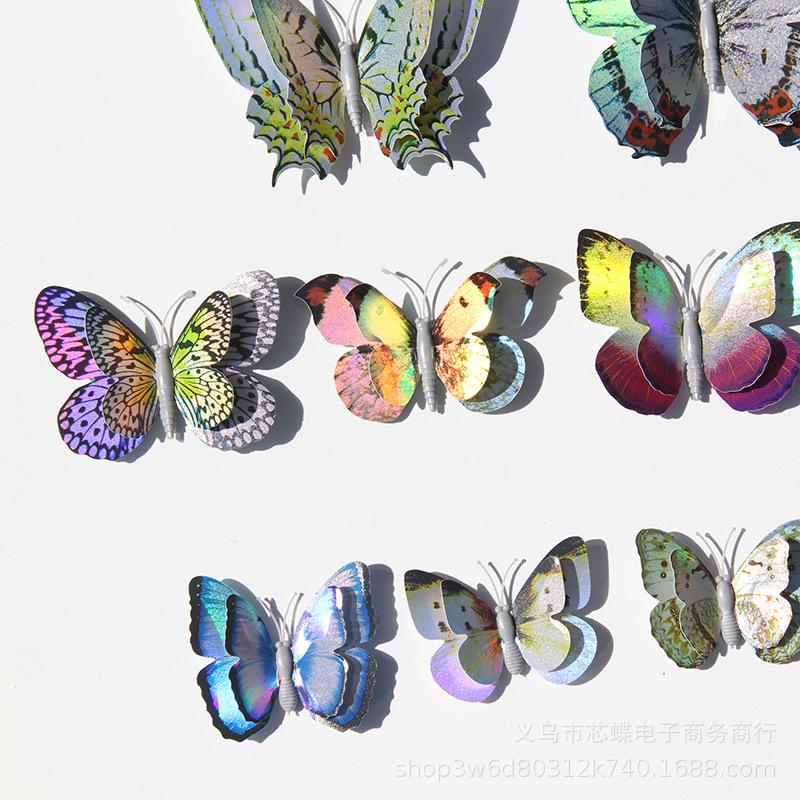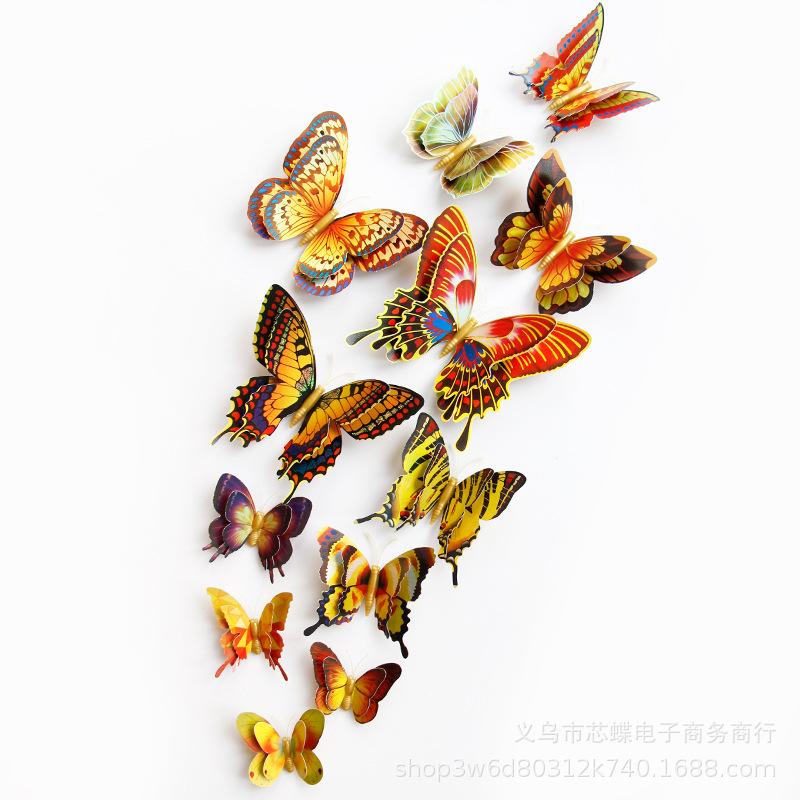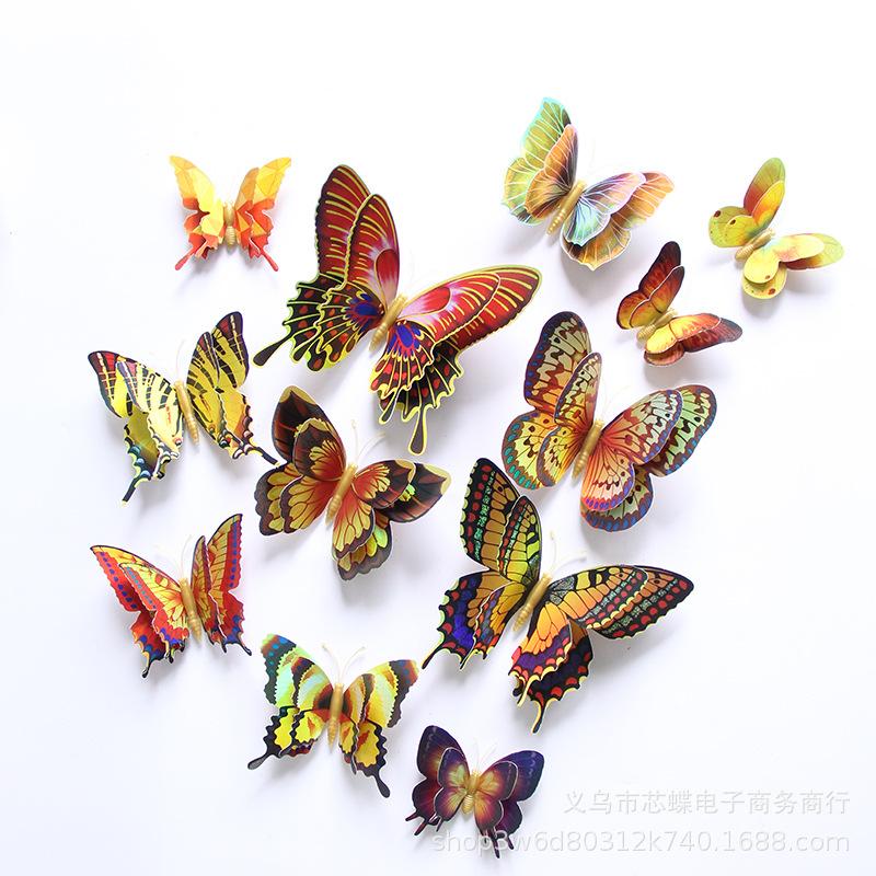 Decoración tridimensional de mariposa de doble capa simulación mariposa pvc mariposa de color pegatinas de pared de mariposa colorida de doble capa