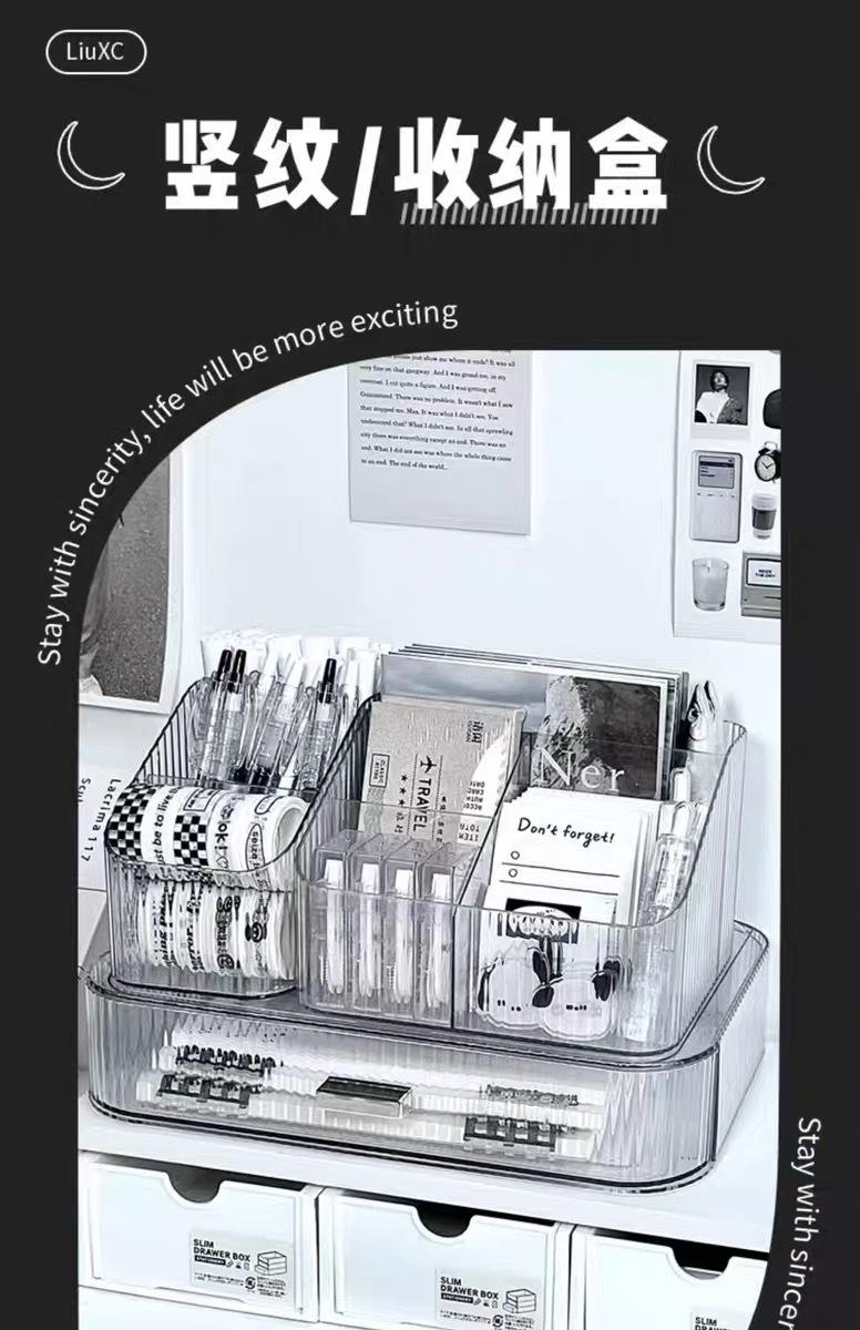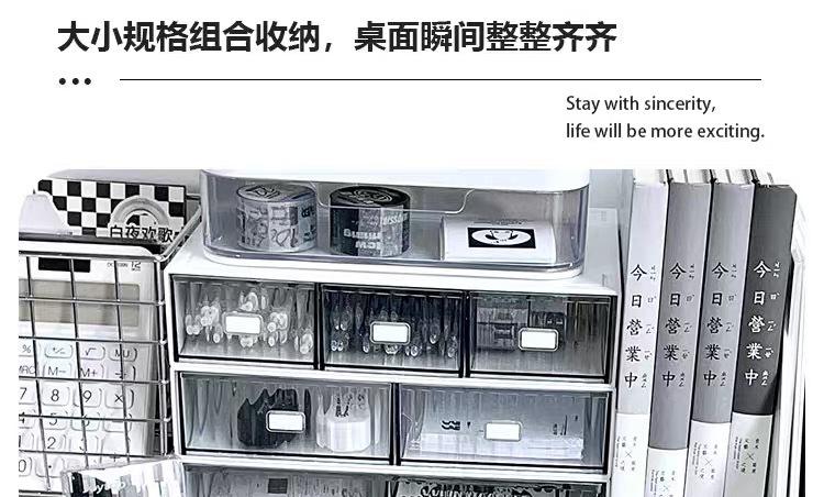 Caja de almacenamiento de escritorio, cajón transparente, organizador de cosméticos, portalápices para estudiantes, estante de almacenamiento para dormitorio y oficina