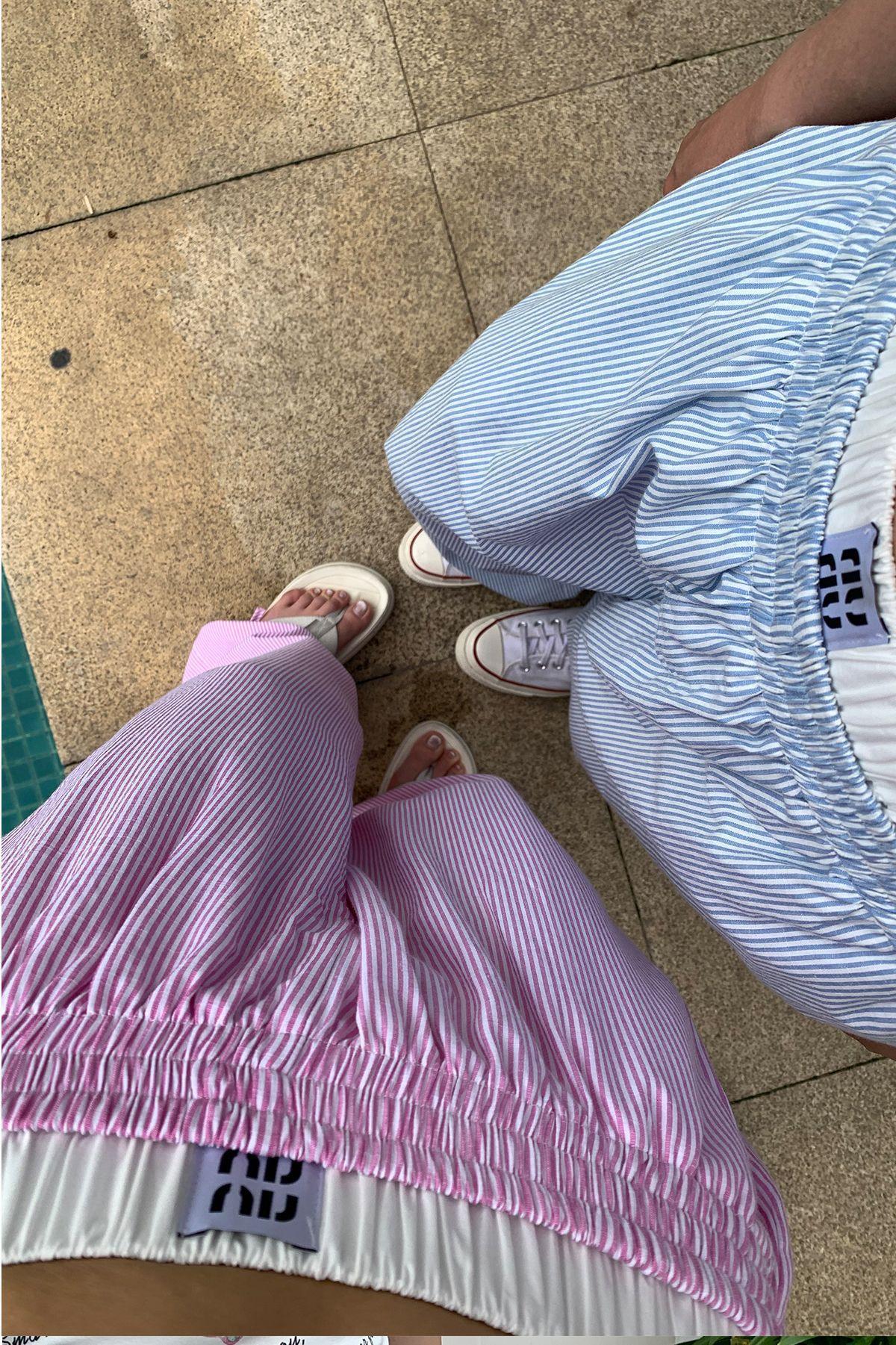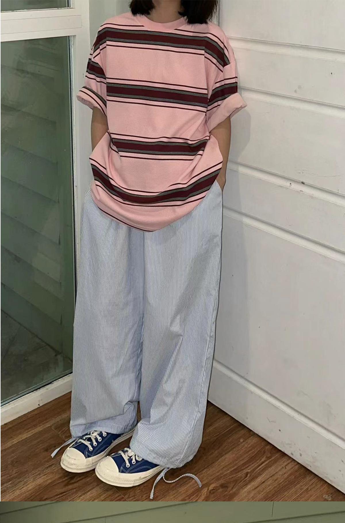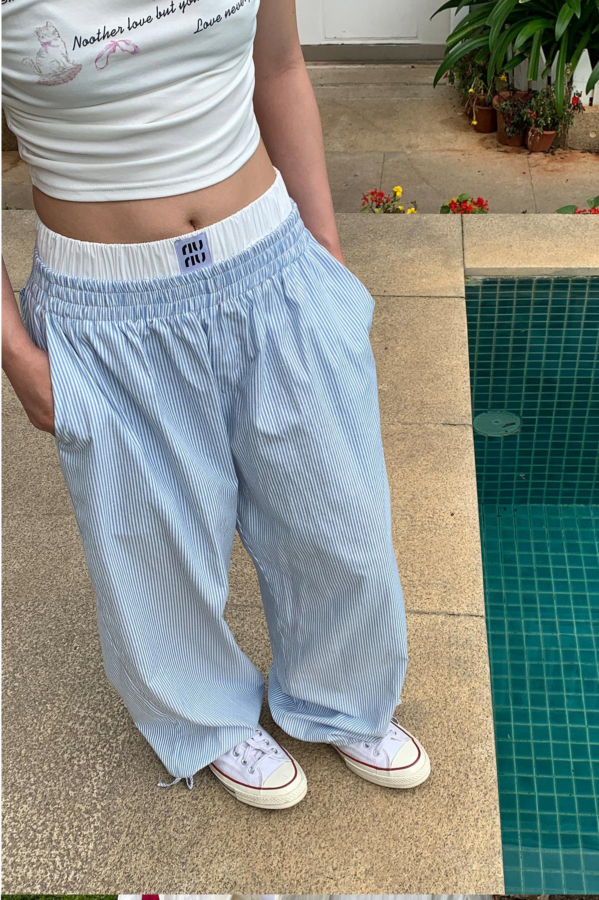 Compra Pantalones a Rayas Falsos de Dos Piezas para Mujer Verano 2025 Nuevo Delgados Casuales Pierna Ancha Sentido del Diseño Estilo Holgazán Adelgazantes Rectos al por mayor en Joom.pro