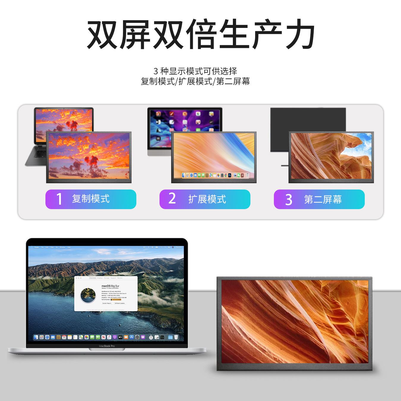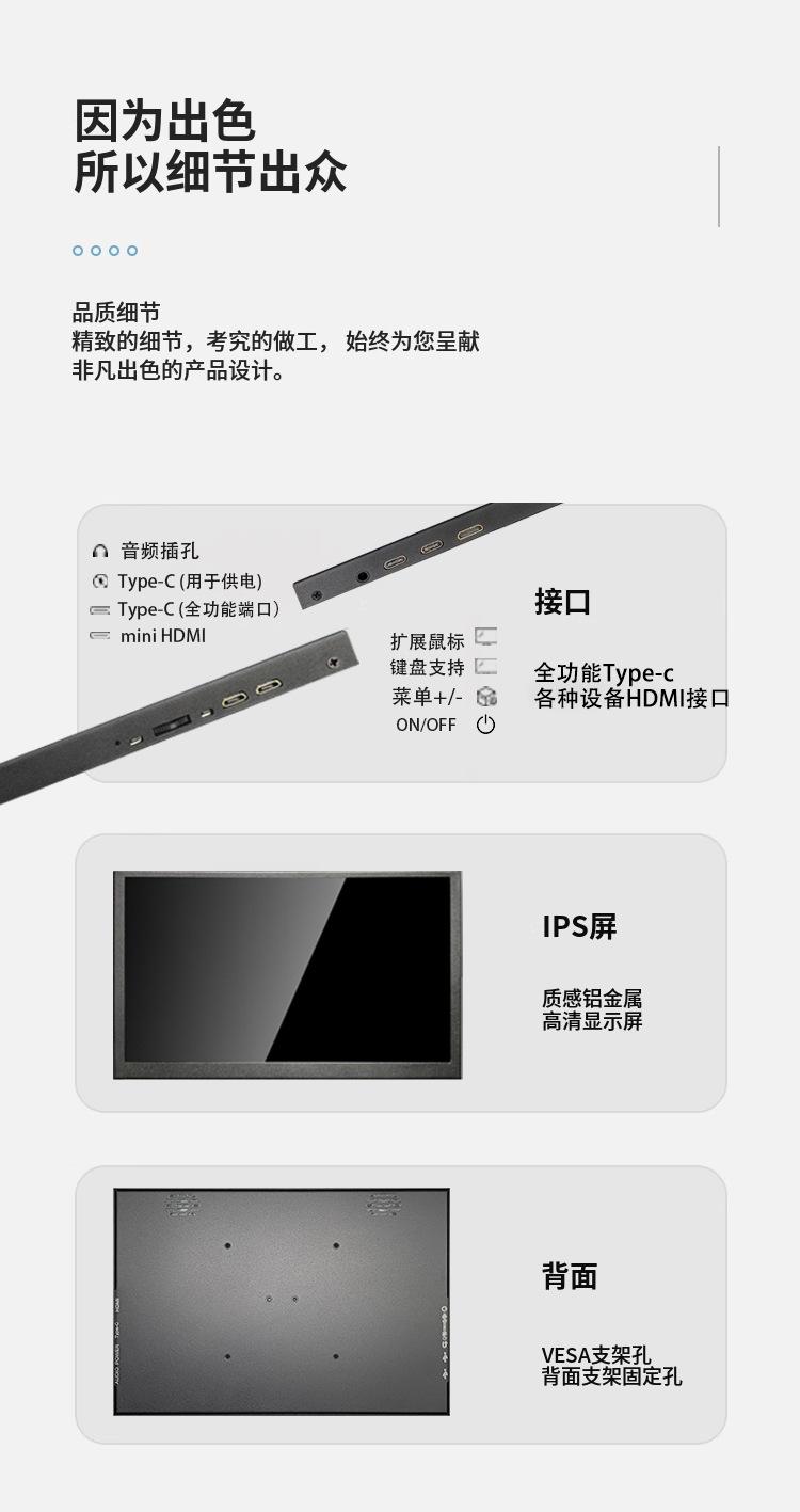 Pantalla portátil de 10.1 pulgadas Pantalla HD 2.5K Táctil capacitiva IPS Subpantalla de expansión para computadora Personalización del fabricante