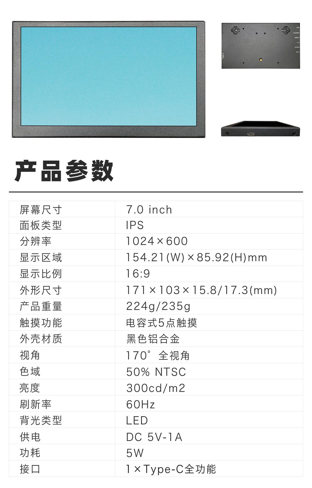7inch white touch display type-c one-line communication