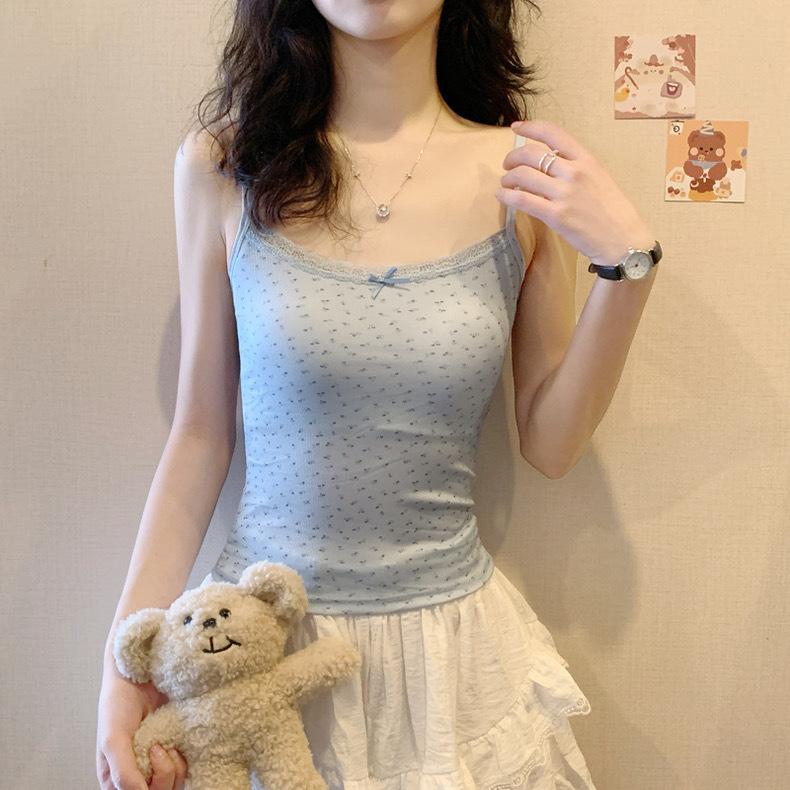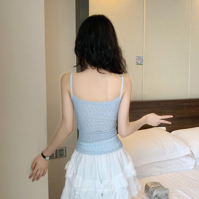 Chaleco de tirantes floral Pure Desire con almohadilla para el pecho para verano, nuevo top ajustado de encaje con base corta, ropa para mujer