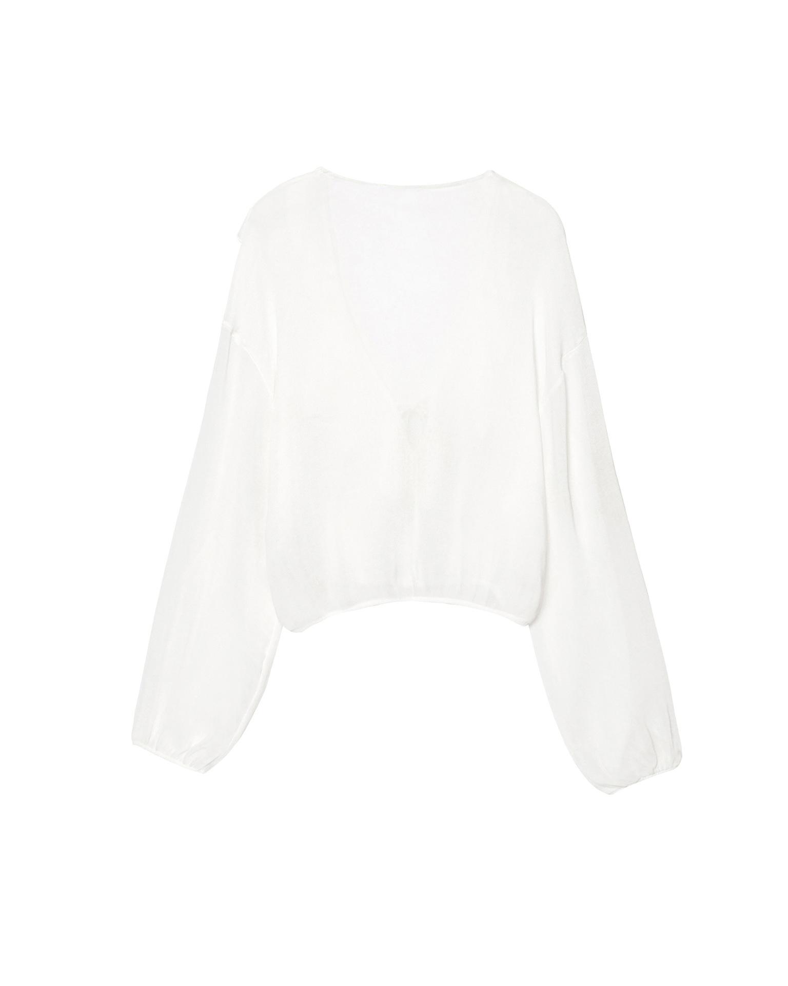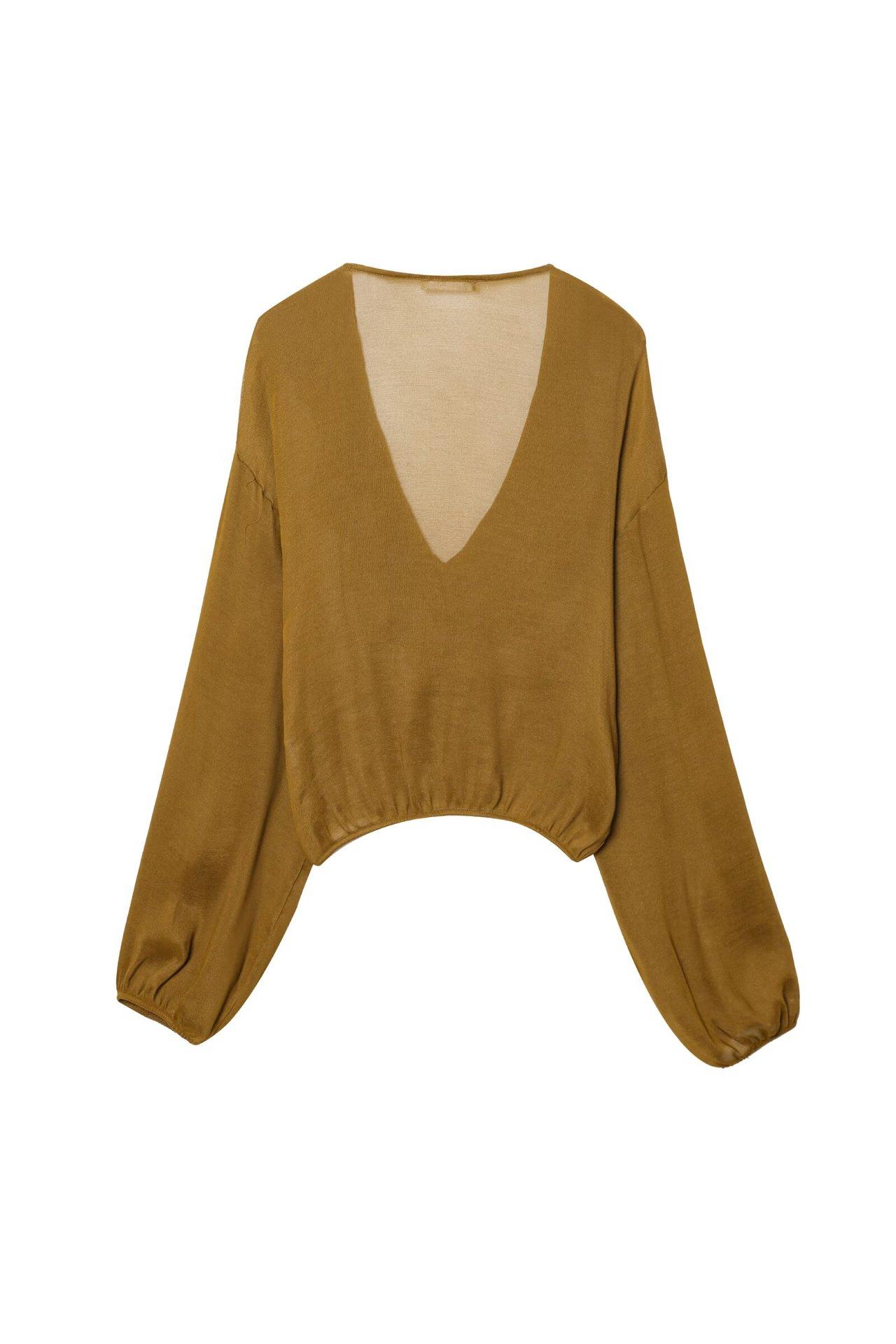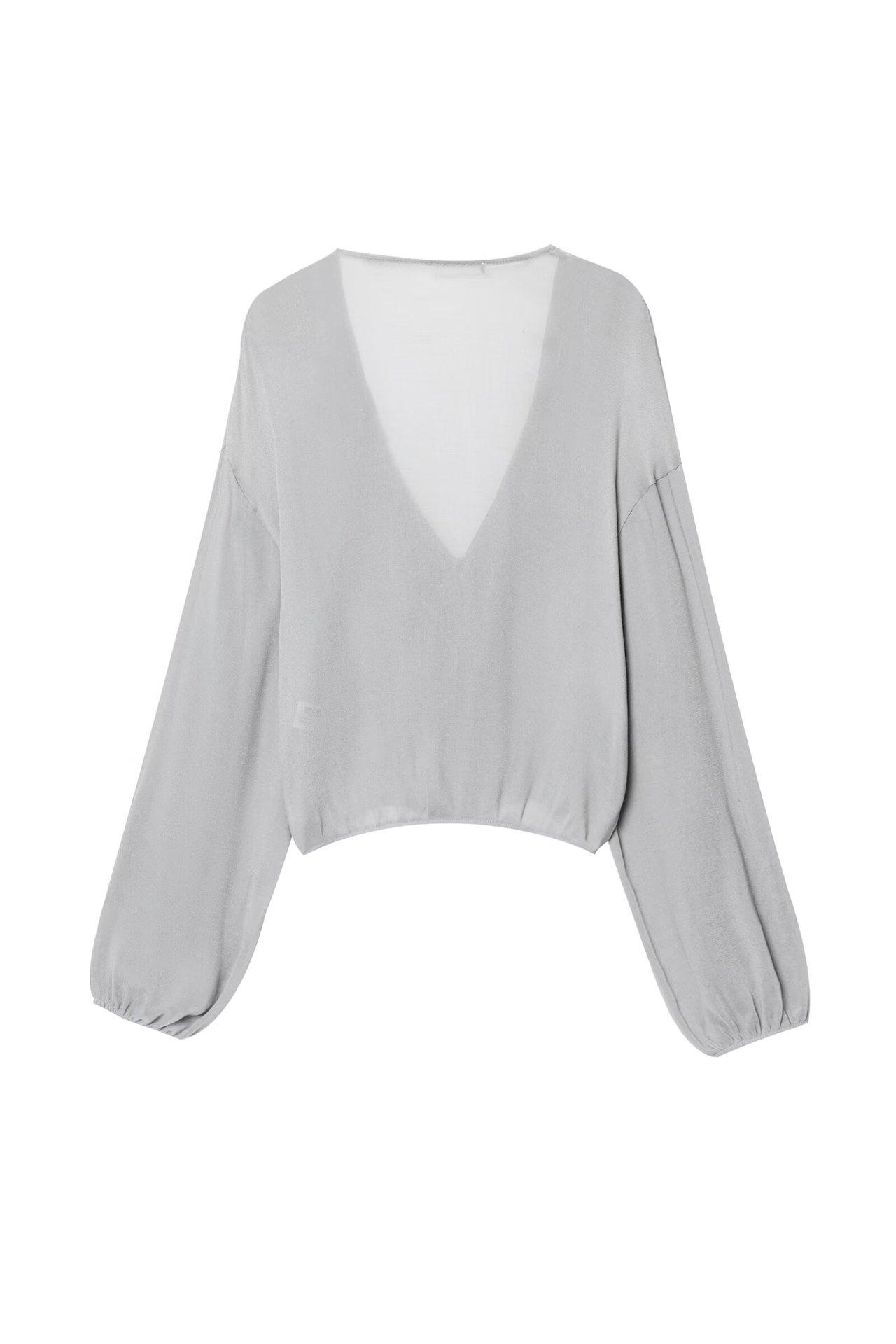 Primavera 2025 Nuevo Europeo y Americano Transfronterizo Moda Femenina Cuello en V Laminado Decorativo Drapeado Manga Larga Camisa w063 9310