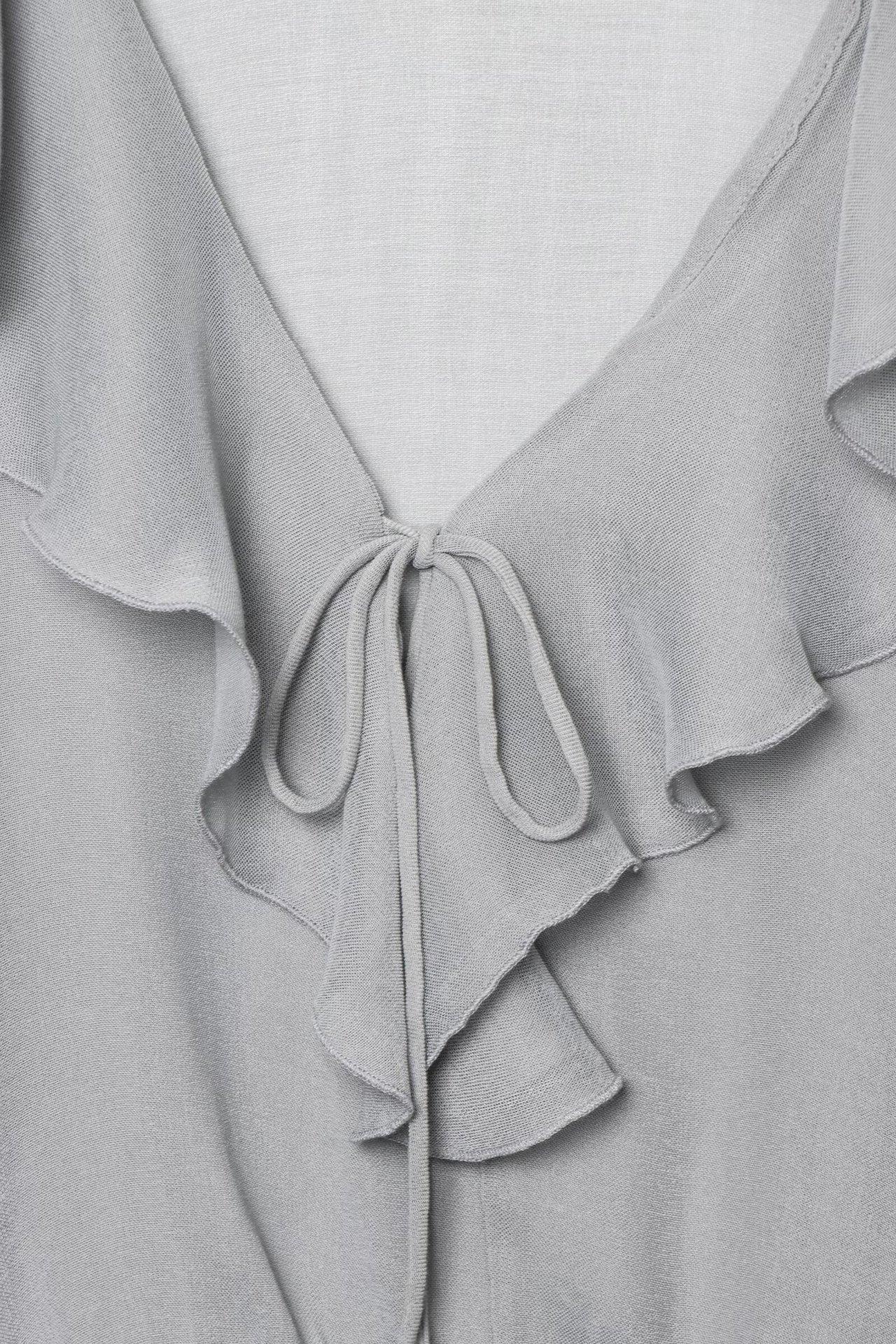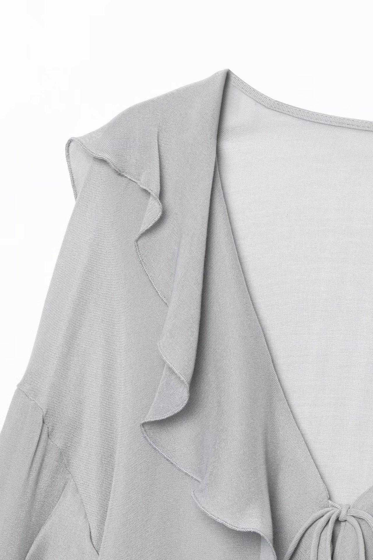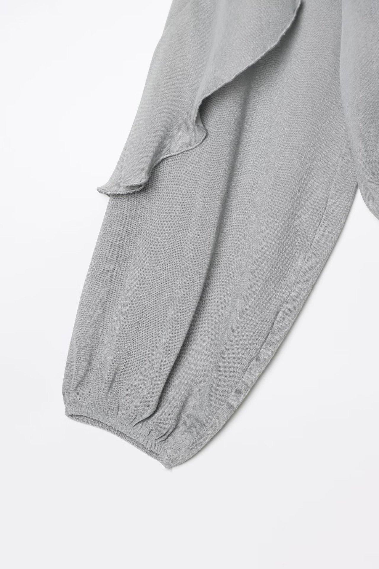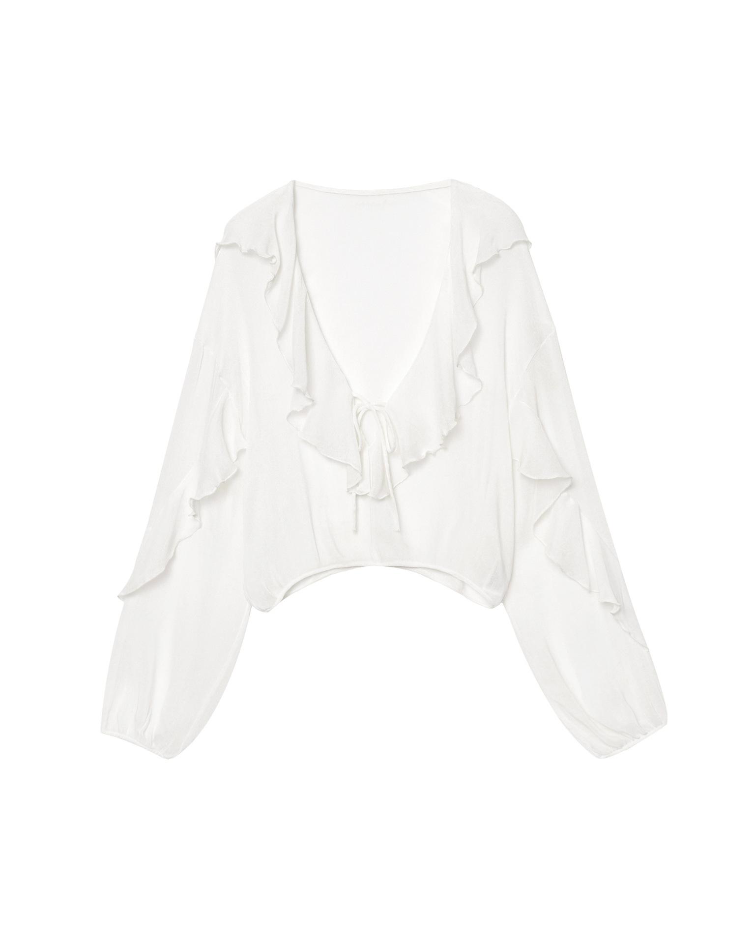 Primavera 2025 Nuevo Europeo y Americano Transfronterizo Moda Femenina Cuello en V Laminado Decorativo Drapeado Manga Larga Camisa w063 9310