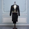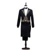 Traje de esmoquin con flores con incrustaciones de oro para hombre, traje de cantante, anfitrión, director de coro, traje de actuación, blanco y negro rojo