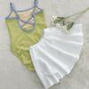Fruit green/blue [sling + chiffon lace-up skirt suit]