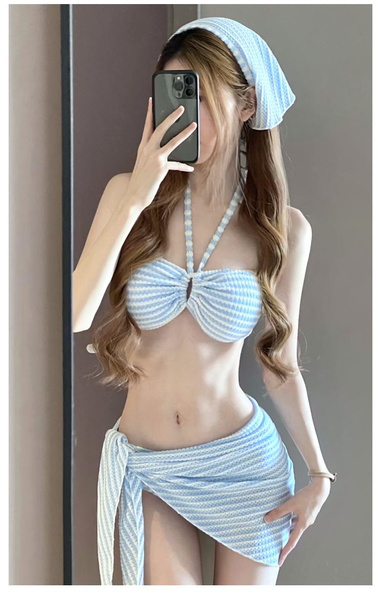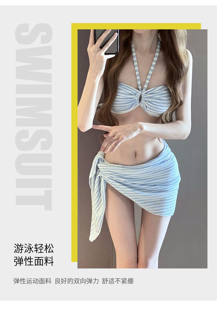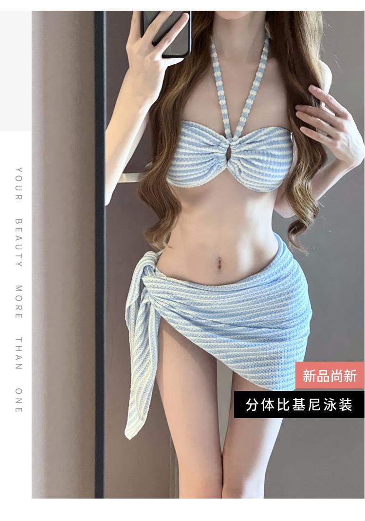 2025 Nuevo Traje de Baño Dividido para Mujer Bikini de Niña Dulce Set de Tres Piezas Cubre Carne Adelgazante Conservador Vacaciones en la Playa