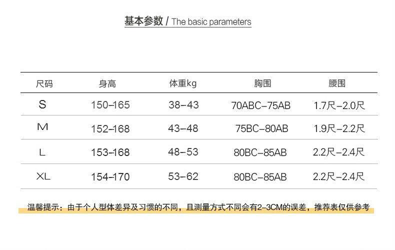 S code [recommended 37.5-42.5kg], M code [recommended 42.5-47.5kg ], L size [recommended 47.5-53kg], Xl code [...