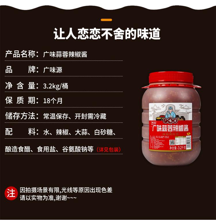 Salsa de ajo y chile Guangweiyuan, barril de 3,2 kg, para catering comercial, salsa para fideos de barbacoa, olla caliente, salsa de ostras, sabor a ajo