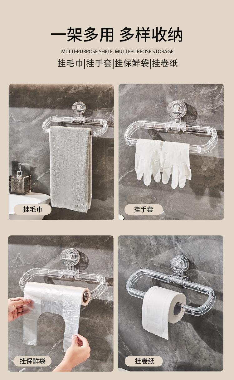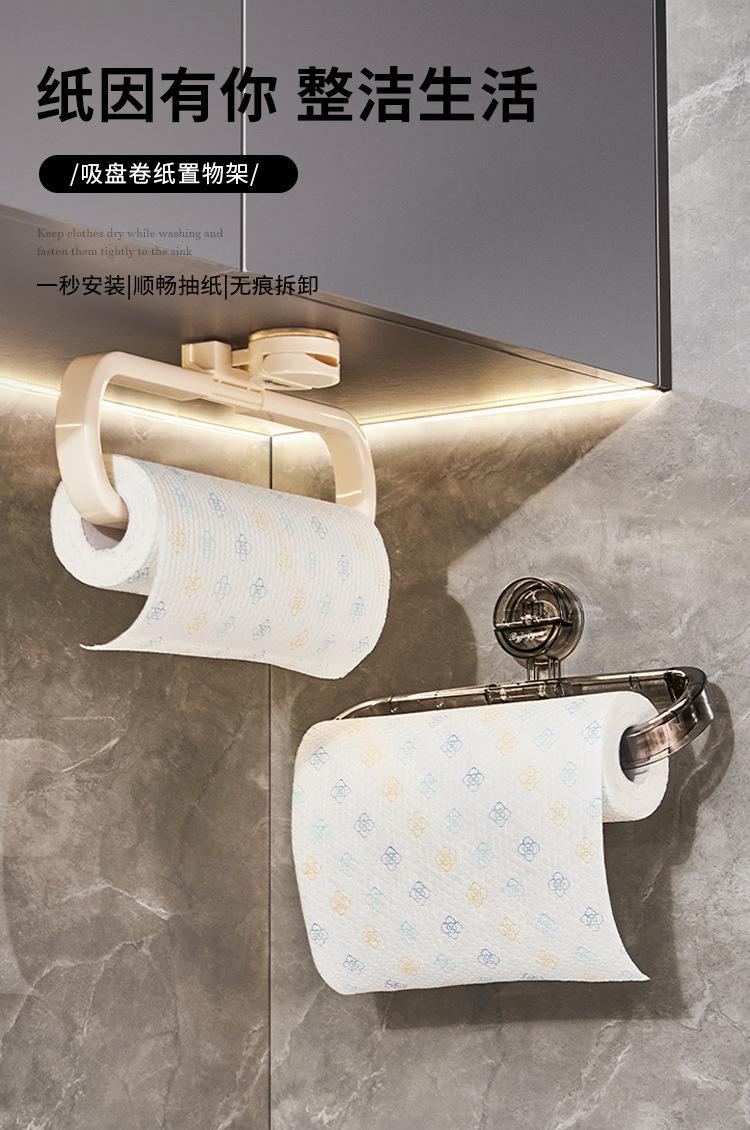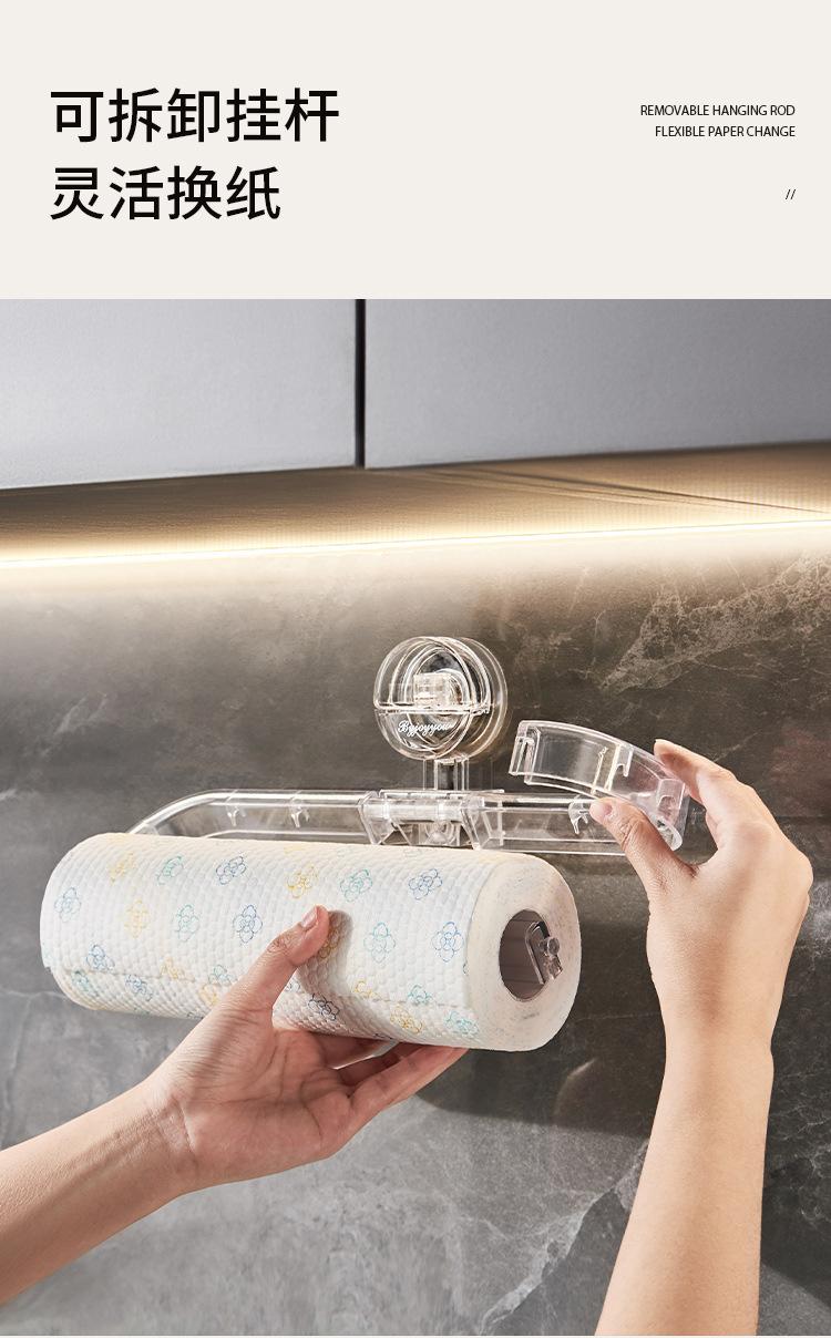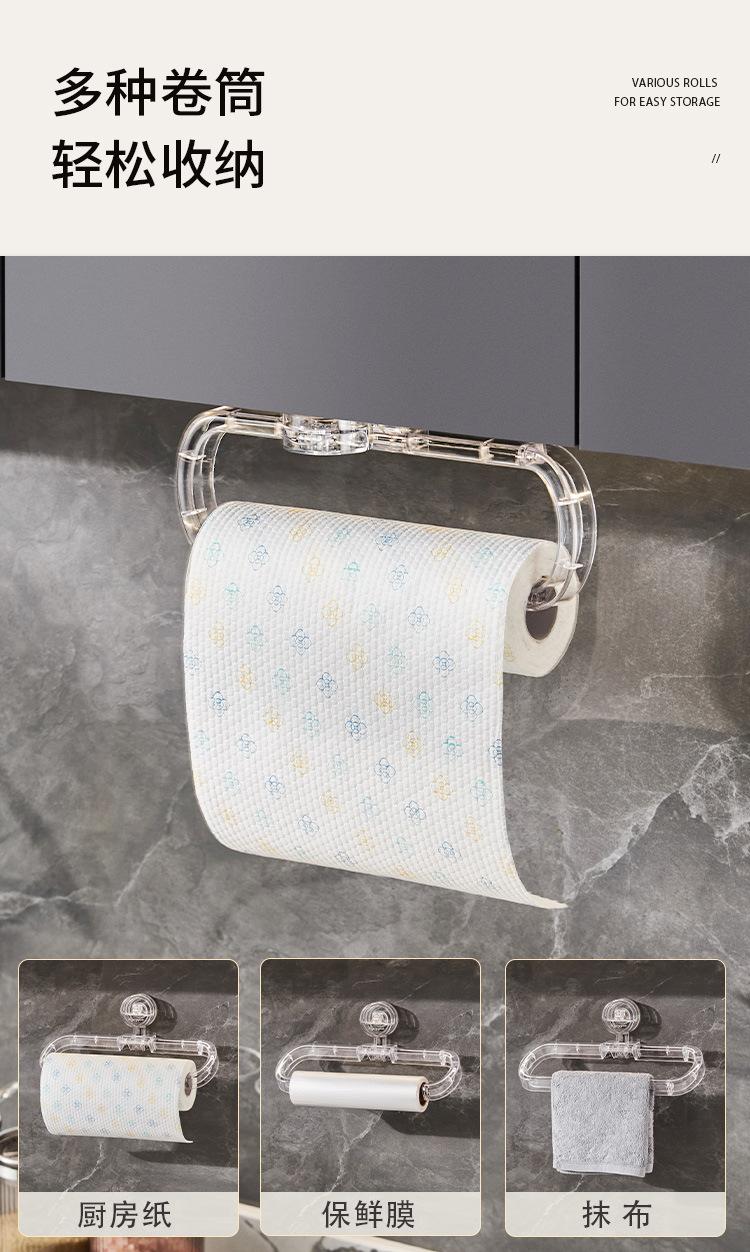Estante de almacenamiento de rollos de papel con ventosa para cocina, estante para colgar papel en la pared, estante para rollos de papel sin perforaciones, barra para colgar trapos, estante para colgar papel