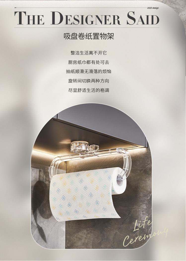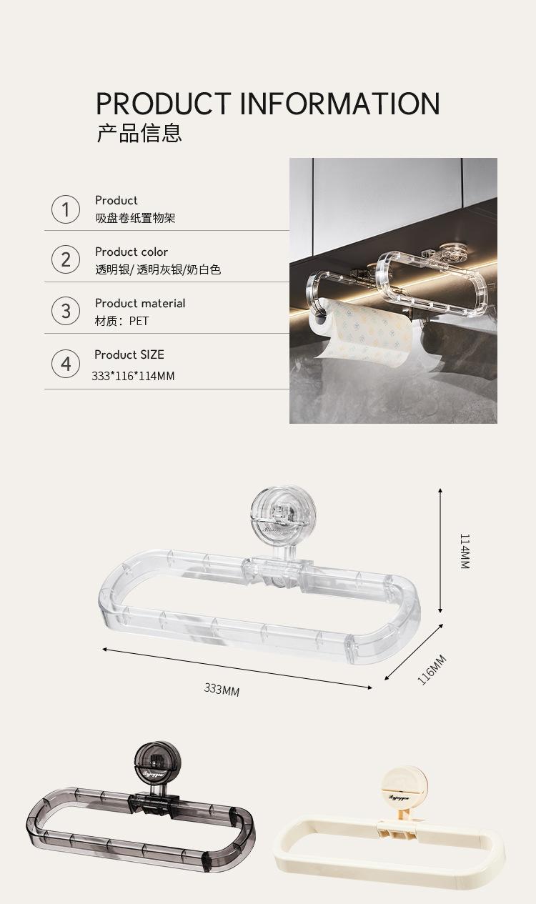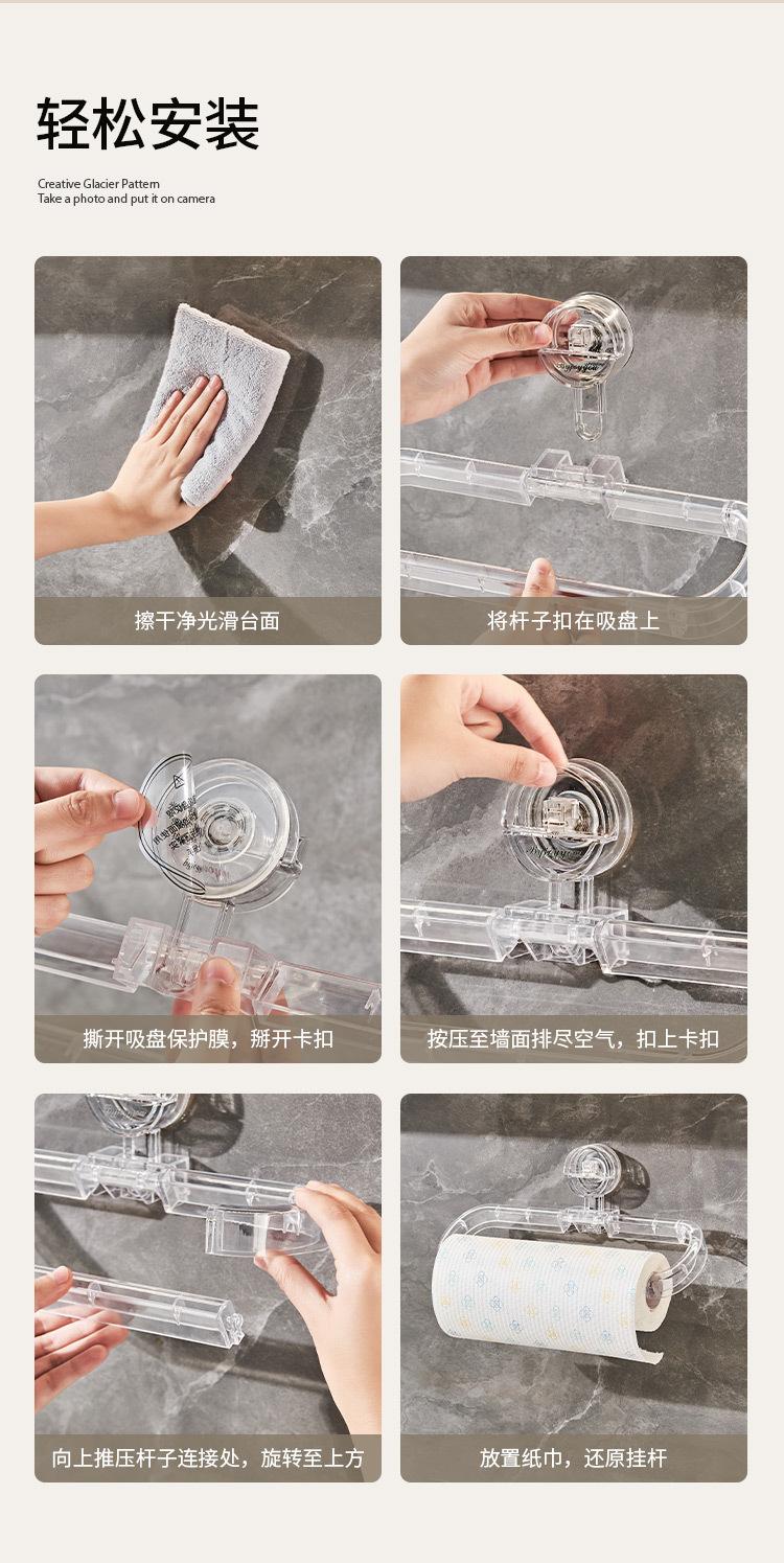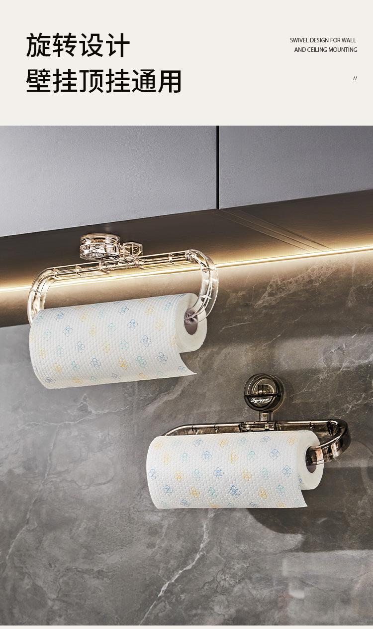 Estante de almacenamiento de rollos de papel con ventosa para cocina, estante para colgar papel en la pared, estante para rollos de papel sin perforaciones, barra para colgar trapos, estante para colgar papel