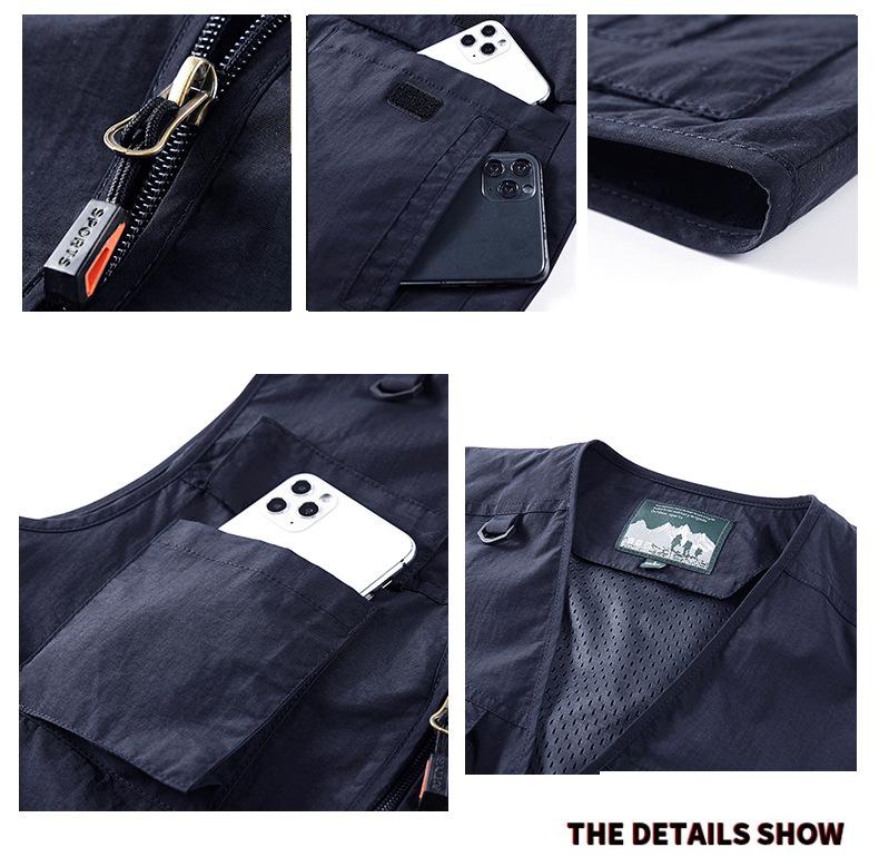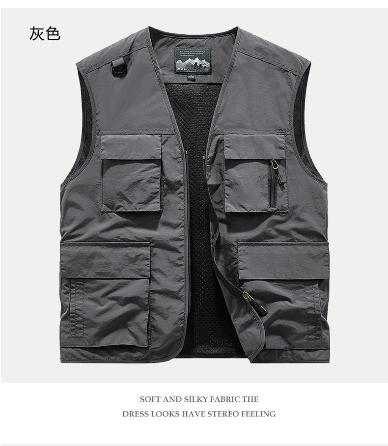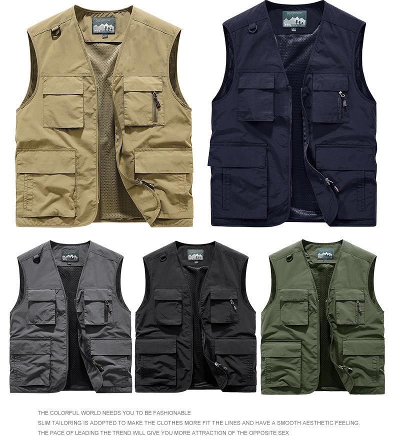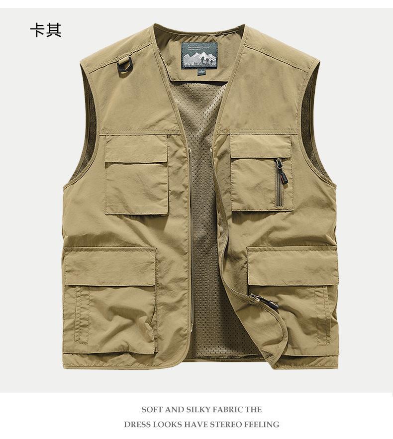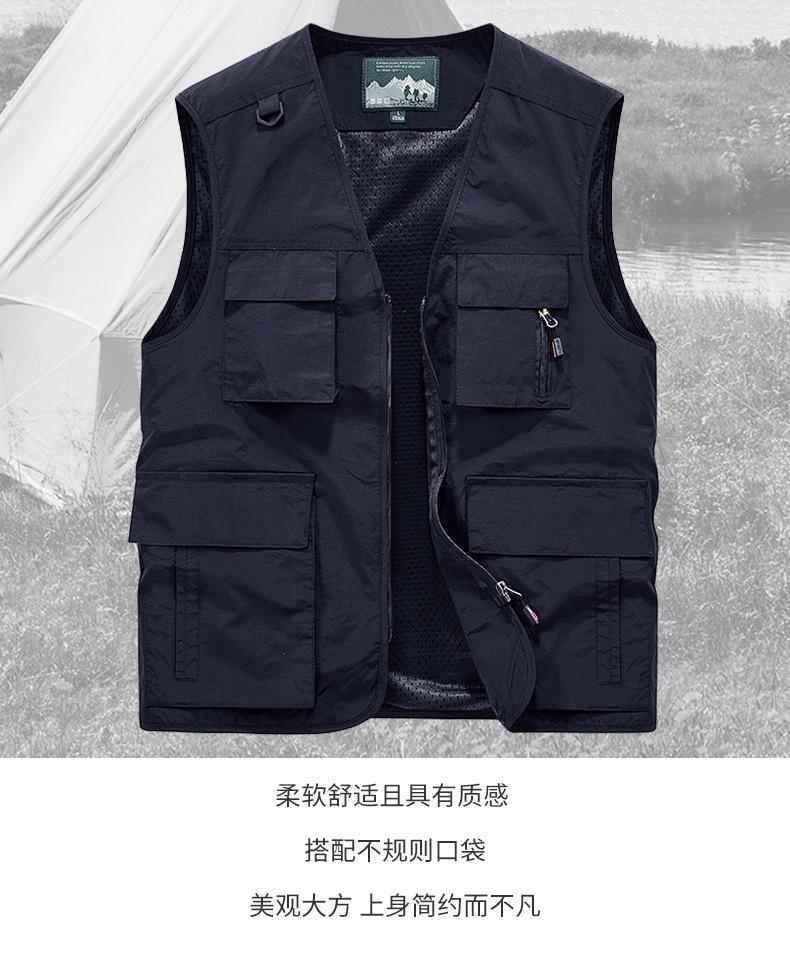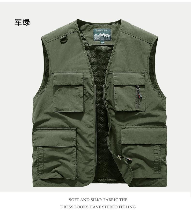 Primavera y Verano nuevo chaleco para hombre delgado sin mangas cuello alto multibolsillos chaleco de secado rápido transfronterizo talla grande chaleco 8863