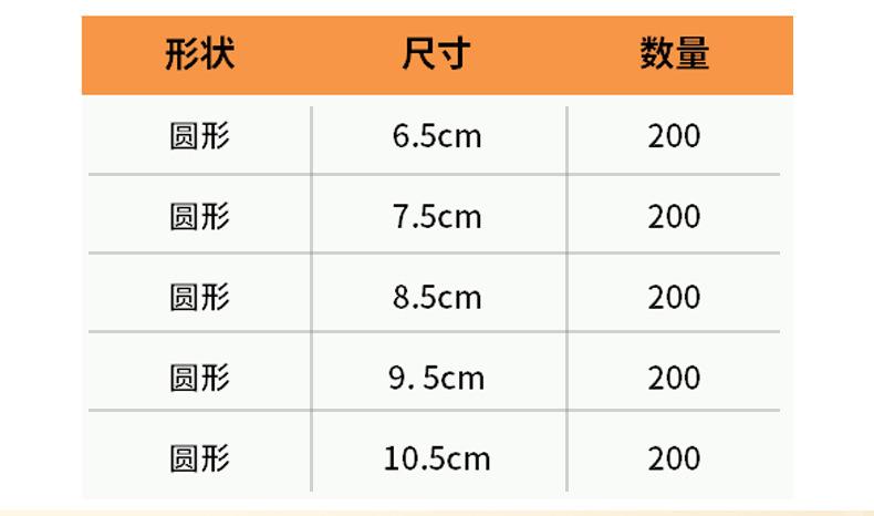 6.5inch, 7.5inch, 8.5inch, 9.5inch, 10.5inch, Oil-absorbing paper