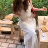 2025 Socialité Francesa Elegante Verano Francés Nuevo Estilo Cuello Volantes Cintura Alta Delgado Vestido de Tirantes para Mujer