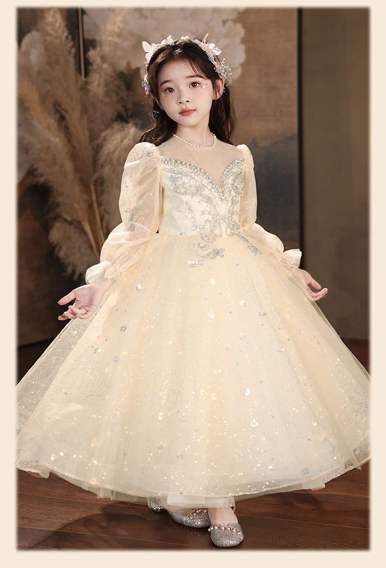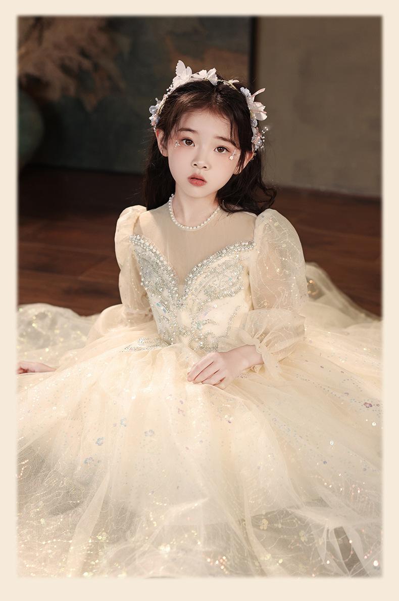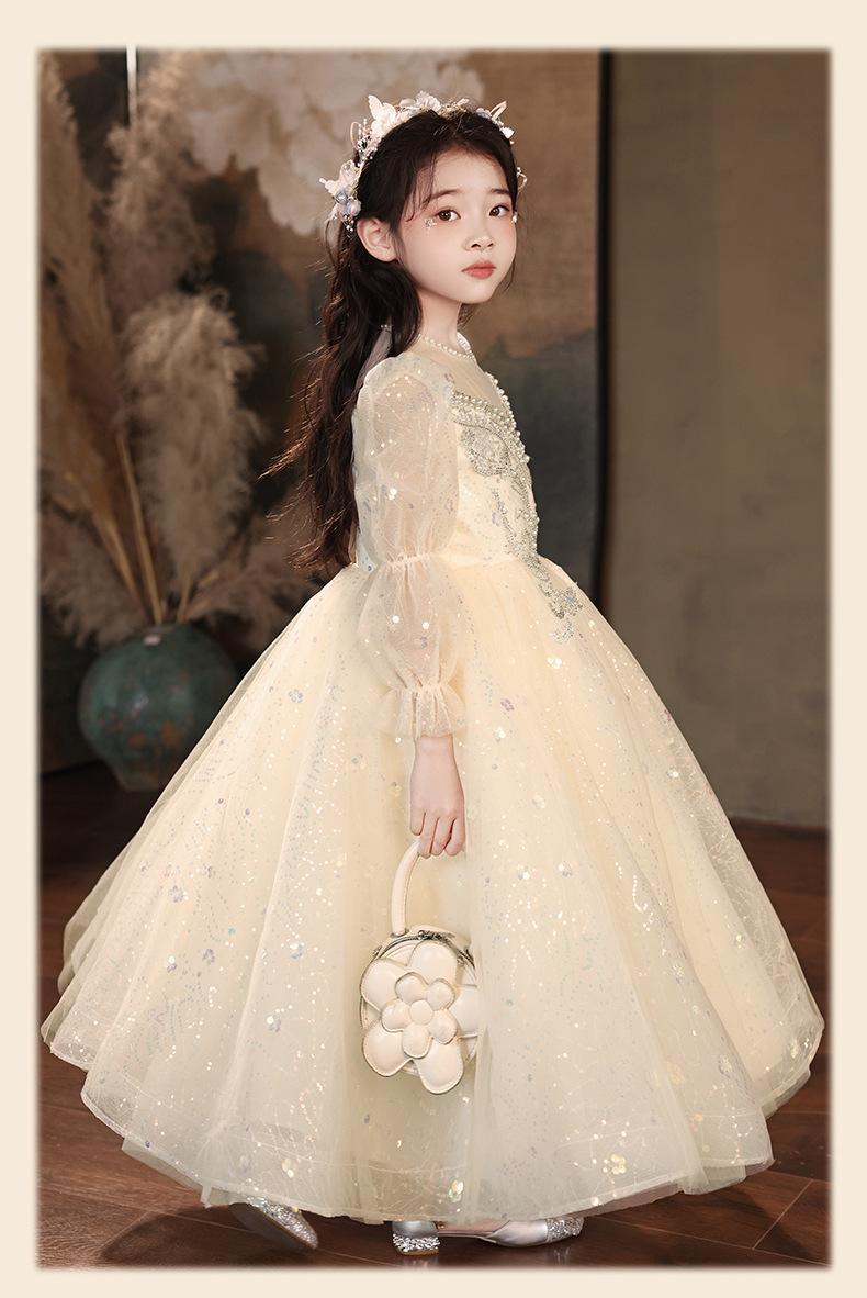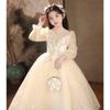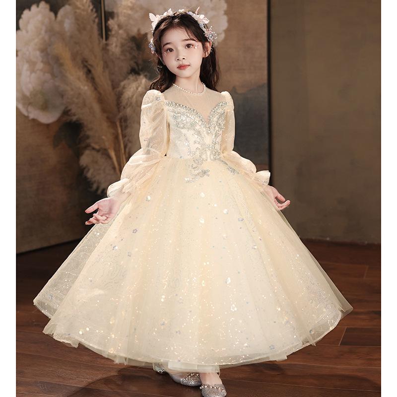 Vestido de Noche para Niñas 2025 Nuevo Vestido de Princesa Color Champagne Niña Elegante Cumpleaños Niños Ropa de Actuación de Anfitriona