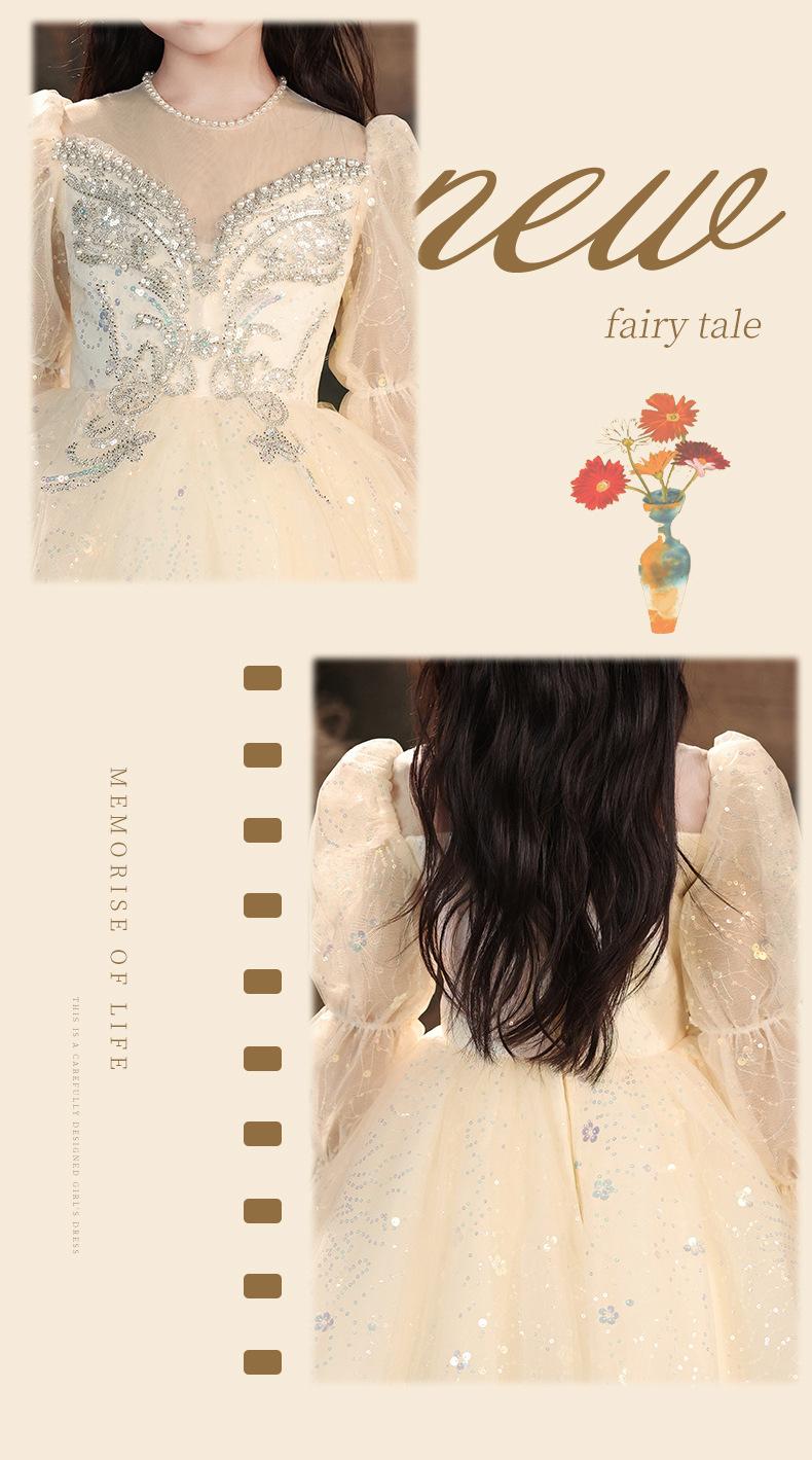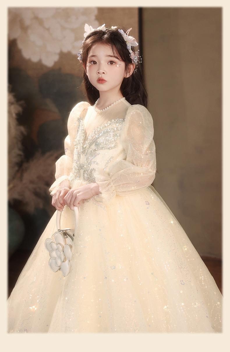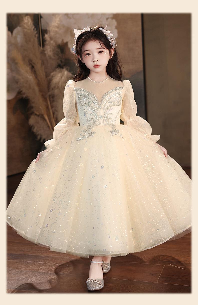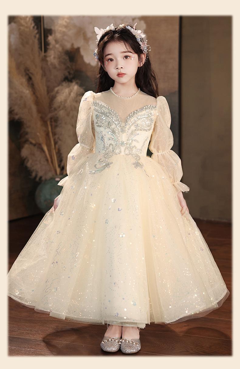 Vestido de Noche para Niñas 2025 Nuevo Vestido de Princesa Color Champagne Niña Elegante Cumpleaños Niños Ropa de Actuación de Anfitriona