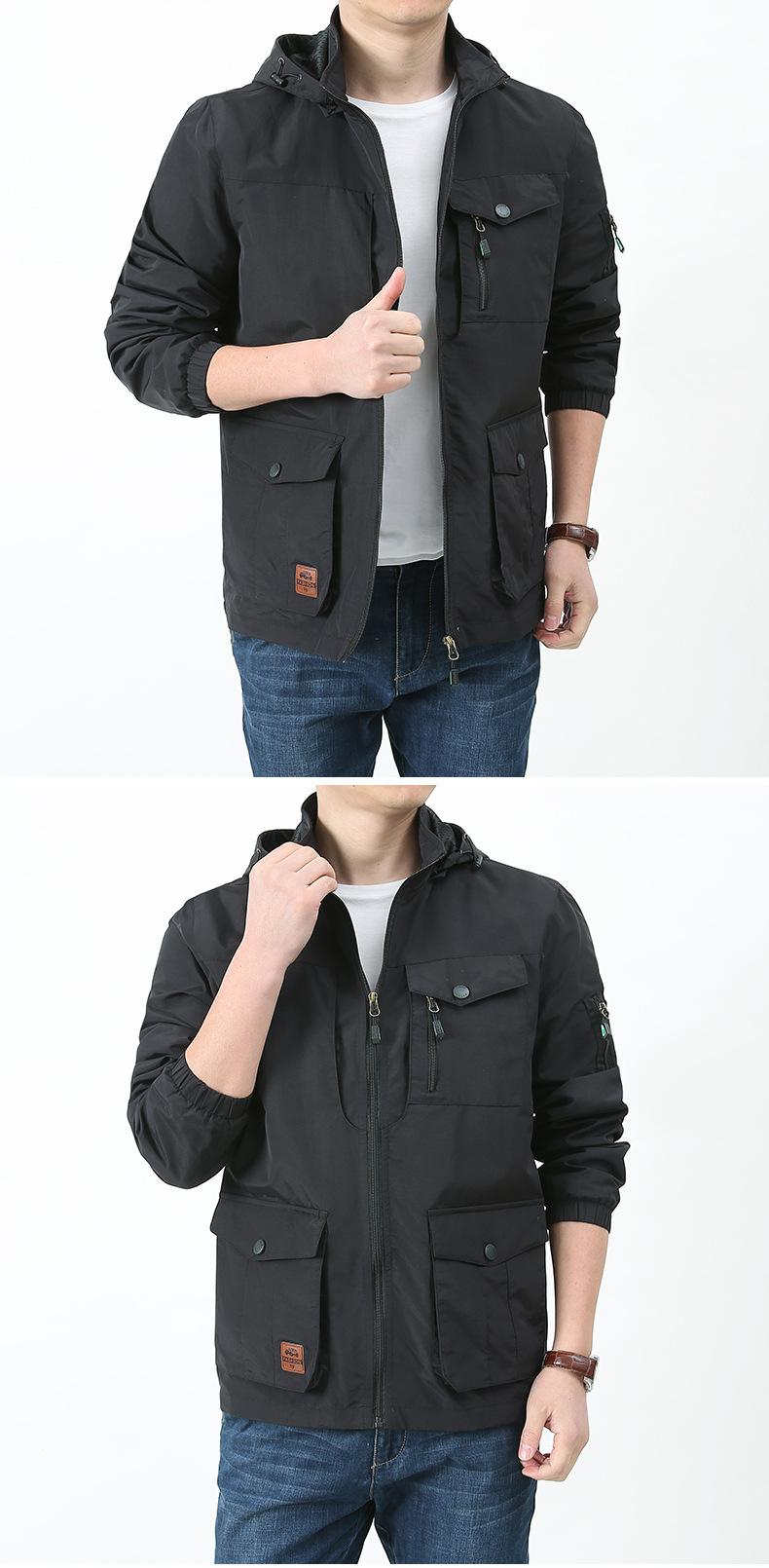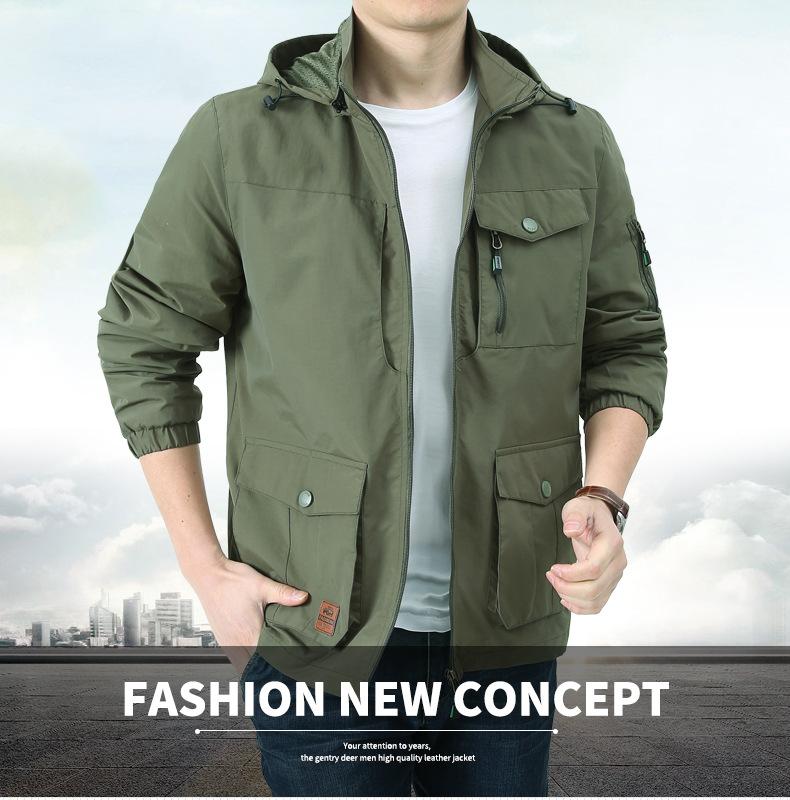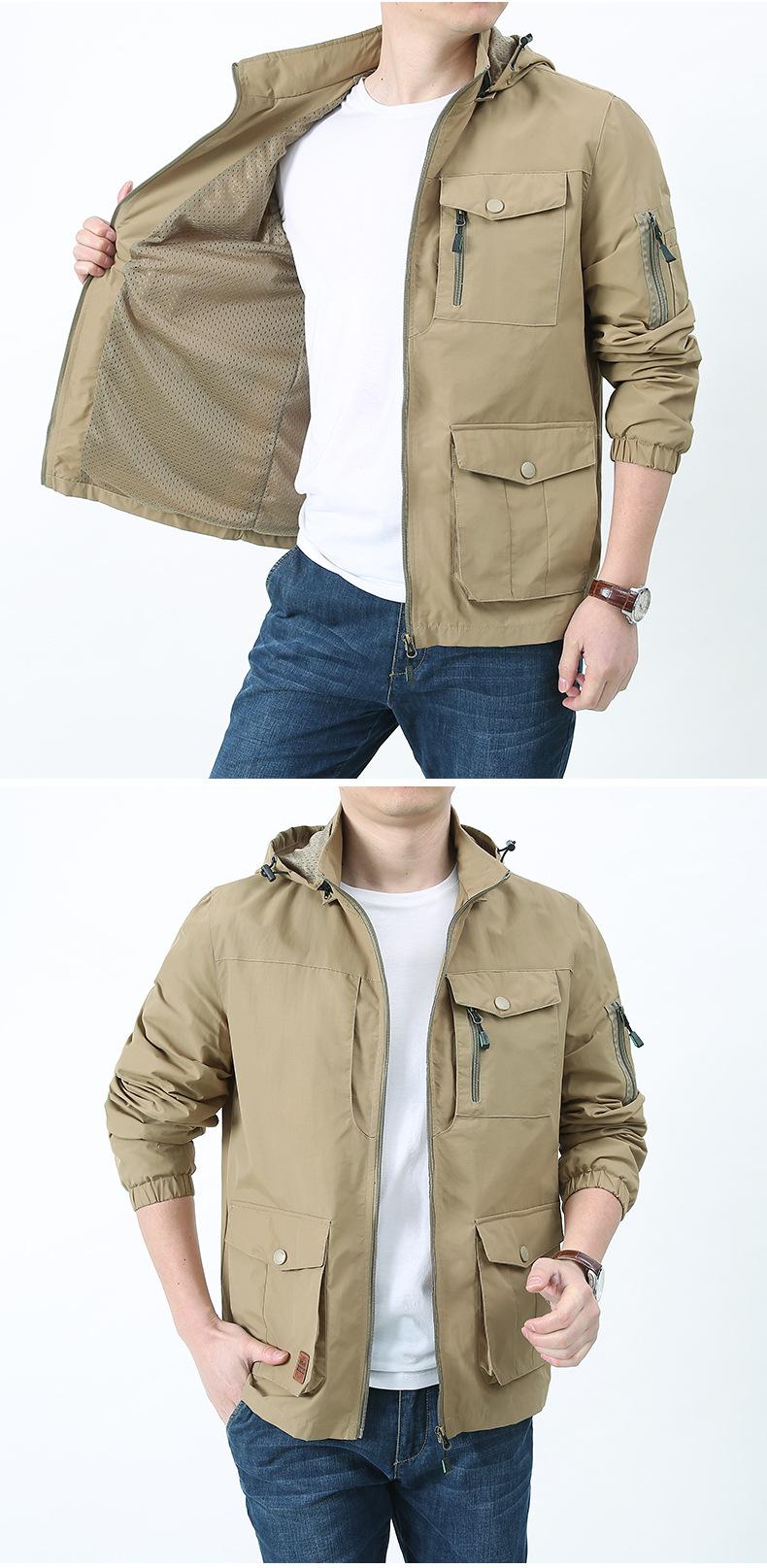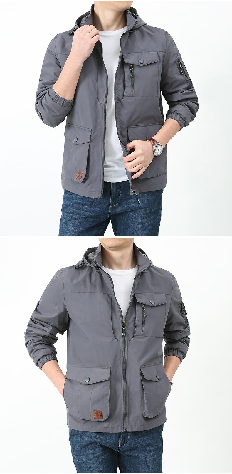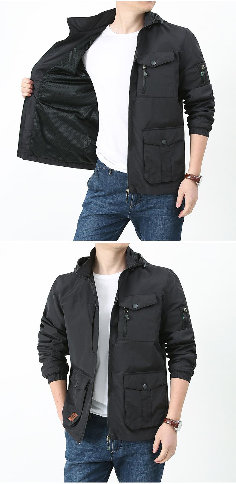 Chaqueta Nueva de Primavera y Otoño para hombre, holgada, talla grande, con múltiples bolsillos, con capucha, para trabajo al aire libre, top
