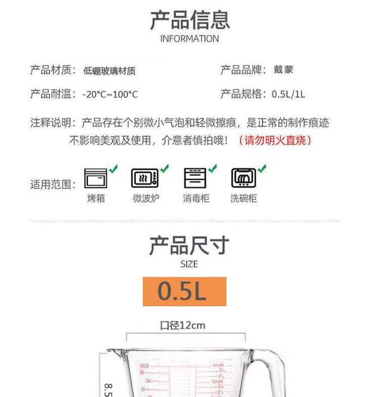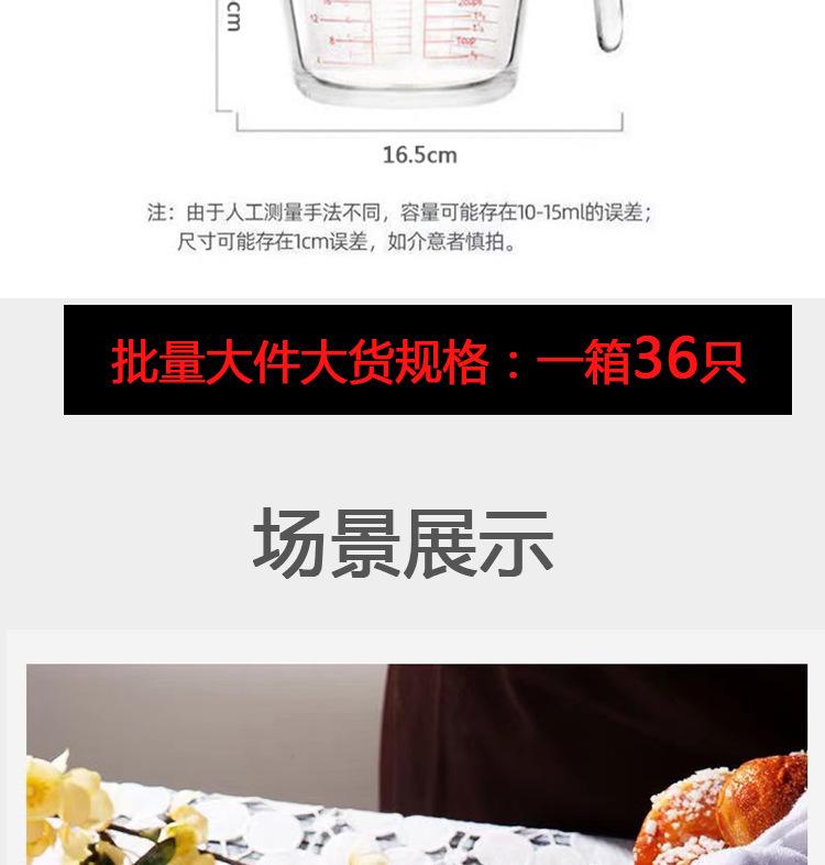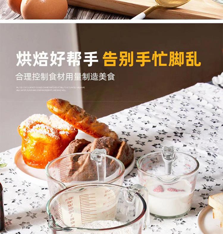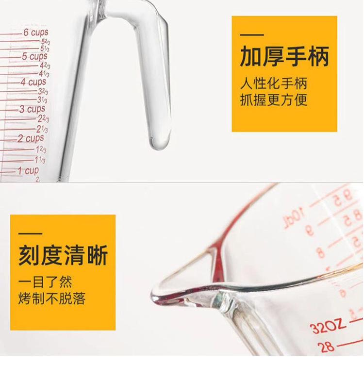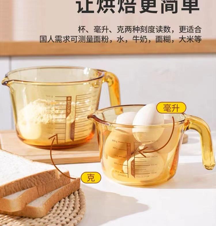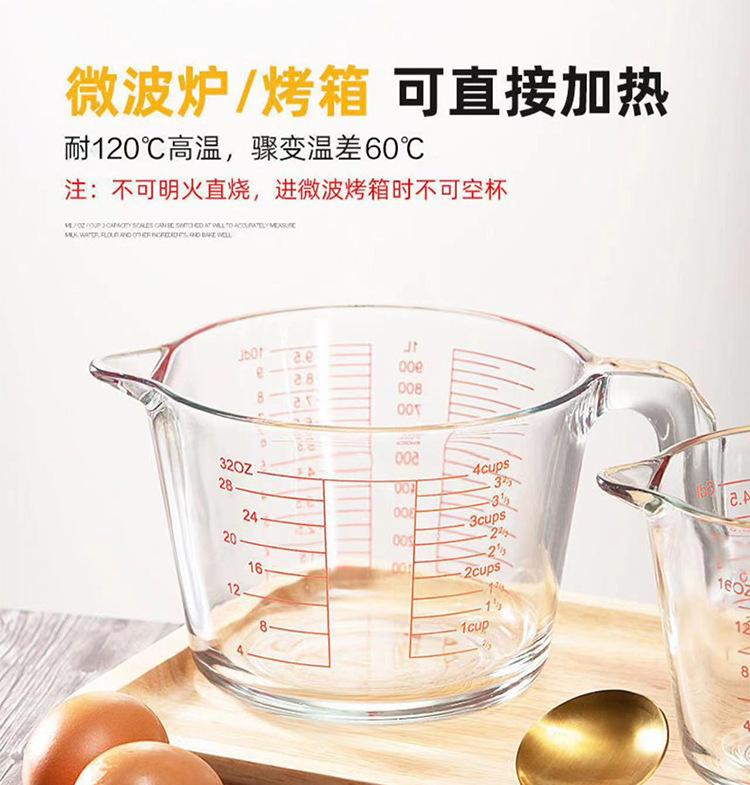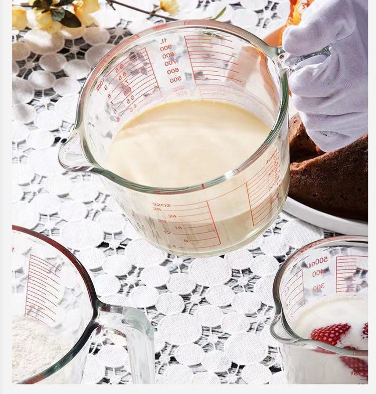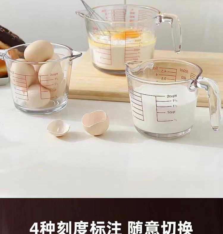 Taza medidora de vidrio con asa de escala taza medidora ml vidrio borosilicato bajo resistente al calor utensilios de cocina para hornear