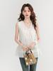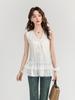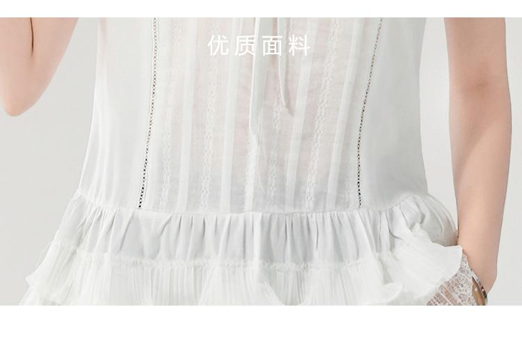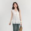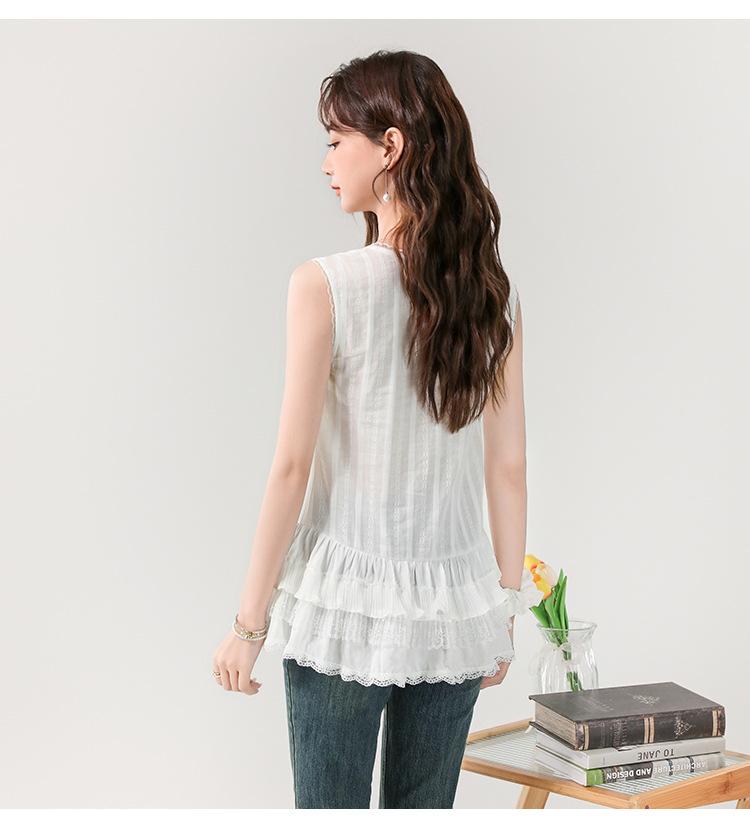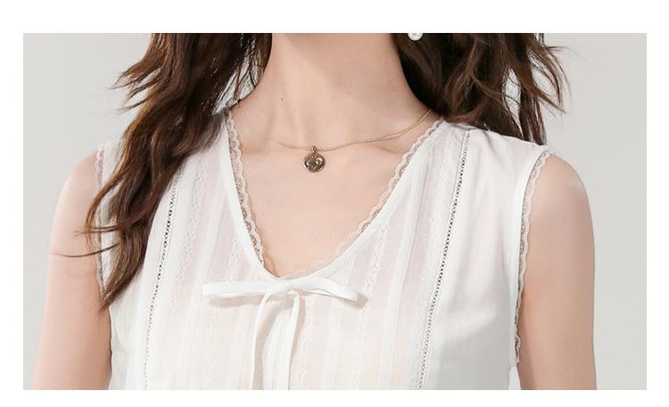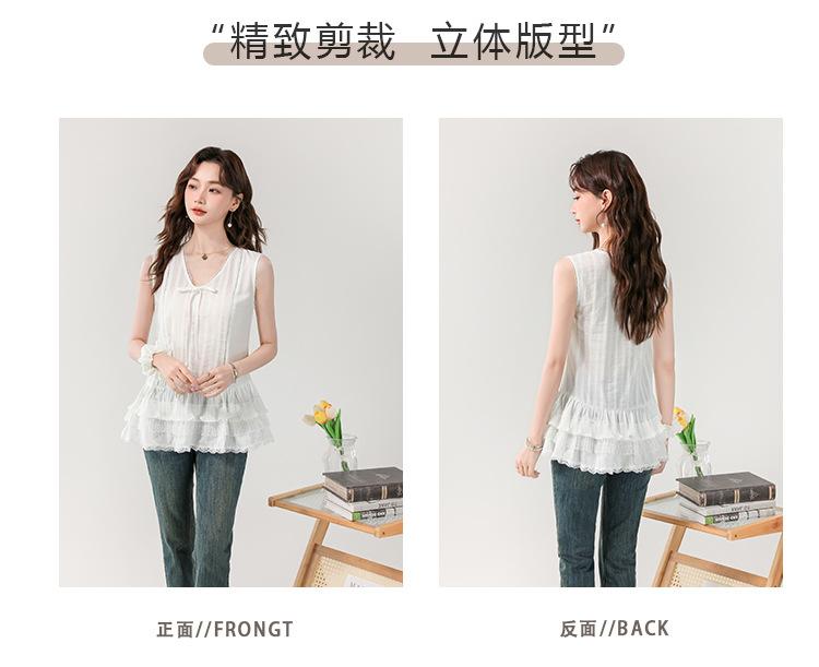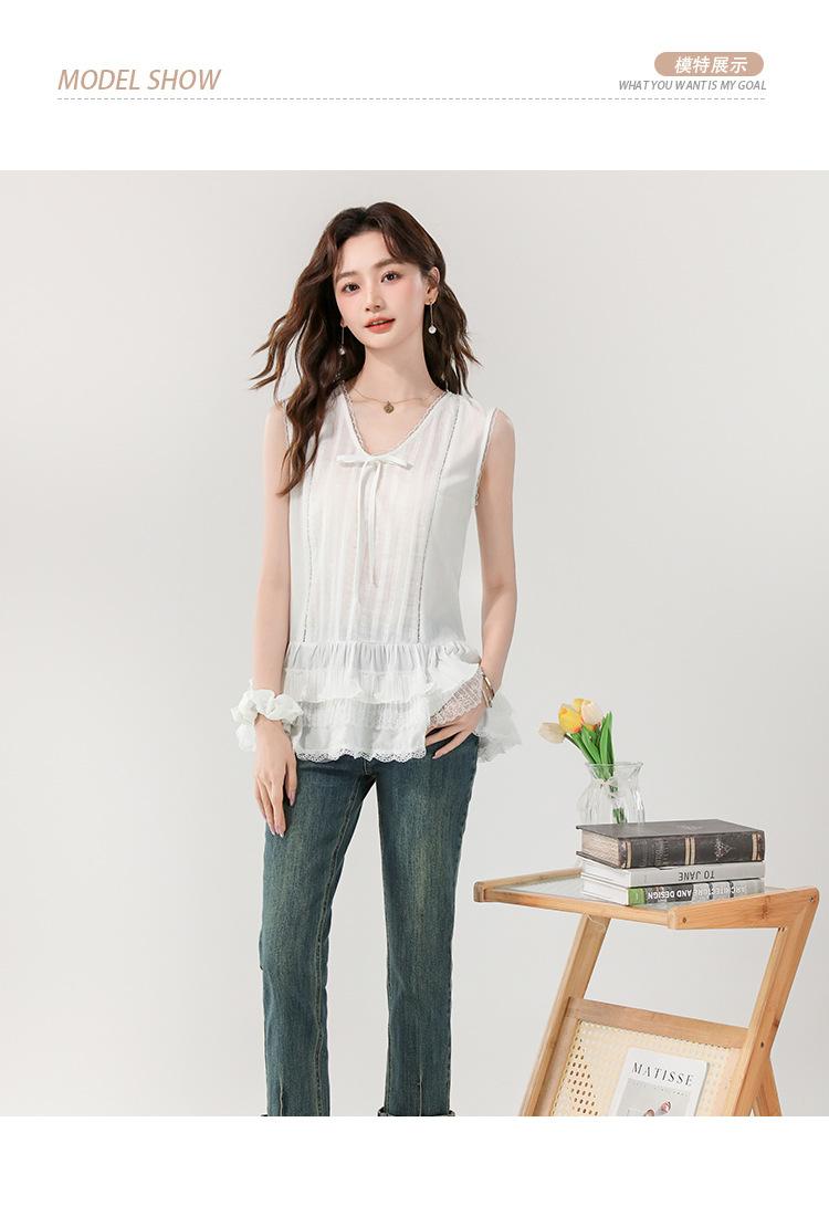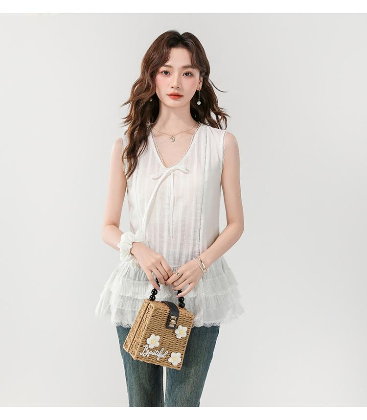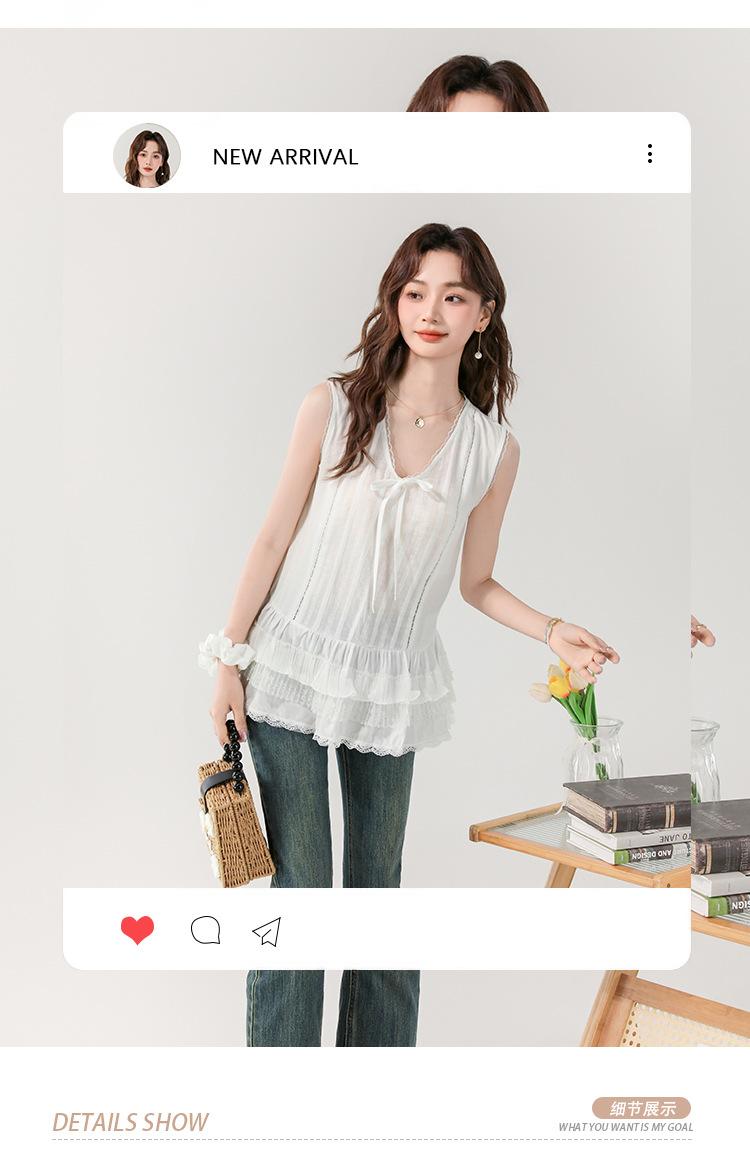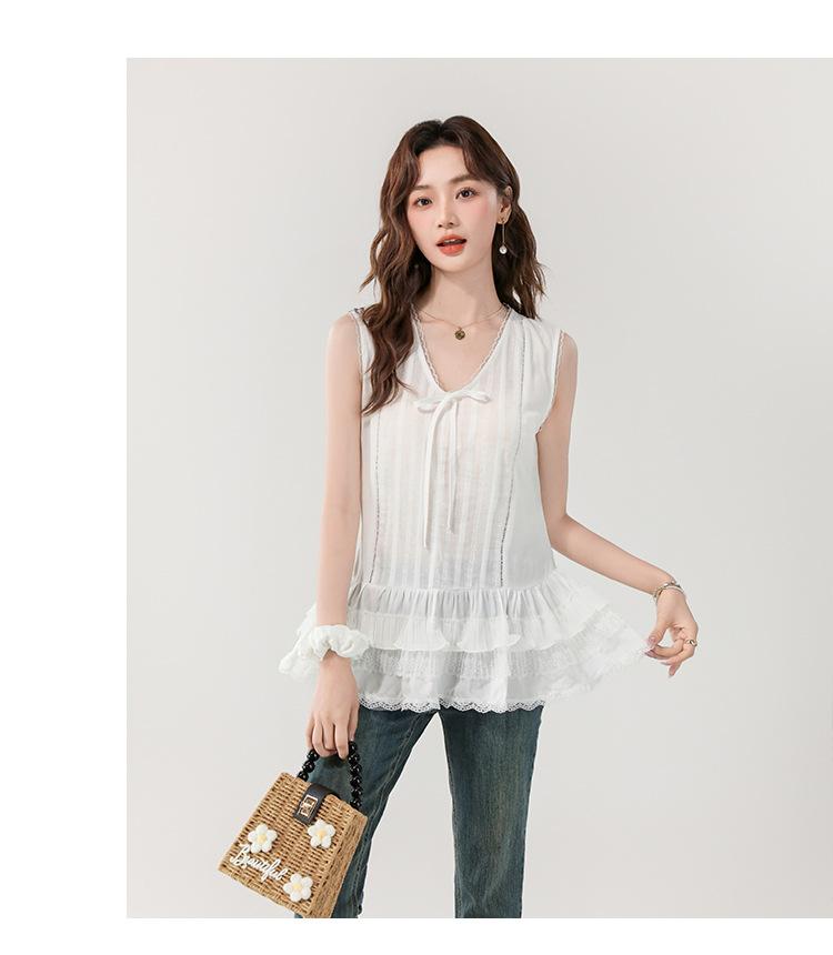 Compra Foto Real del Nuevo Estilo de Verano Top Chaleco Blanco de Capas con Encaje con Lazos y Borde de Encaje sin Mangas con Cuello Francés al por mayor en Joom.pro