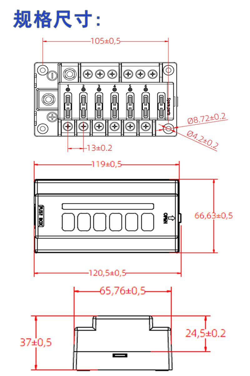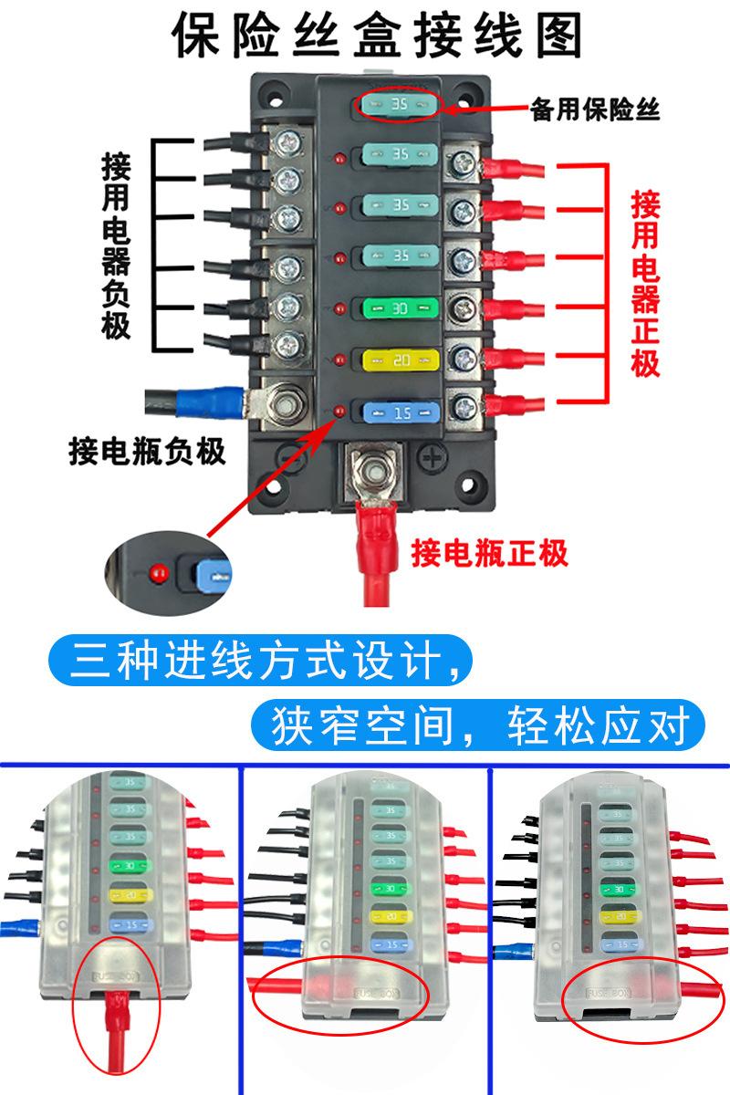 3.Puede instalar 6 fusibles tipo ATO y un fusible de repuesto;
