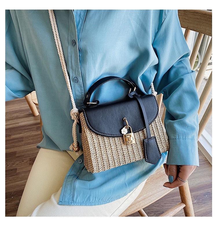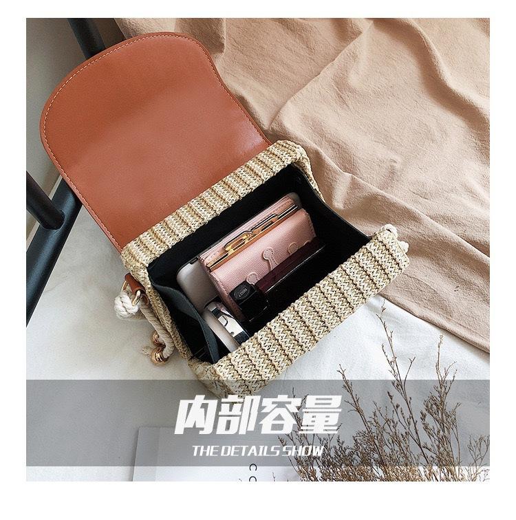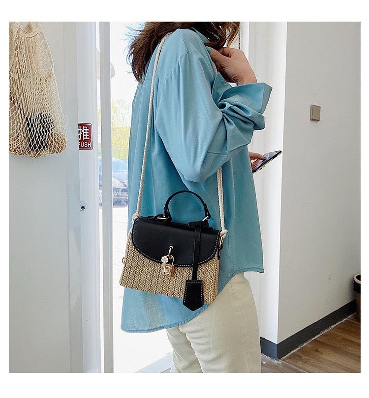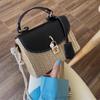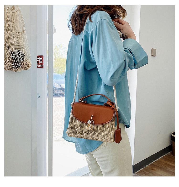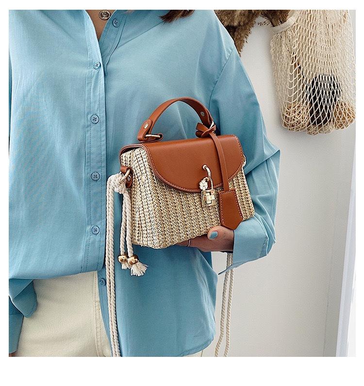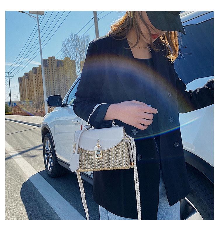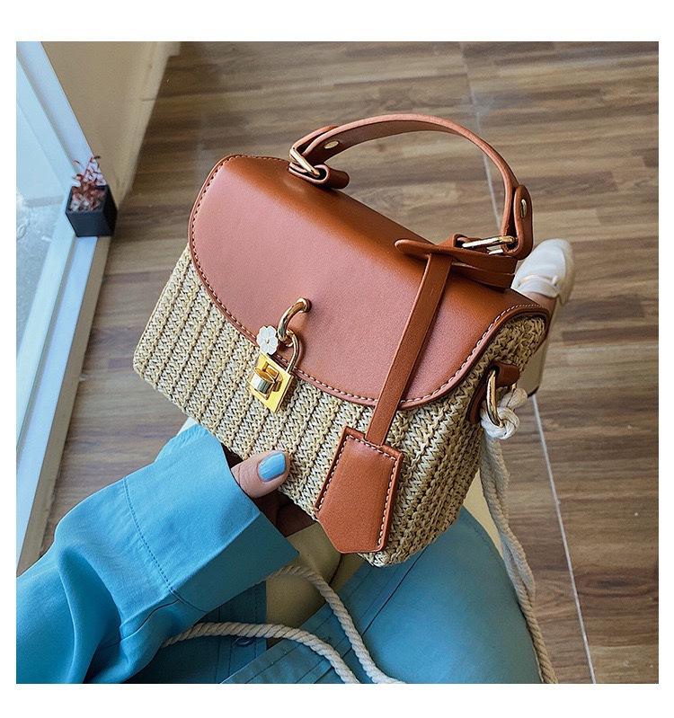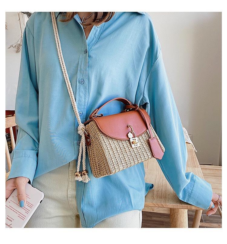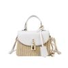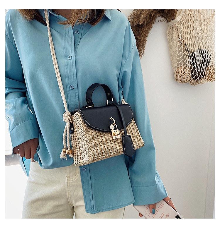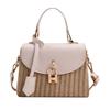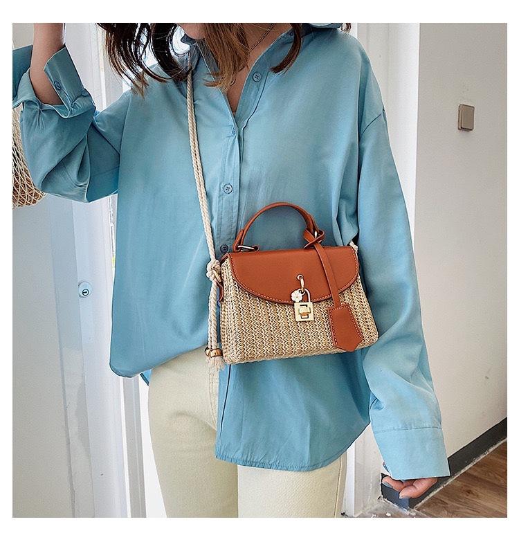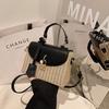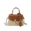 Bolso de playa para mujer, bolso tejido de paja con hebilla de estilo coreano, bolso cuadrado pequeño portátil e informal.