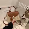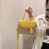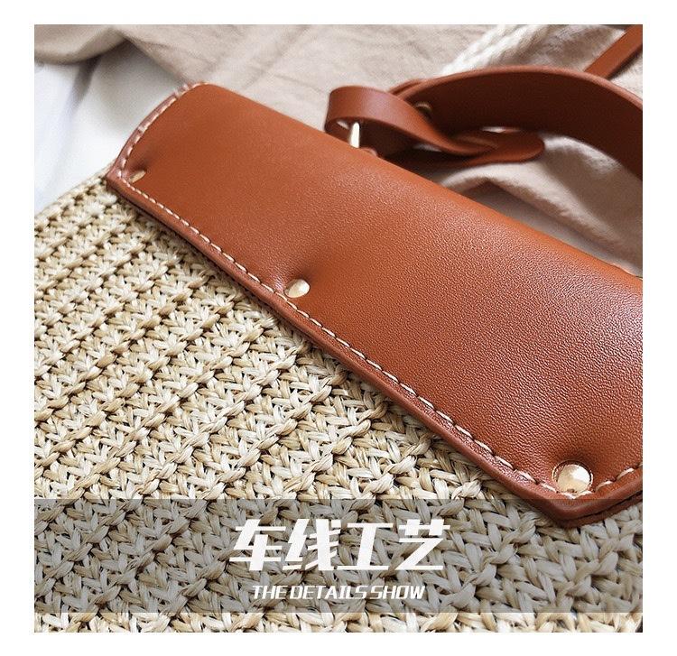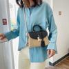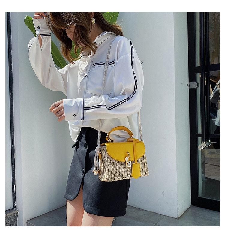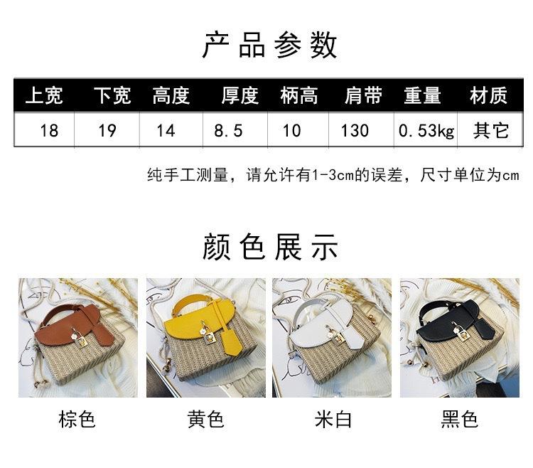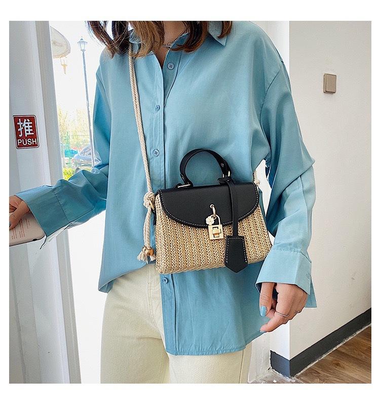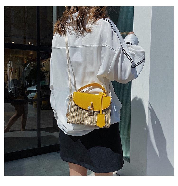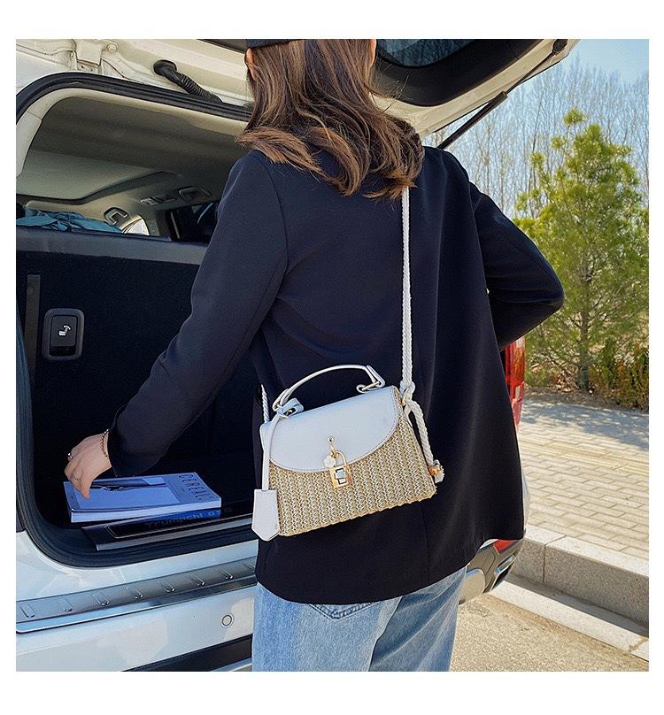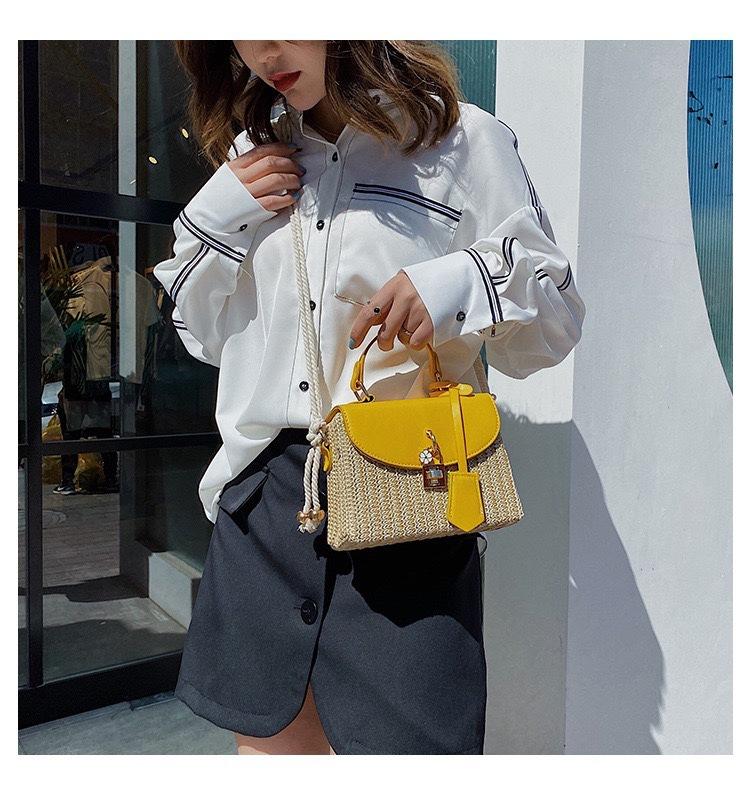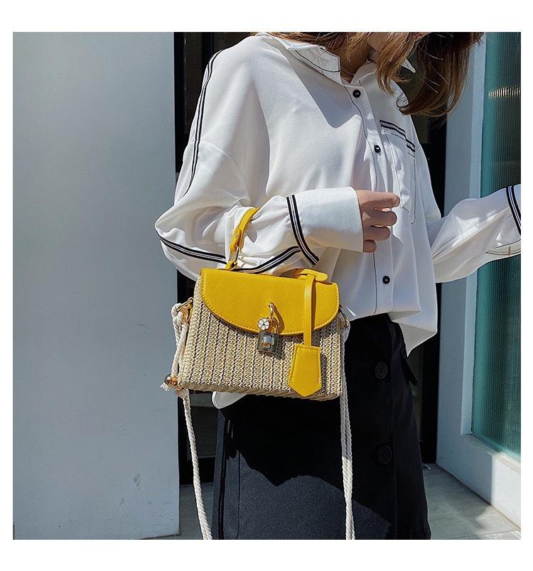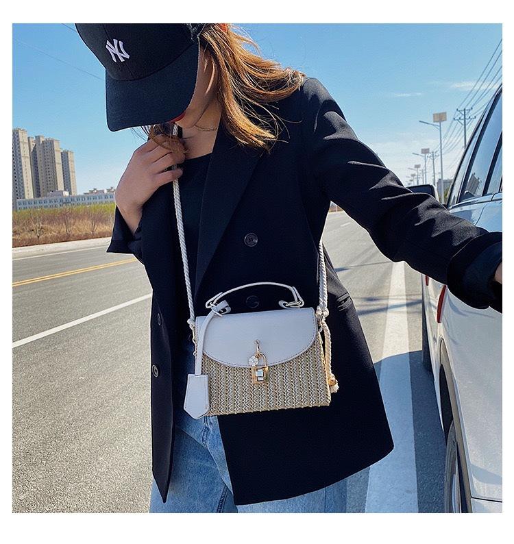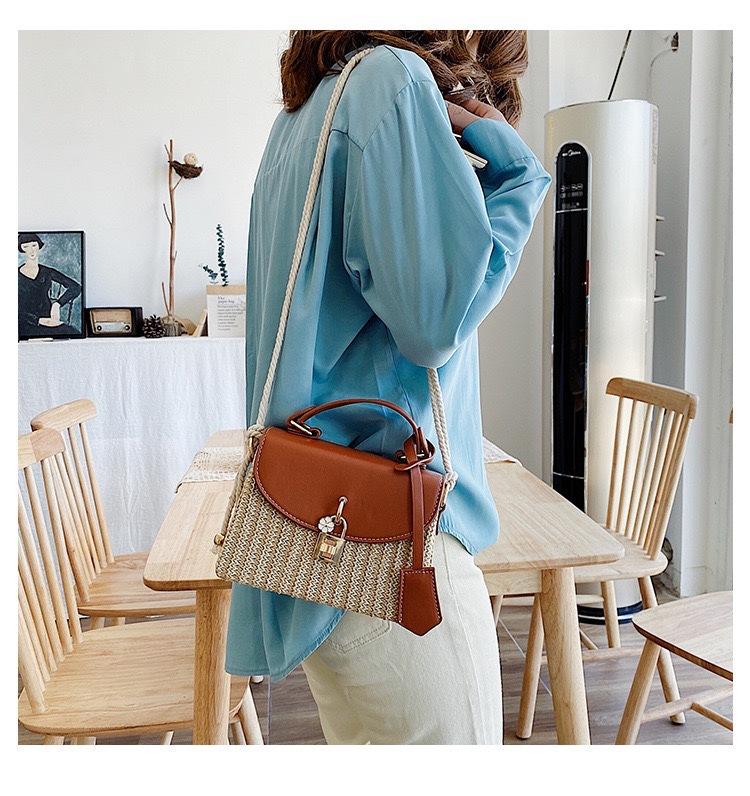 Bolso de playa para mujer, bolso tejido de paja con hebilla de estilo coreano, bolso cuadrado pequeño portátil e informal.