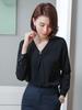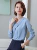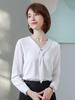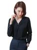 Compra Ropa de Negocios Camisa de Manga Larga para Mujer Top Azul Cuello Blanco Ropa de Trabajo Recepción Camisa de Chifón Negro Cuello en V al por mayor en Joom.pro