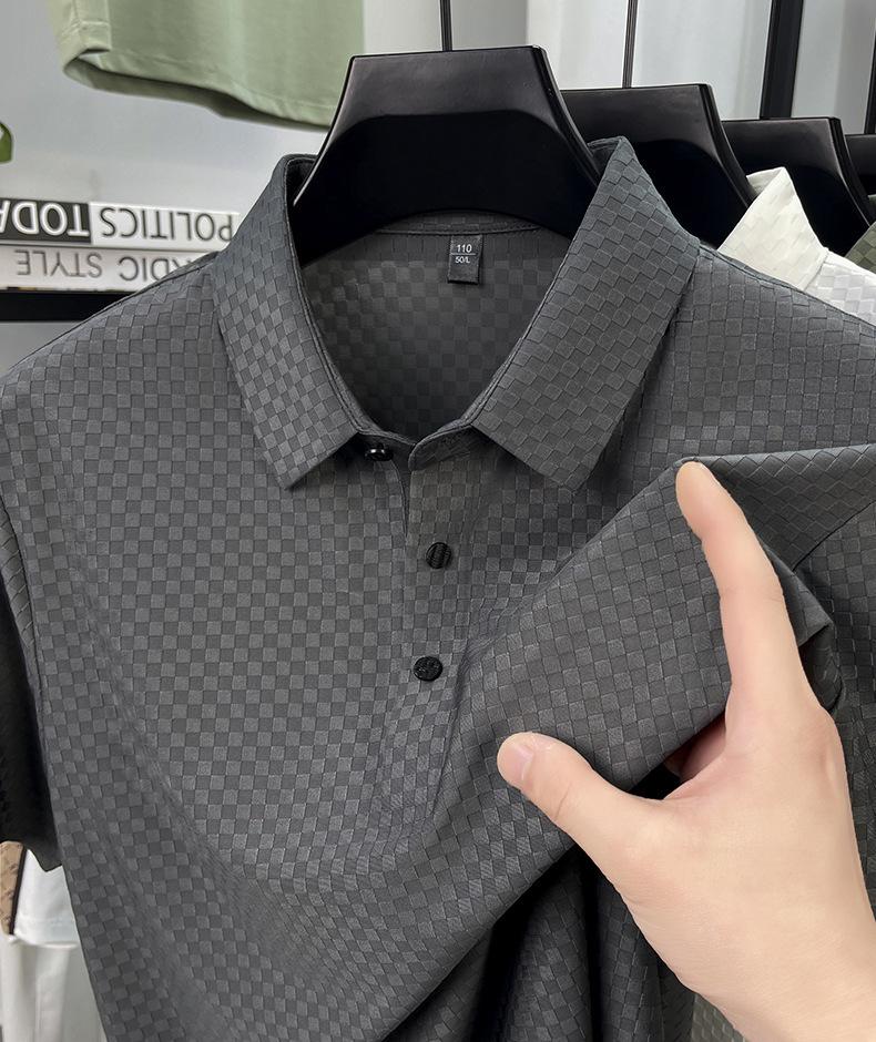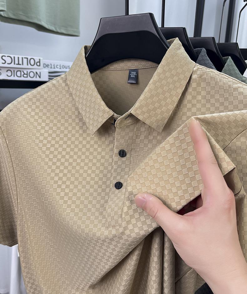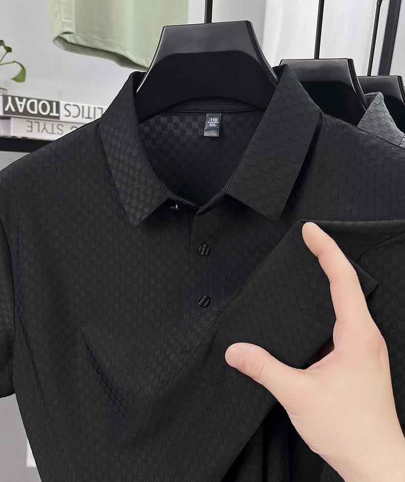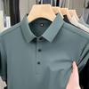 Playera de Manga Corta de Seda Helada Sin Costuras Transfronteriza para Hombre 2025 Verano Nueva Casual Solapa Transpirable Color Puro Polo de Hombre
