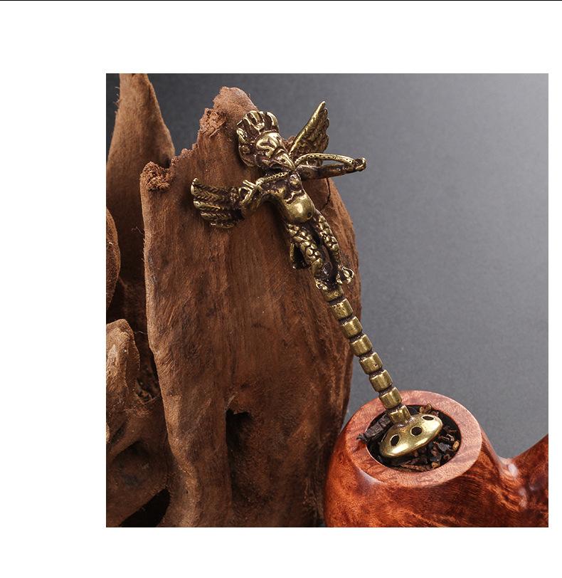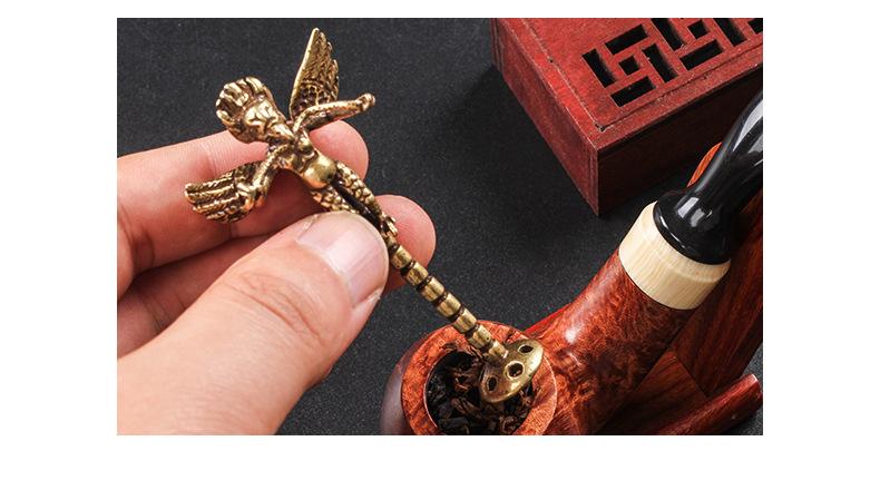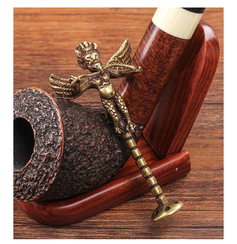 Varilla de presión para pipa de cobre puro, tallado retro, fresado, cóncavo y hueco, accesorios para pipa de tabaco dos en uno, variedad