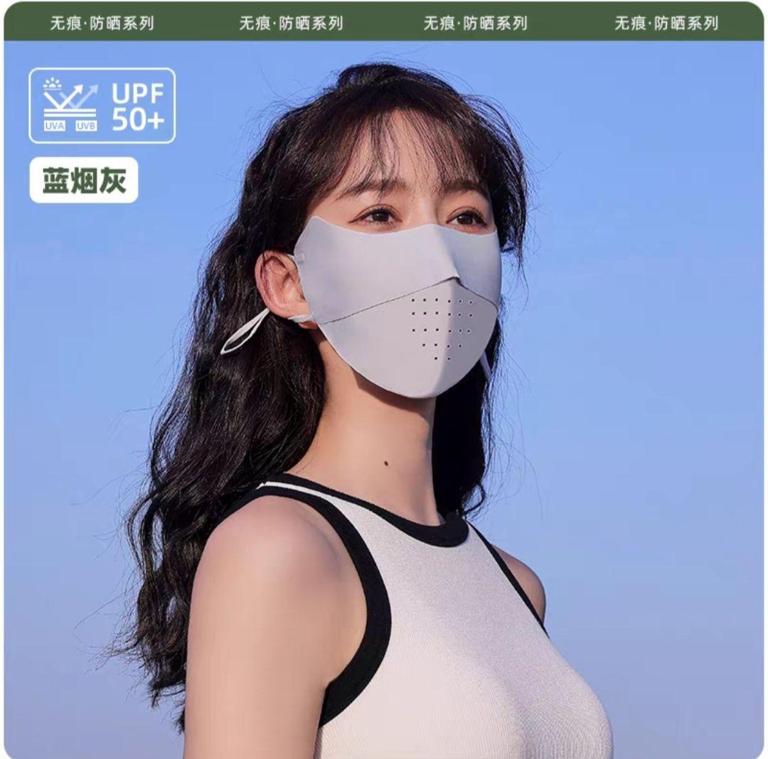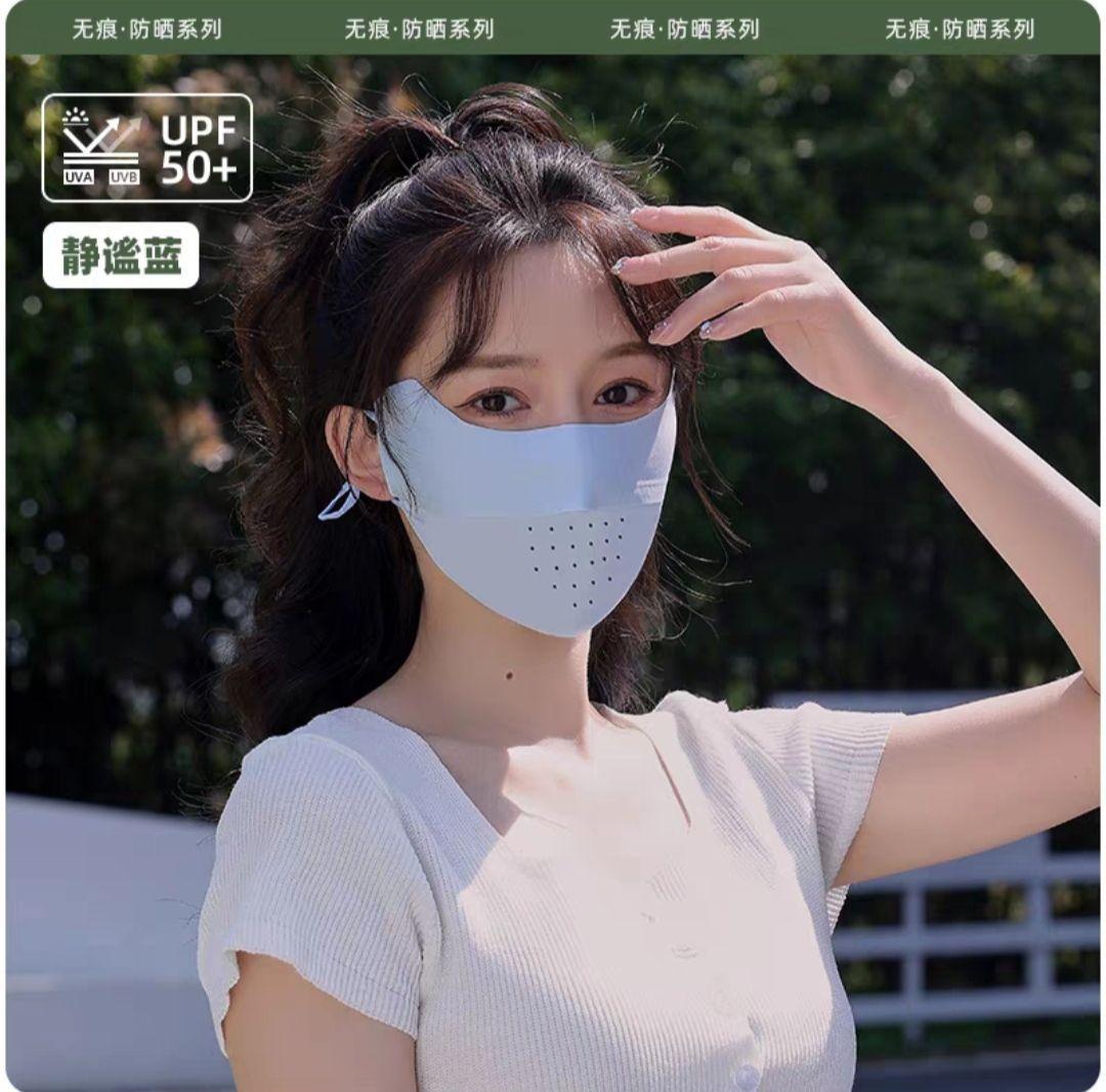 Verano Nuevo Sin Marcas Seda de Hielo Protector Solar Mascarilla Facial Completa para Ciclismo Sombrilla Protección Facial y Ocular Esquina Gini Protección UV