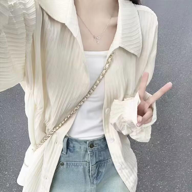 Camisa Top Protector Solar para Mujer Verano 2025 Nuevo Estilo Académico Diseño Francés Nicho Suelto Chaqueta Camisa