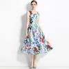 Vestido con tirantes finos y estampado de tiro real, verano 2023, elegante y elegante, largo y con cintura suave para mujer.