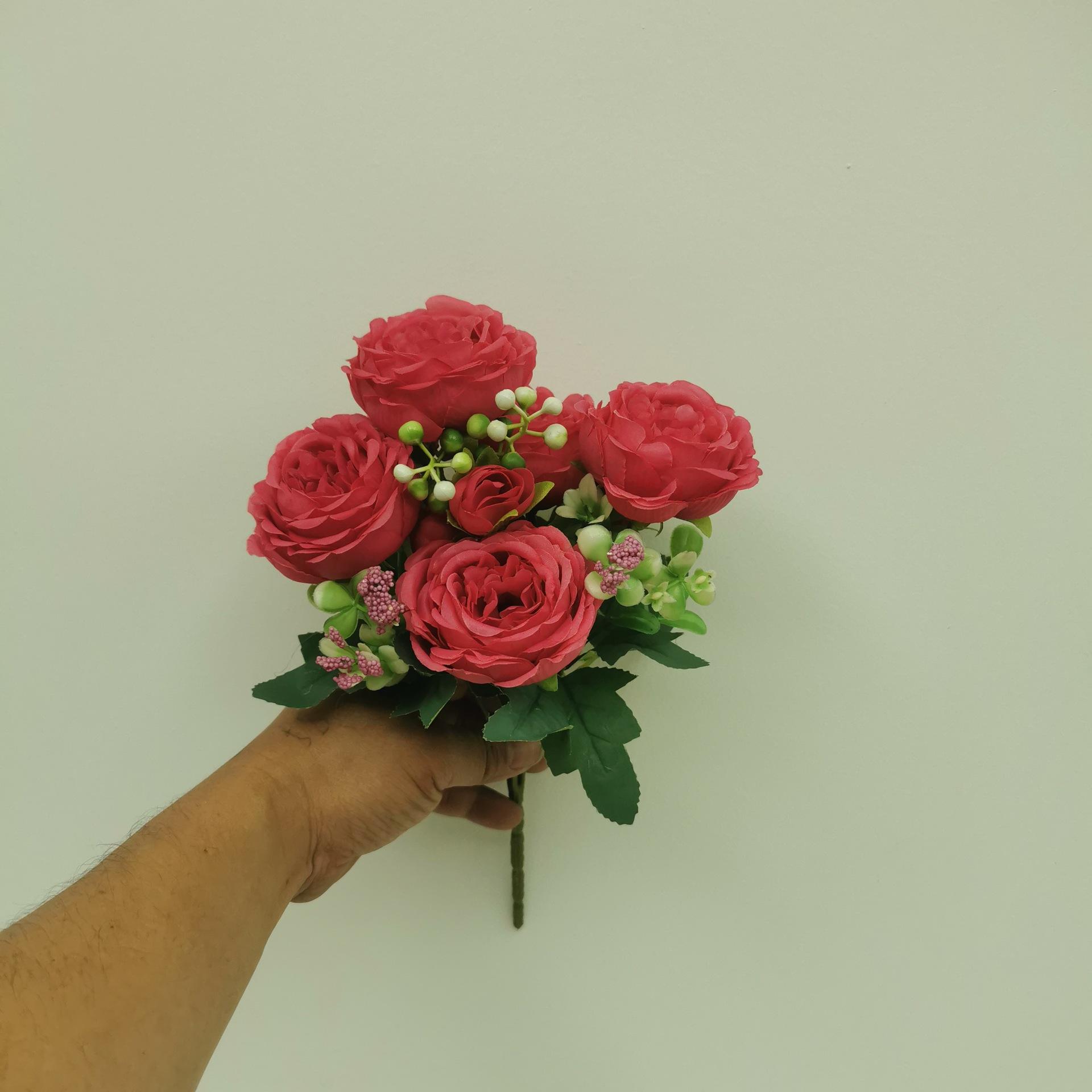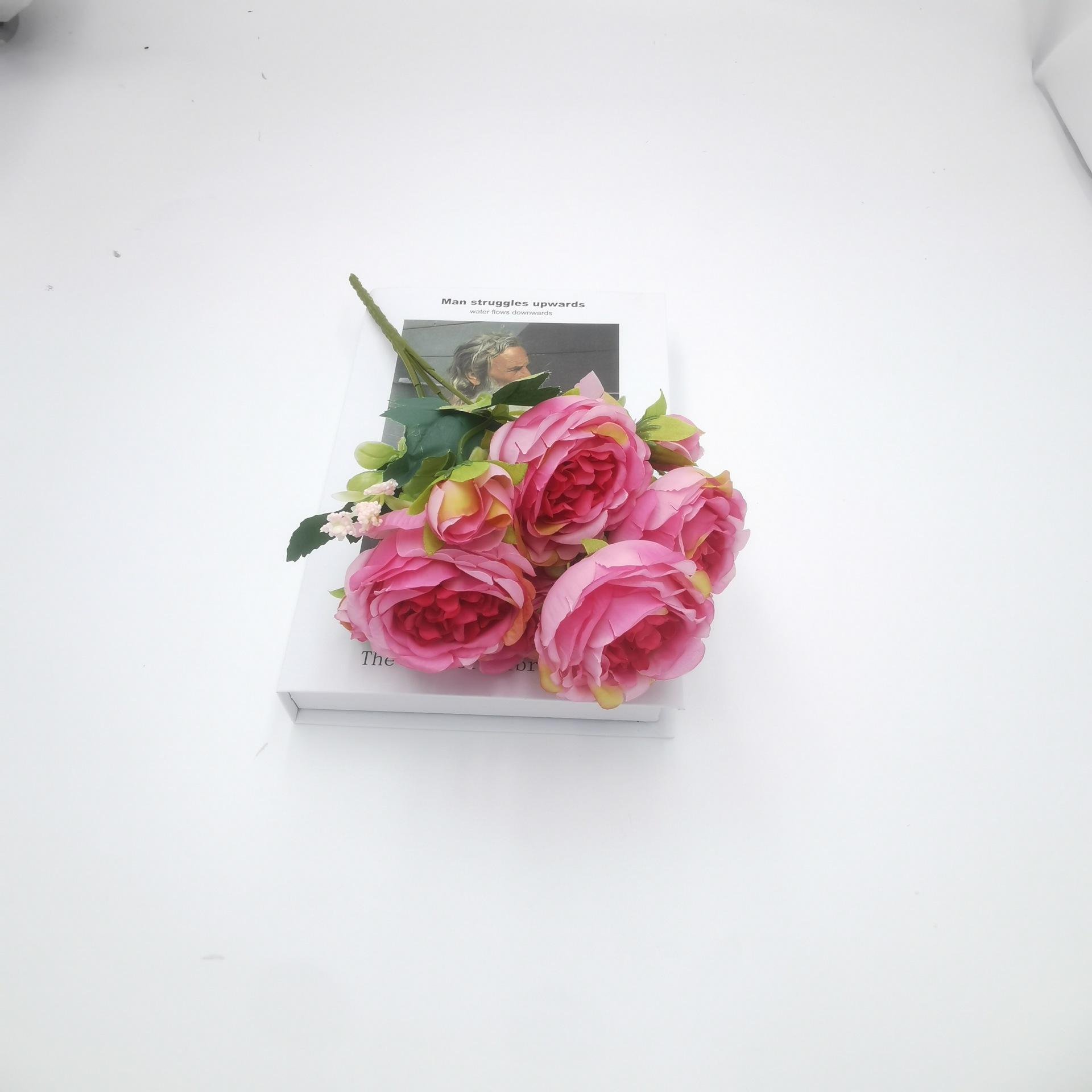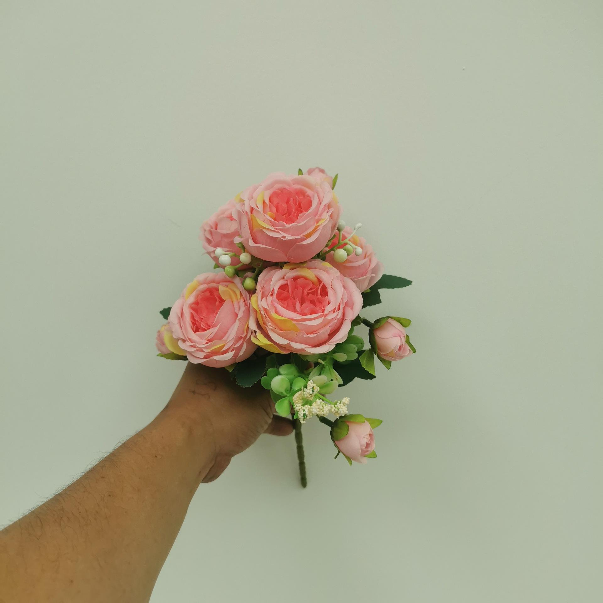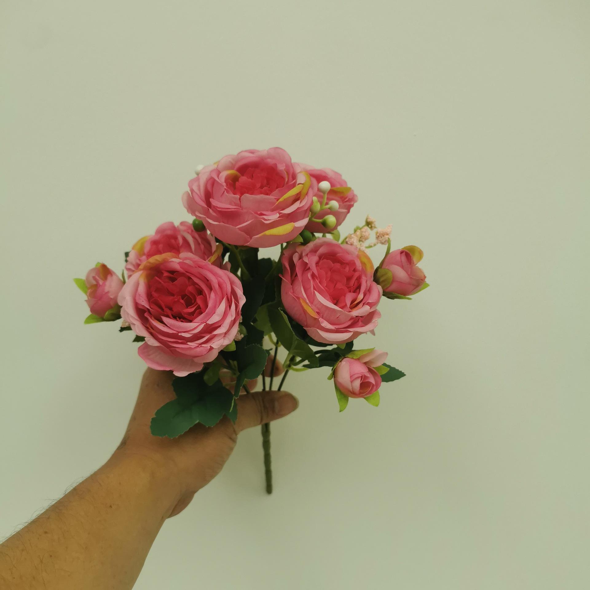 Compra Venta al por mayor en stock Decoración para el hogar Flor artificial Ramo pequeño Rosas Arreglo para boda Rosas persas artificiales de 5 cabezas al por mayor en Joom.pro