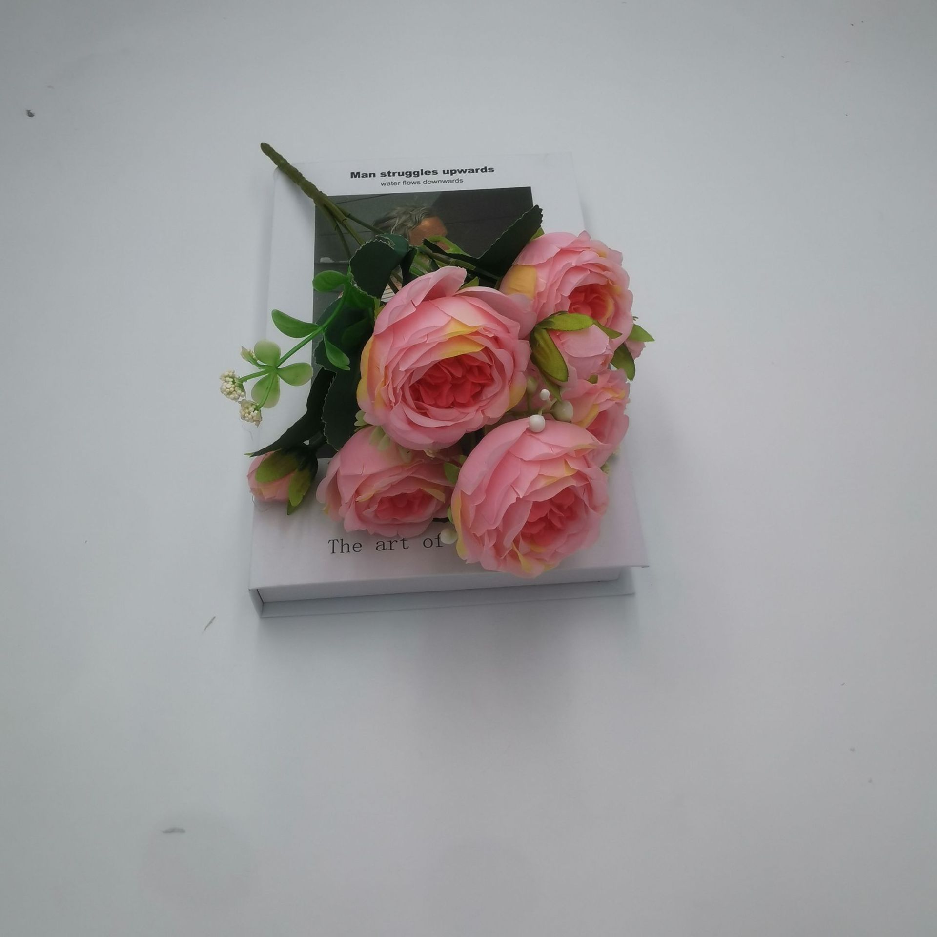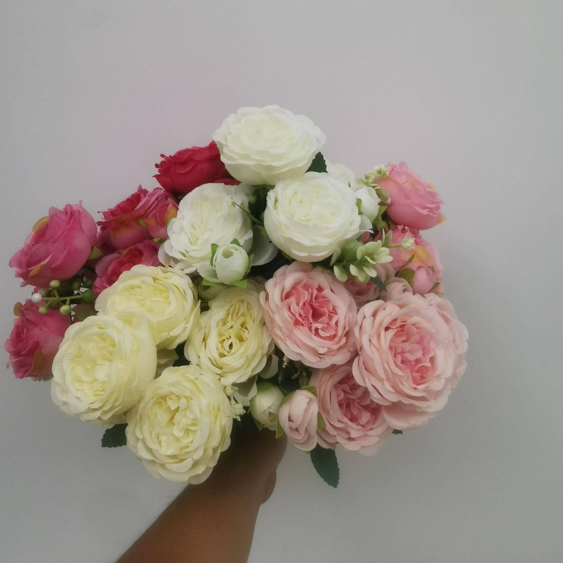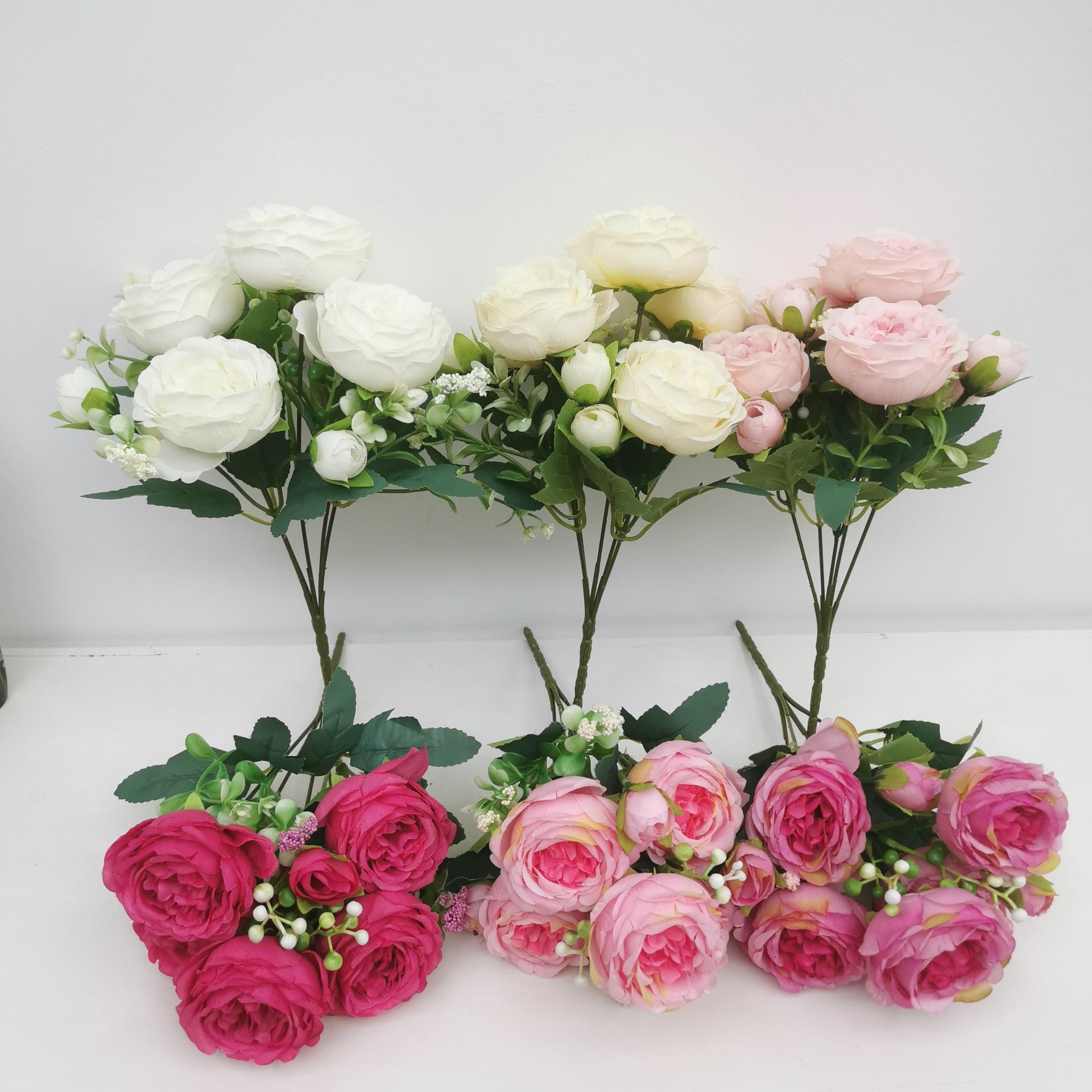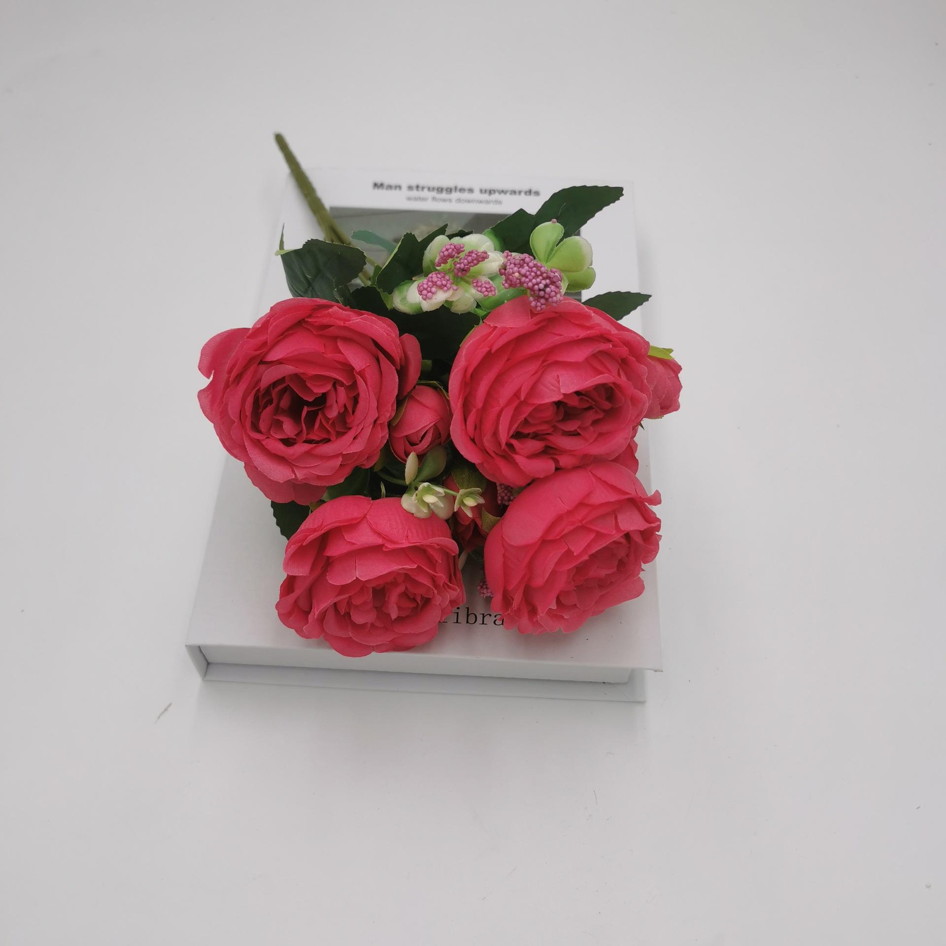 Compra Venta al por mayor en stock Decoración para el hogar Flor artificial Ramo pequeño Rosas Arreglo para boda Rosas persas artificiales de 5 cabezas al por mayor en Joom.pro