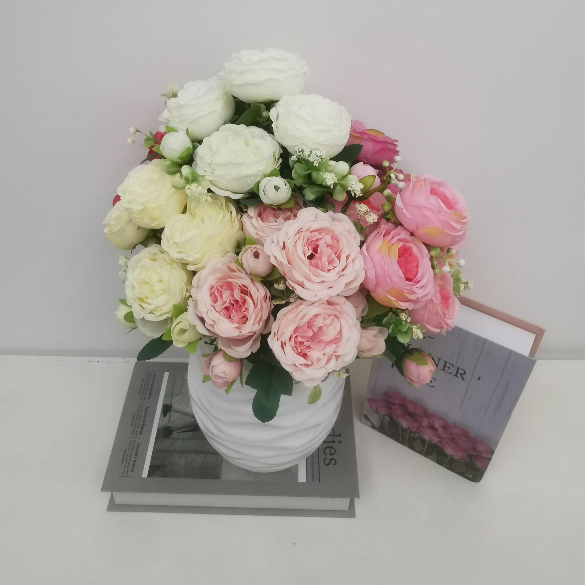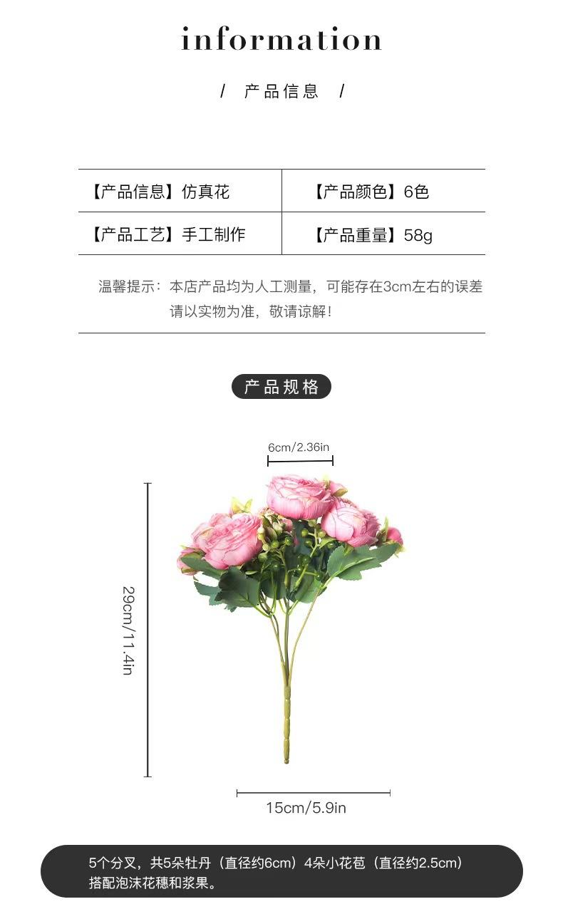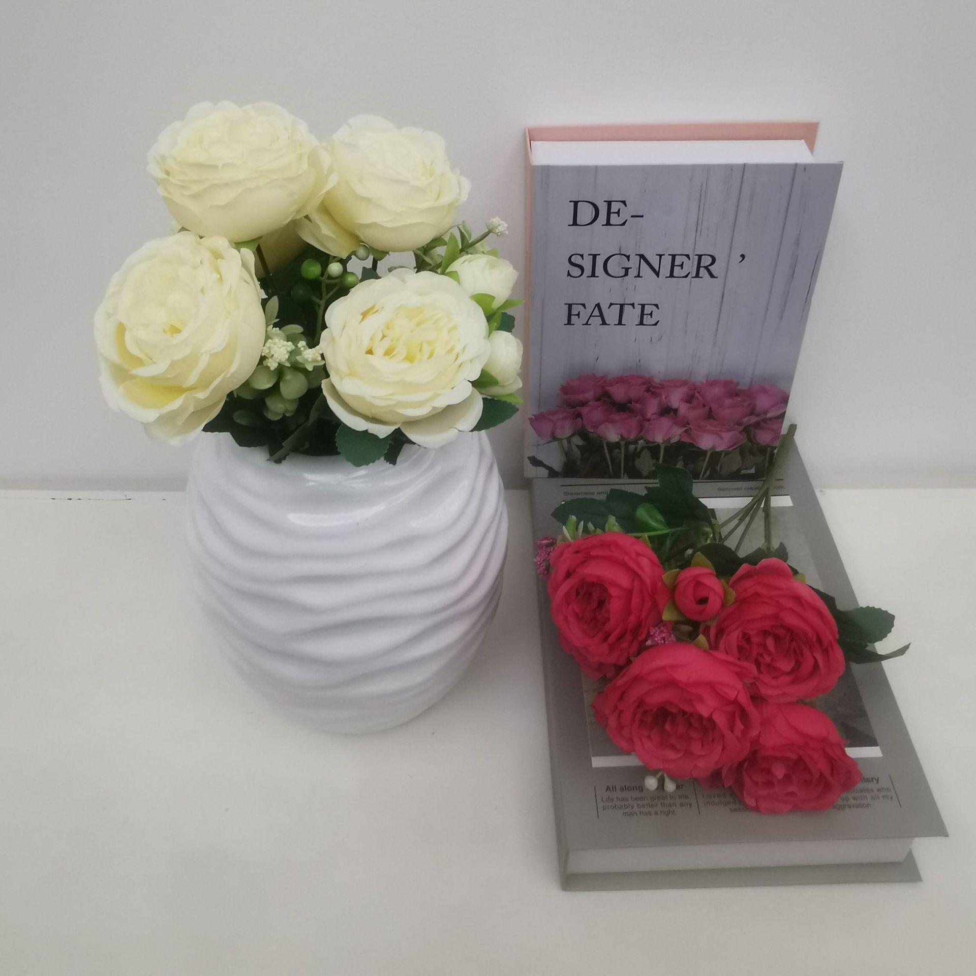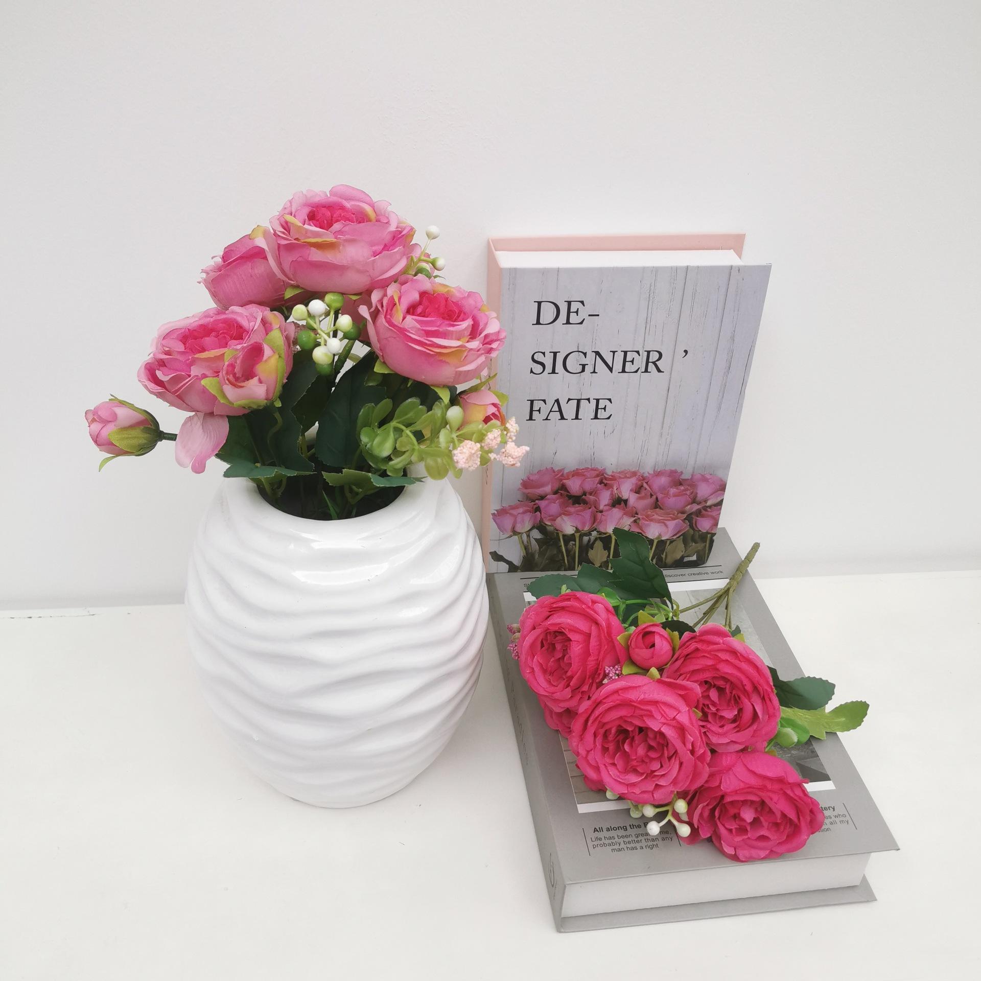 Compra Venta al por mayor en stock Decoración para el hogar Flor artificial Ramo pequeño Rosas Arreglo para boda Rosas persas artificiales de 5 cabezas al por mayor en Joom.pro