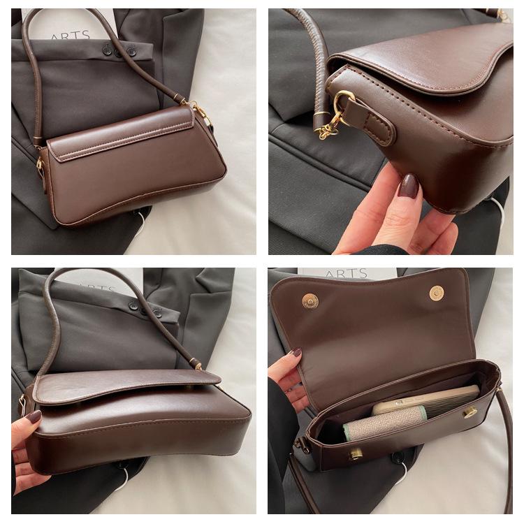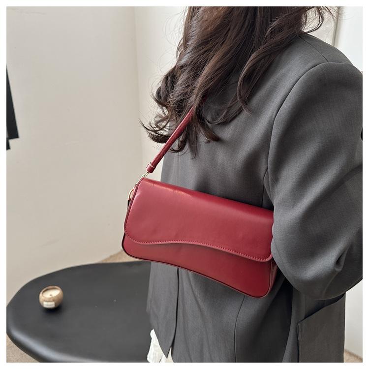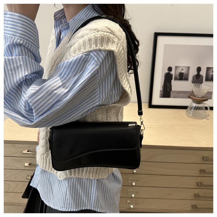 Bolso Cruzado de Estilo Occidental Retro de Color Puro Estilo Hong Kong para Mujer Primavera 2025 Estilo Coreano Textura Moda Bolso de Hombro Bolso de Mano de Moda