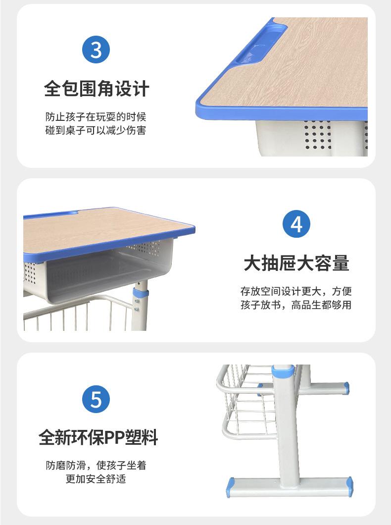 Escritorios y sillas para estudiantes con grano de madera al por mayor de fábrica, juego de escritorio para aprendizaje para clase de capacitación escolar, escritorios y sillas de lujo elevables para aula