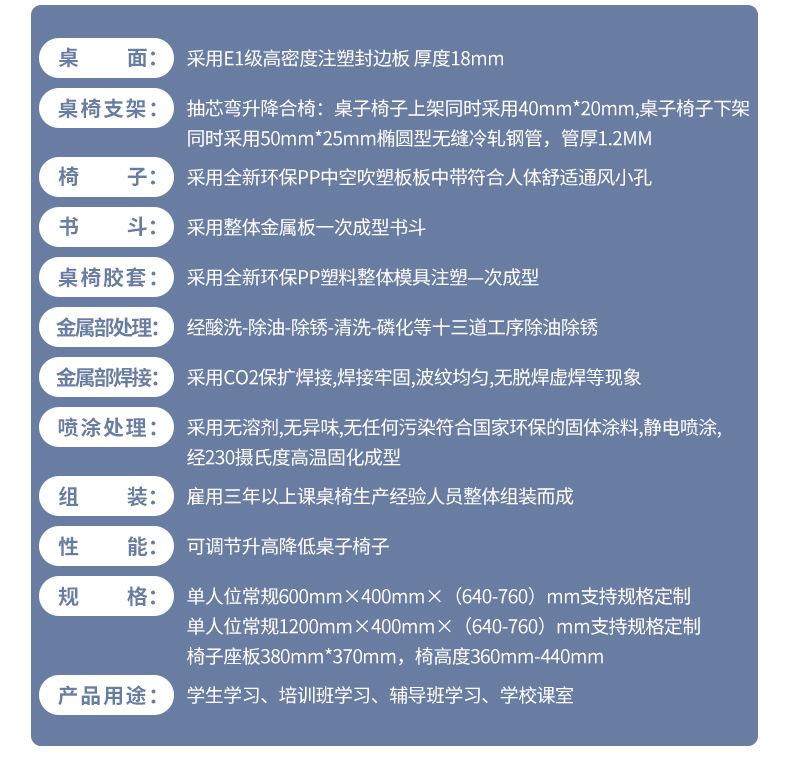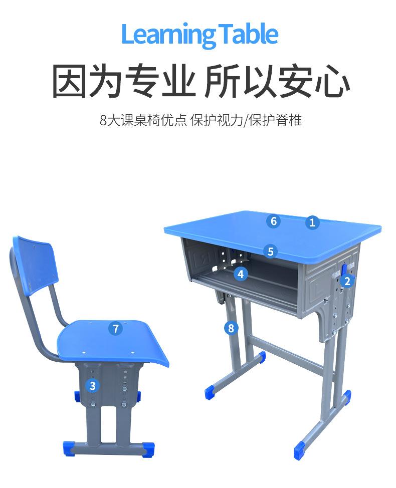 Set de Escritorio y Silla para Estudiantes de Primaria y Secundaria, Altura Ajustable, Silla de Entrenamiento para Niños, Escritorio y Silla Azules para Tutorías Escolares, Venta al Mayoreo del Fabricante