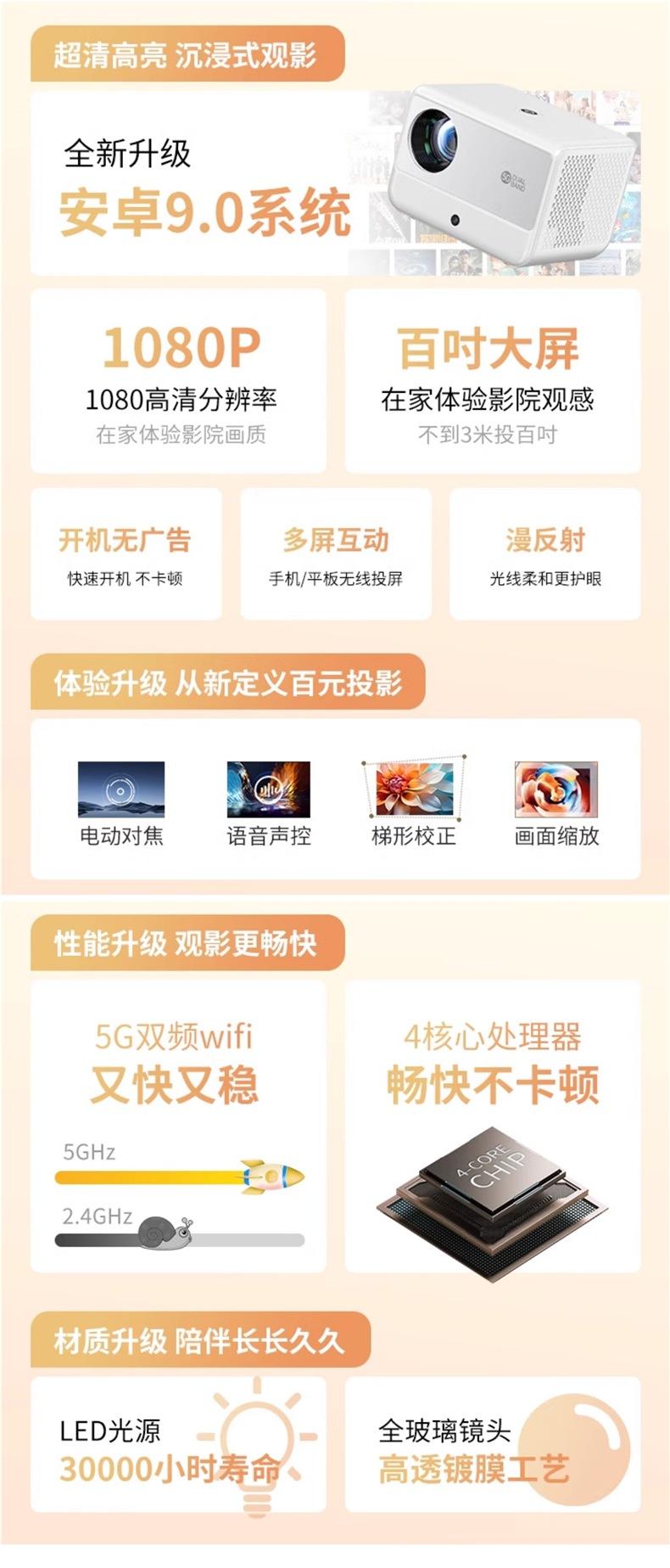 Pioneer edition [android 9.0 system + autofocus + mobile phone screen projection + side projection + 720p] no ...