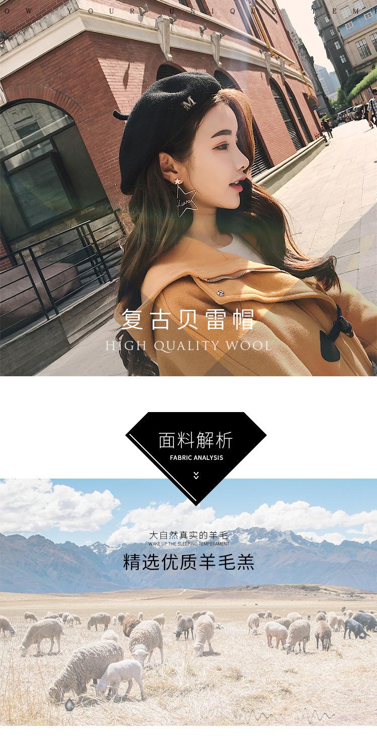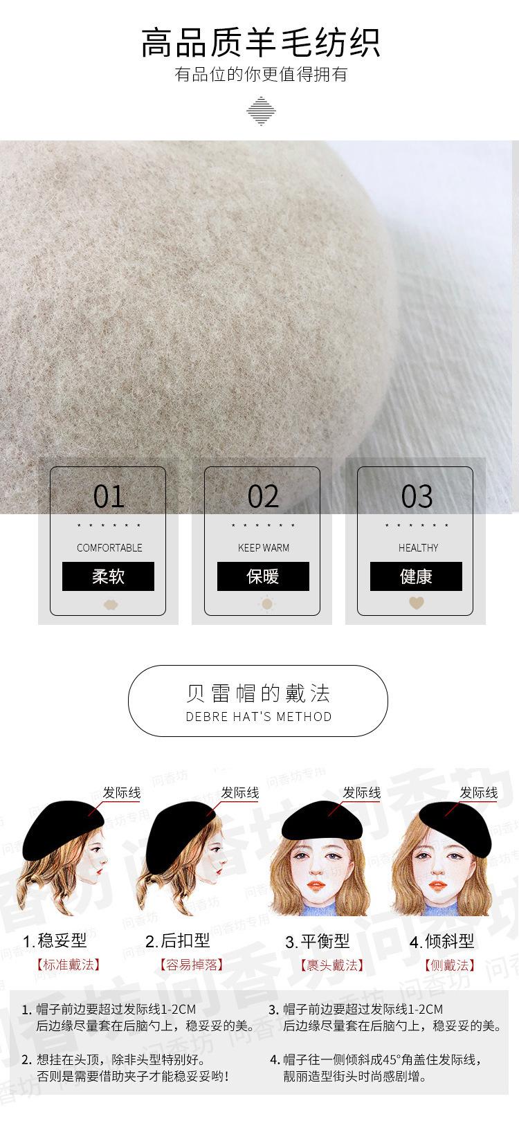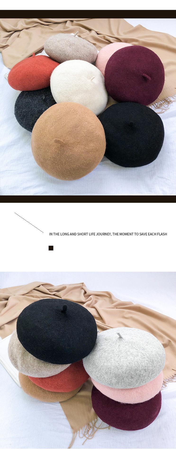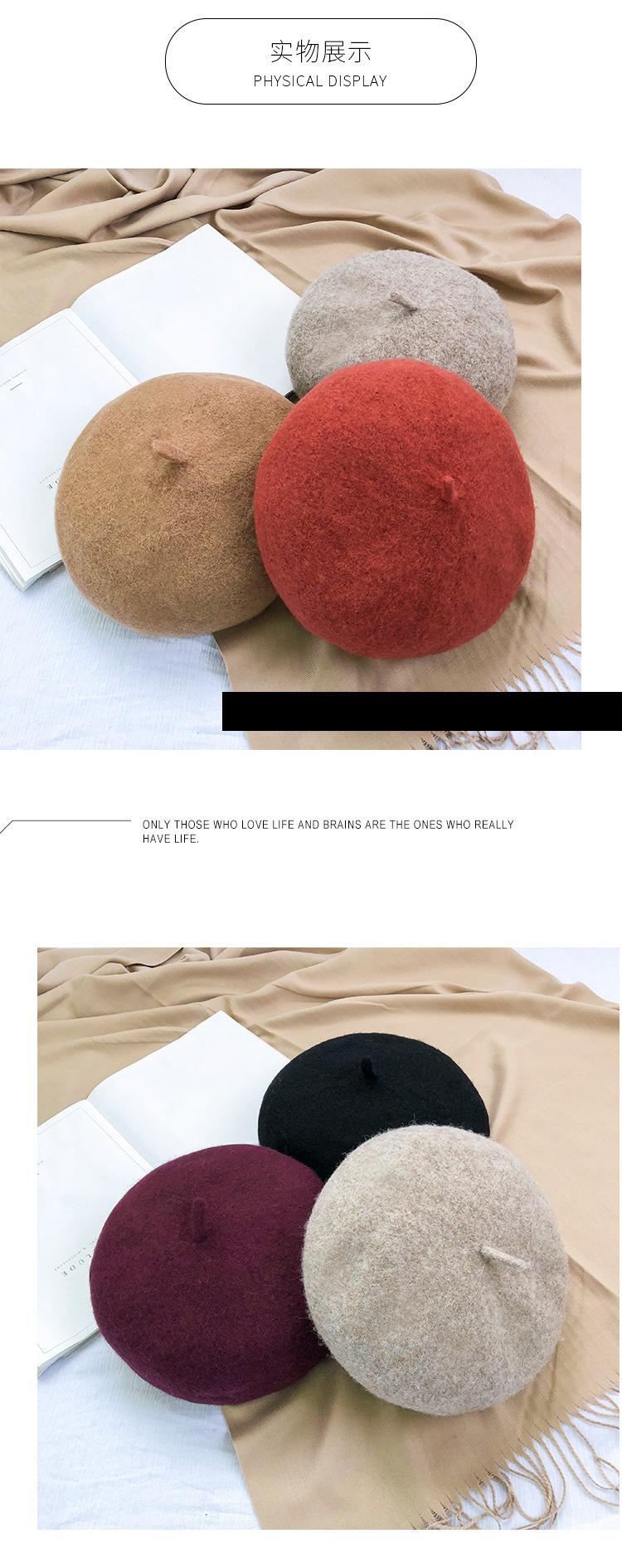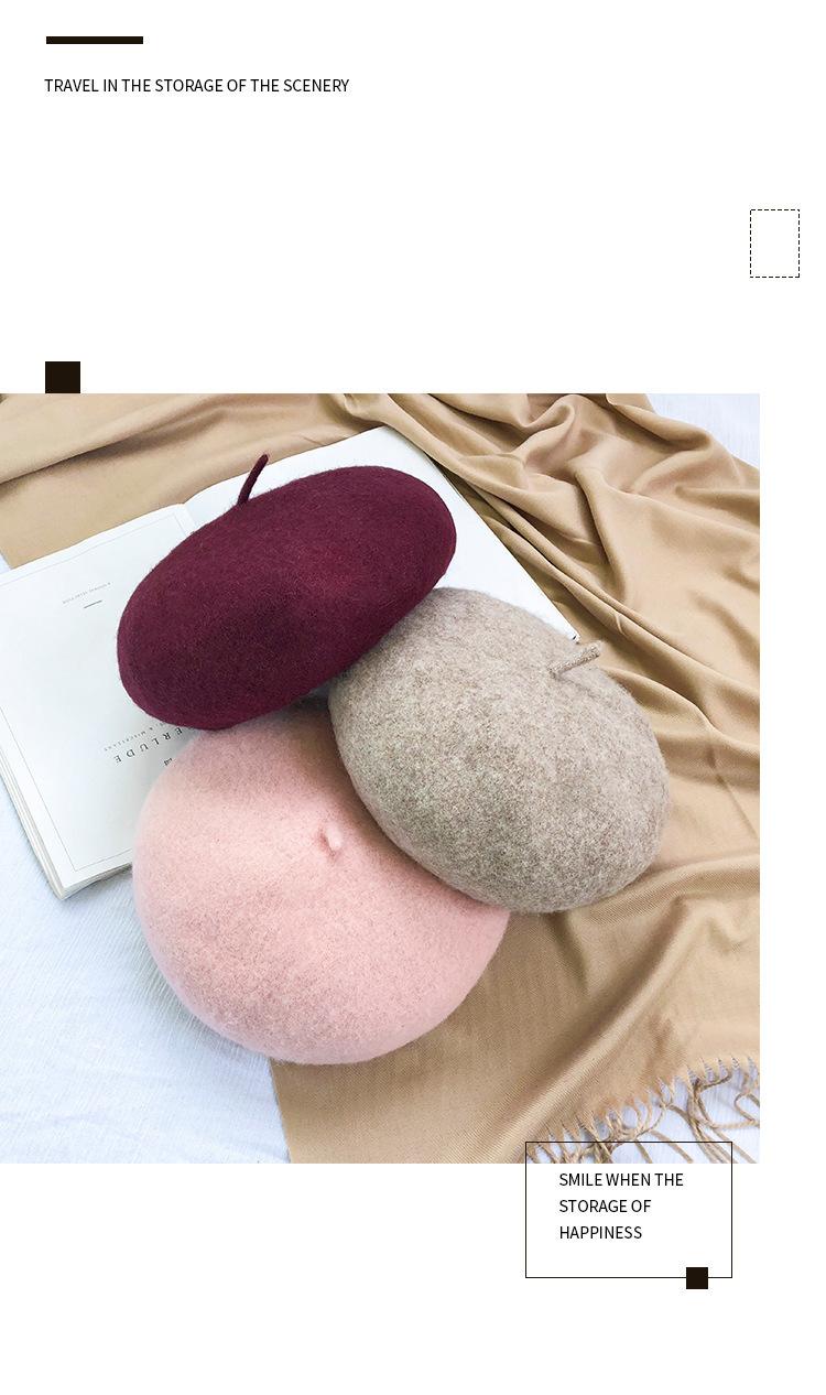 Boina de mujer para otoño e invierno, estilo coreano, estilo japonés, suave, gruesa, cálida, de pintor, de lana