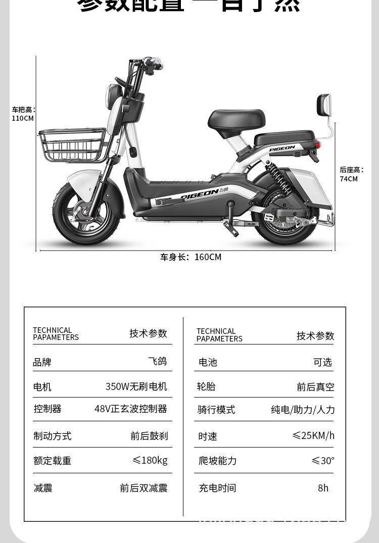 Flying Pigeon Nuevo Coche Eléctrico Nuevo Scooter Estándar Nacional Coche de Batería Pequeño para Hombres y Mujeres Bicicleta Eléctrica de Dos Ruedas para Adultos