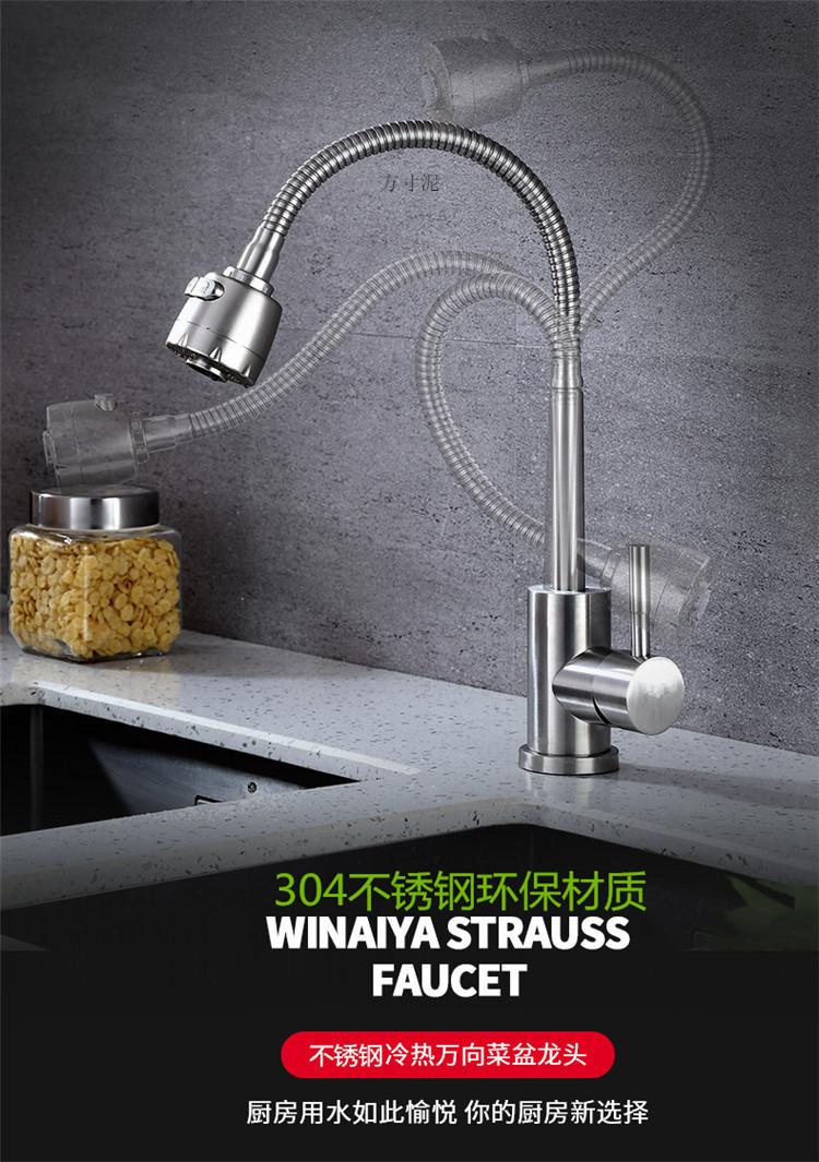 Grifo de cocina de acero inoxidable 304 grifo de latón frío y caliente grifo monomando para lavabo grifo para planta de agua a prueba de salpicaduras