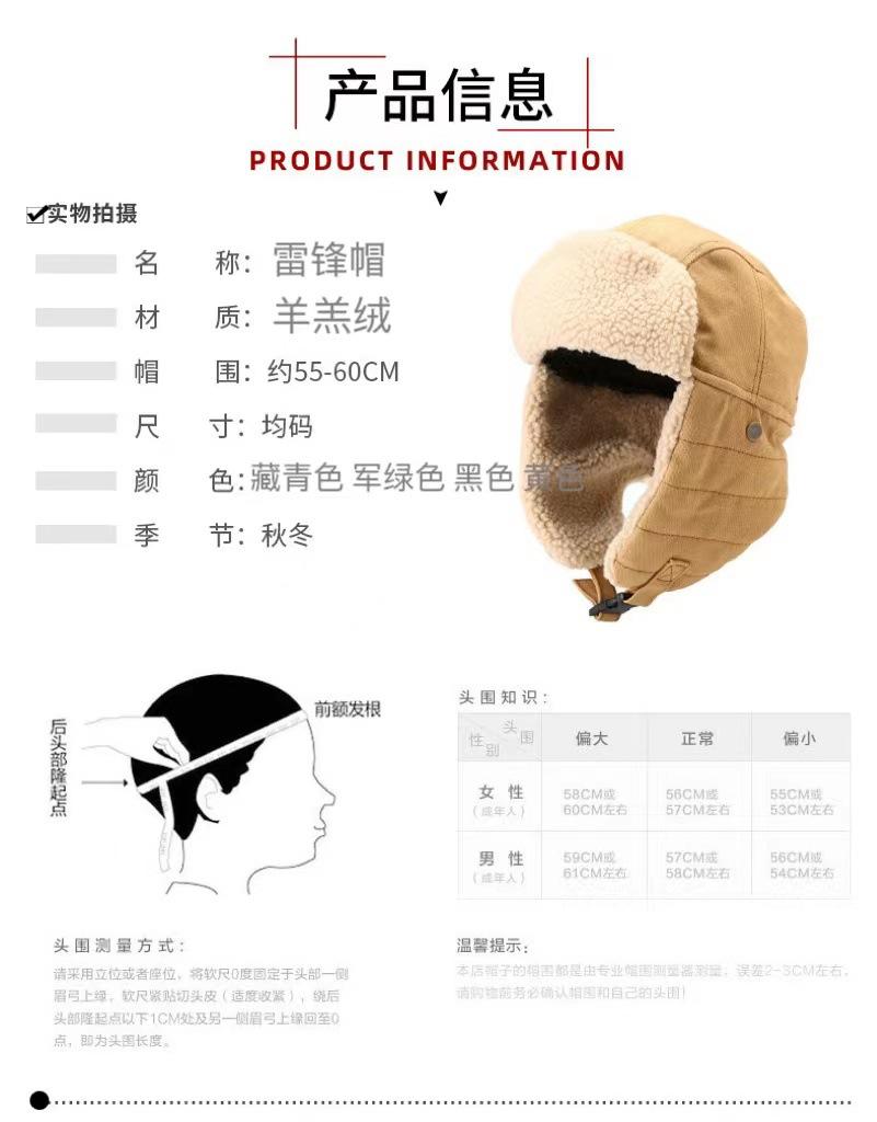 Sombrero Lei Feng de invierno para hombre y mujer, para exteriores, para montar, cálido, a prueba de frío, protección para la cabeza, sombrero para las orejas, noreste, forrado de vellón, grueso, a prueba de viento, sombrero de algodón