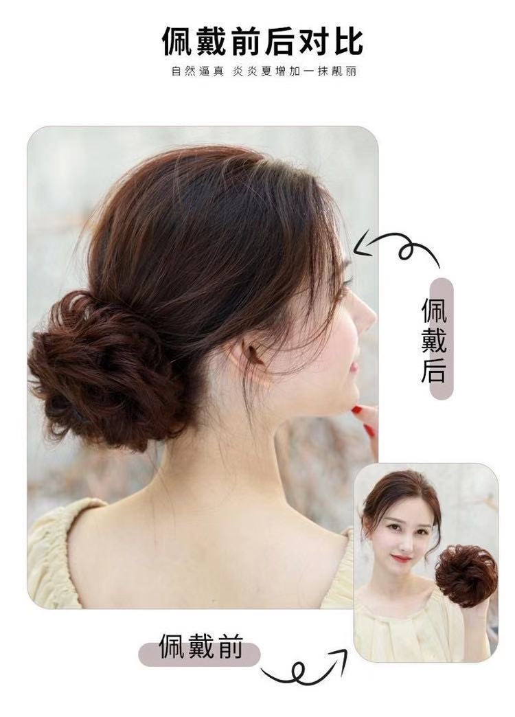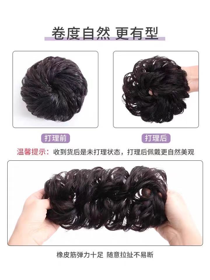 Peluca realista banda para el cabello goma elástica paquete de cabello flor para el cabello moño cabeza de flor cabeza femenina flor cabello rizado esponjoso anillo para el cabello cabello grande