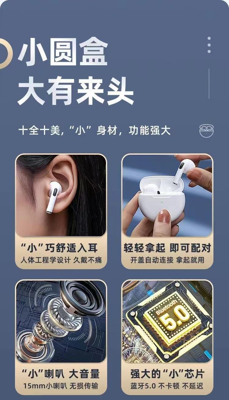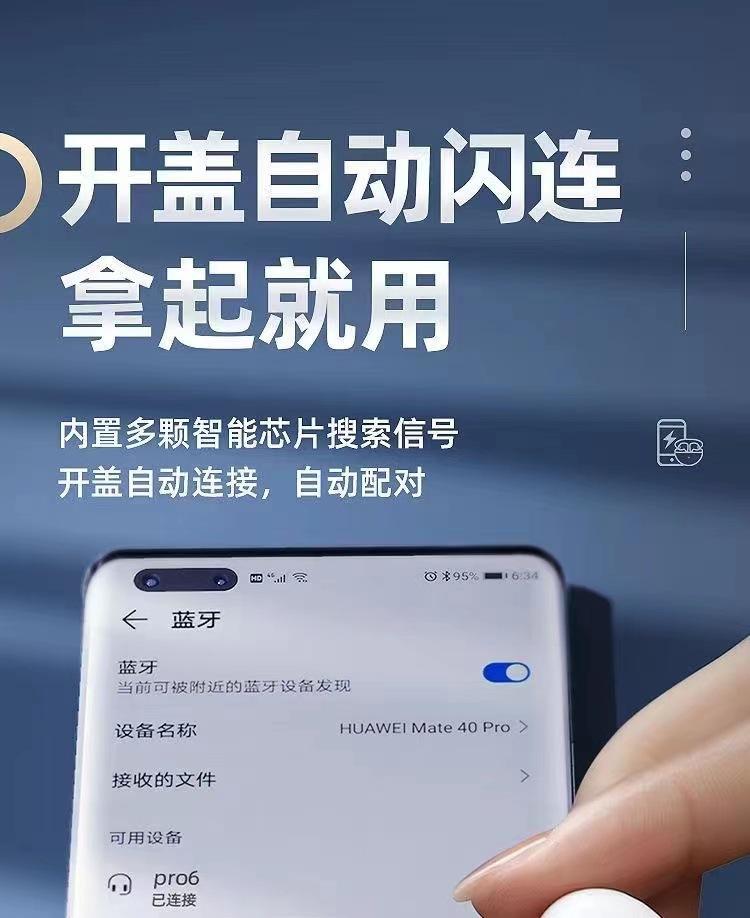 Compra Auriculares Bluetooth PRO6 Inalámbricos Alta Calidad de Sonido Deportes Súper Larga Duración Escuchando Canciones Adecuado para Apple Android Universal al por mayor en Joom.pro