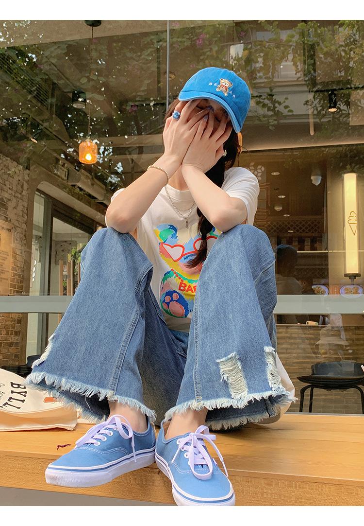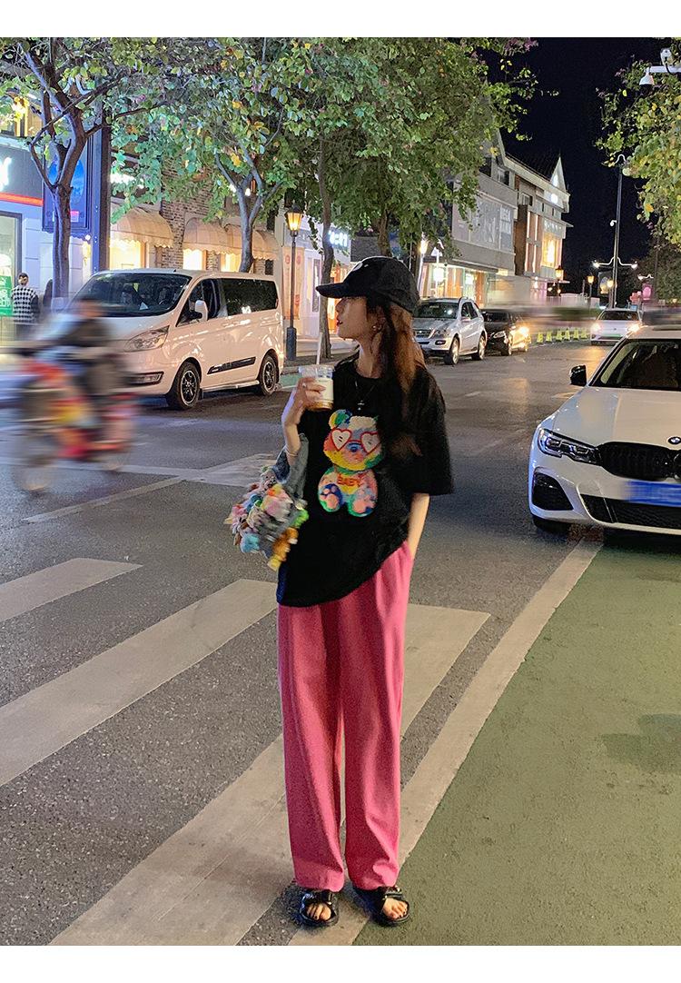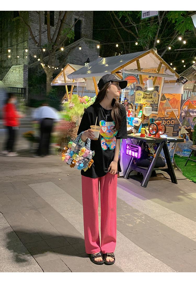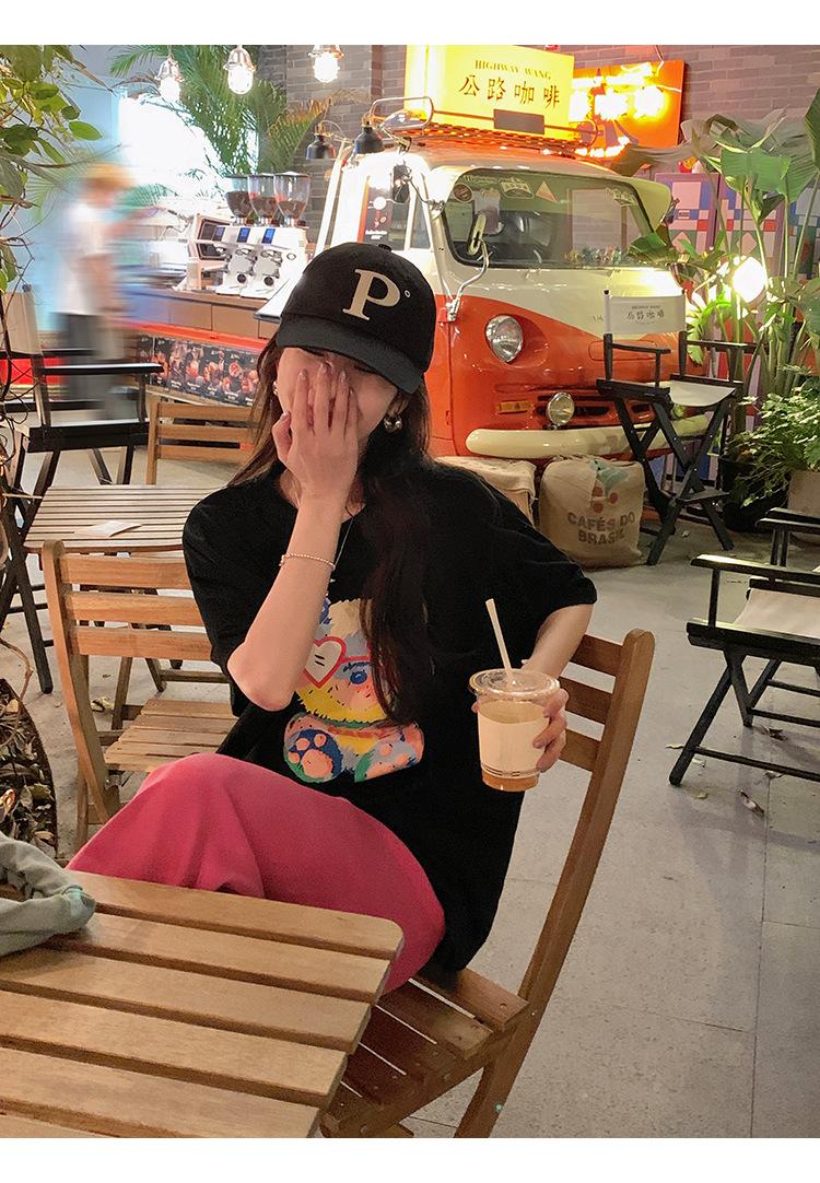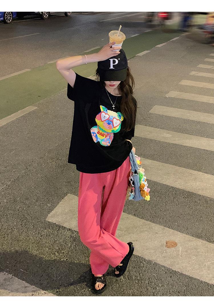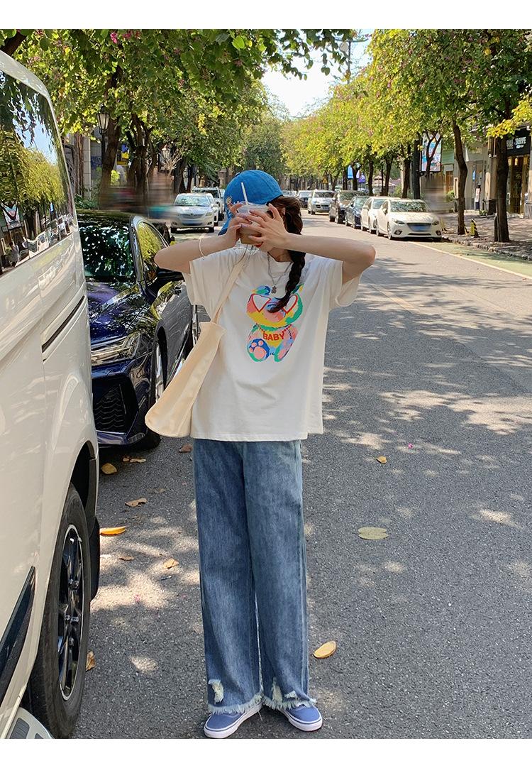 Dropshipping 2025 Nuevo Diseño Camiseta de Manga Corta con Estampado de Oso para Mujer Verano Nueva Holgada Estilo Coreano Top de Hombro Derecho t